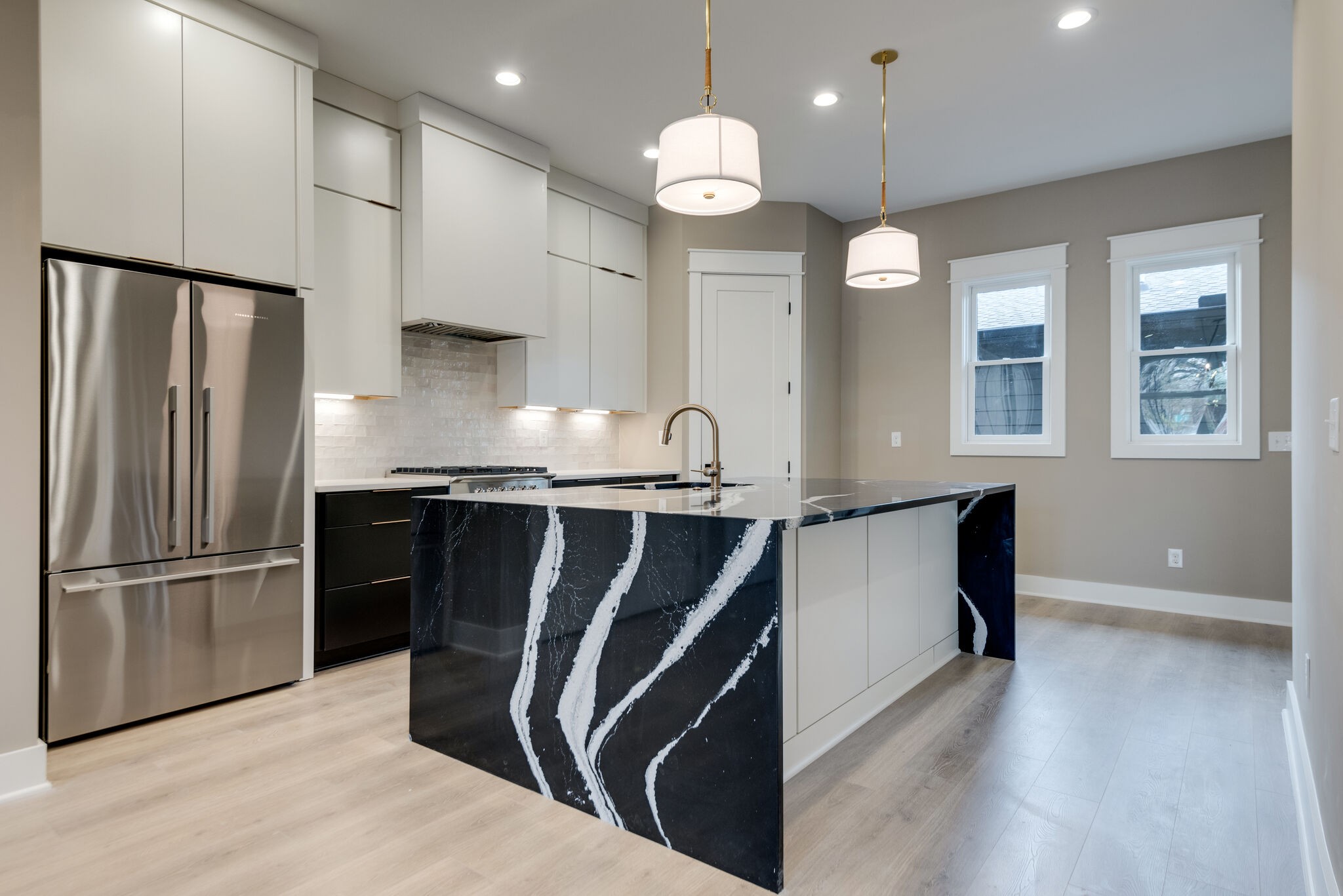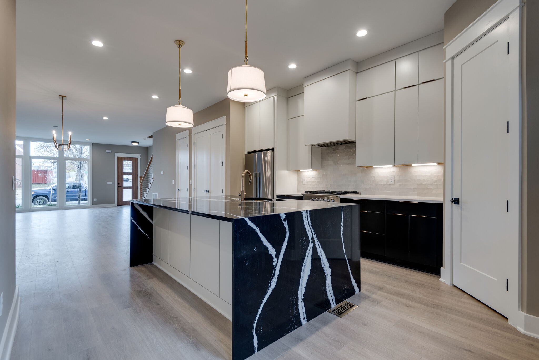 This stunning new home embodies modern elegance and sophistication across three luxurious stories. Nestled in a prime location, two blocks from the New Belmont Medical Sch residence offers the perfect blend of style, functionality, and comfort. As you step inside, be captivated by the seamless integration of sleek design and cutting-edge technology. The main floor boasts an open-concept layout, ideal for entertaining guests or enjoying quality family time. The living area features floor-to-ceiling windows that flood the space with natural light, showcasing the exquisite craftsmanship and attention to detail. The gourmet kitchen is a chef’s delight, equipped with state-of-the-art appliances that blend seamlessly with the chic aesthetic. . Ascend the staircase, where the second floor reveals a master suite that exudes large master suite. This home is designed for modern living, featuring separate HVAC controls on each floor, ensuring personalized comfort throughout the year.