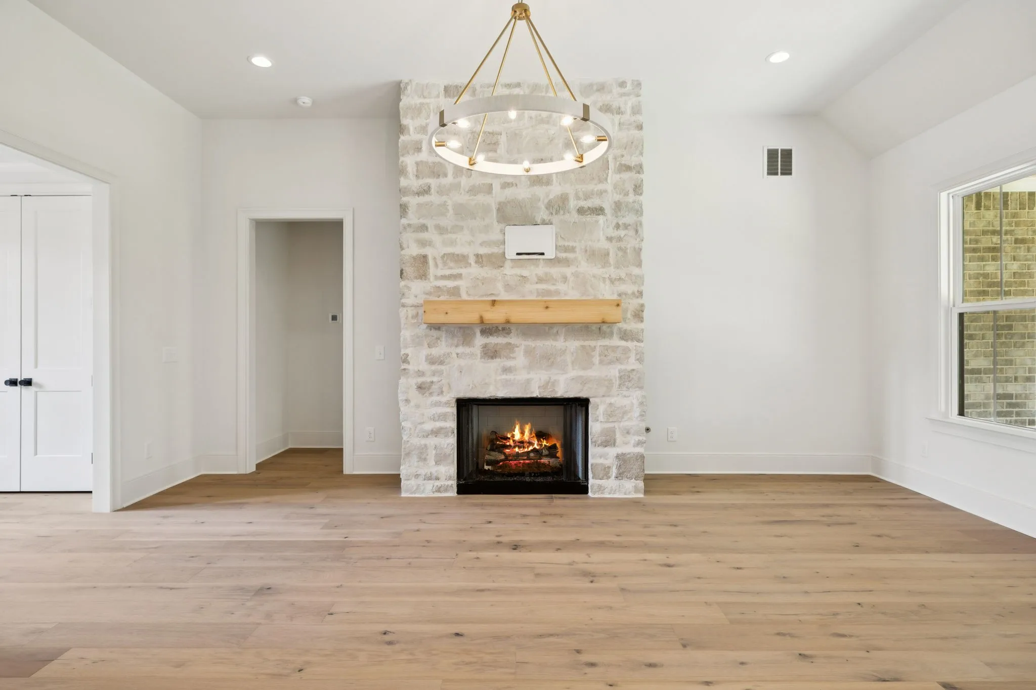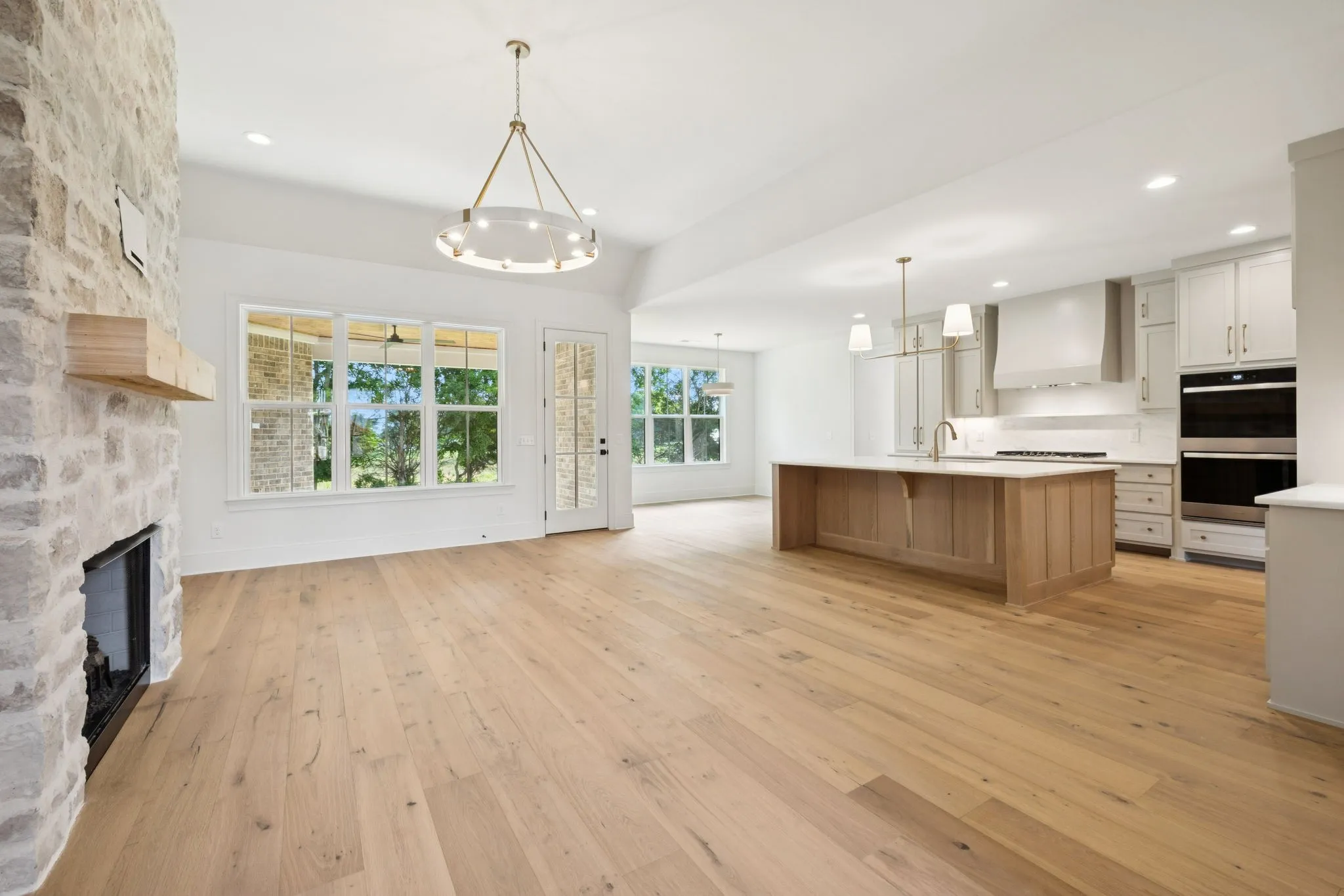 Step inside to an open-concept living area anchored by a beautiful stone gas fireplace, seamlessly flowing into a custom kitchen featuring high end countertops, custom cabinetry, double ovens, a gas cooktop and a spacious walk-in pantry.