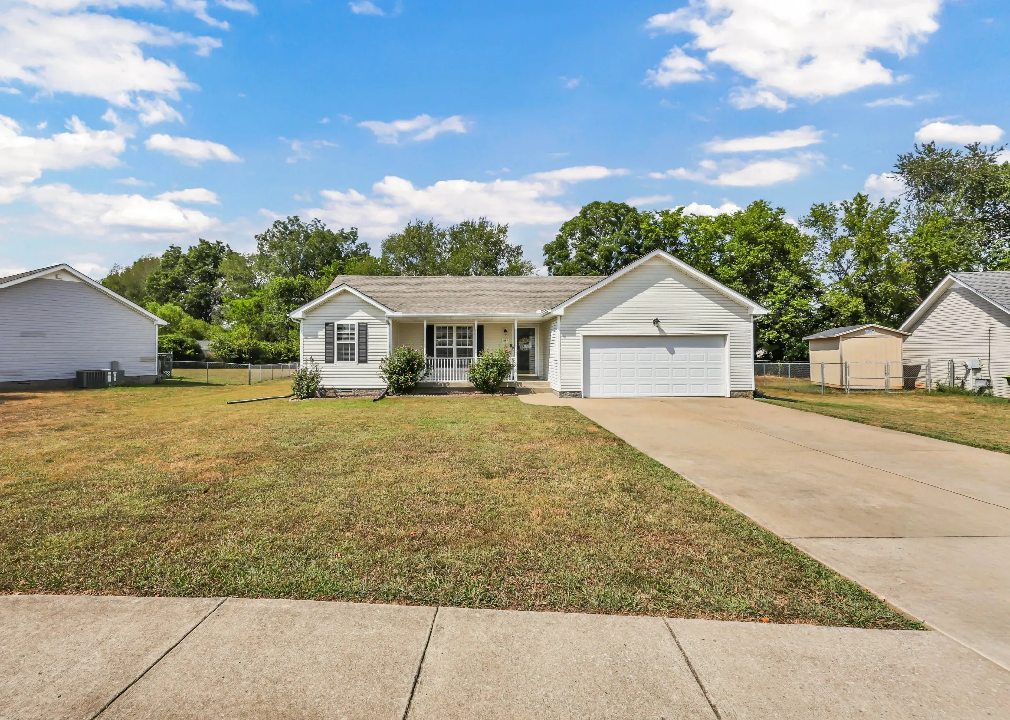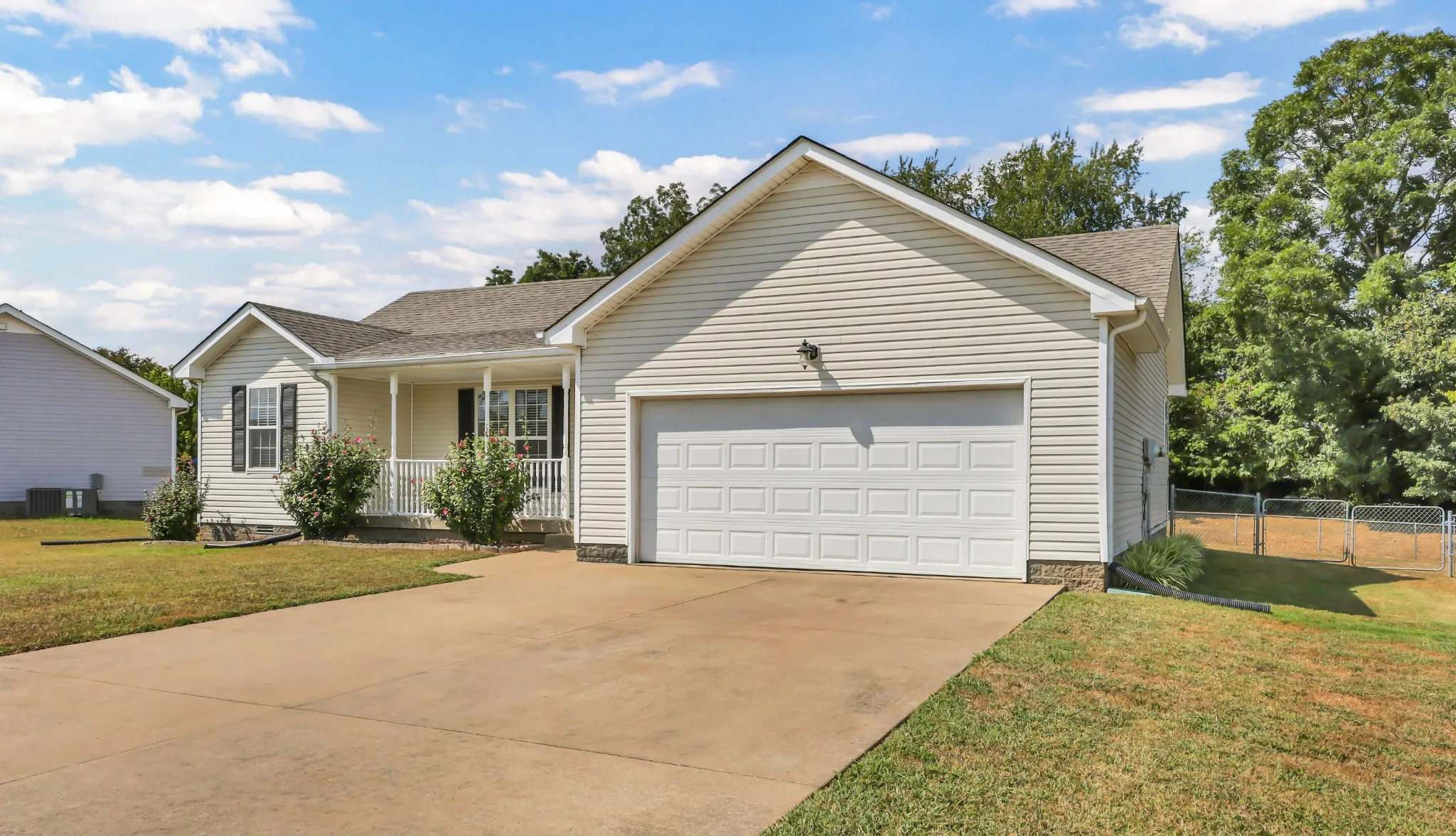 Looking for a home with NO HOA, but still want a nice neighborhood with sidewalks? Welcome to this beauty, designed for both relaxation and entertaining – boasting a brand new HVAC system (July 2025), new roof & kitchen cabinetry (2022), New Levelor 2″ blinds & new LVP floors throughout for worry-free living. The kitchen boasts stunning granite countertops, new refrigerator & a pantry! The Primary Bdrm features a WIC + dual sinks and a garden tub! Enjoy the great outdoors on your large front porch or the expansive back deck, complete with a cozy fire pit & string lights in the back yard – perfect for relaxing evenings. The fully fenced yard ensures security and peace of mind for children or pets to play safely. Backyard property line goes past the fence to the tree line. The back door has been newly replaced with tempered glass, adding both style and durability. Washer/Dryer both convey, as well. Whether you’re enjoying quiet moments at home or hosting your next get-together, this ranch-style home offers the perfect combination of modern updates and inviting outdoor spaces. Don’t miss out on this fantastic opportunity! Priced to sell fast. Sellers LOSS is your GAIN.