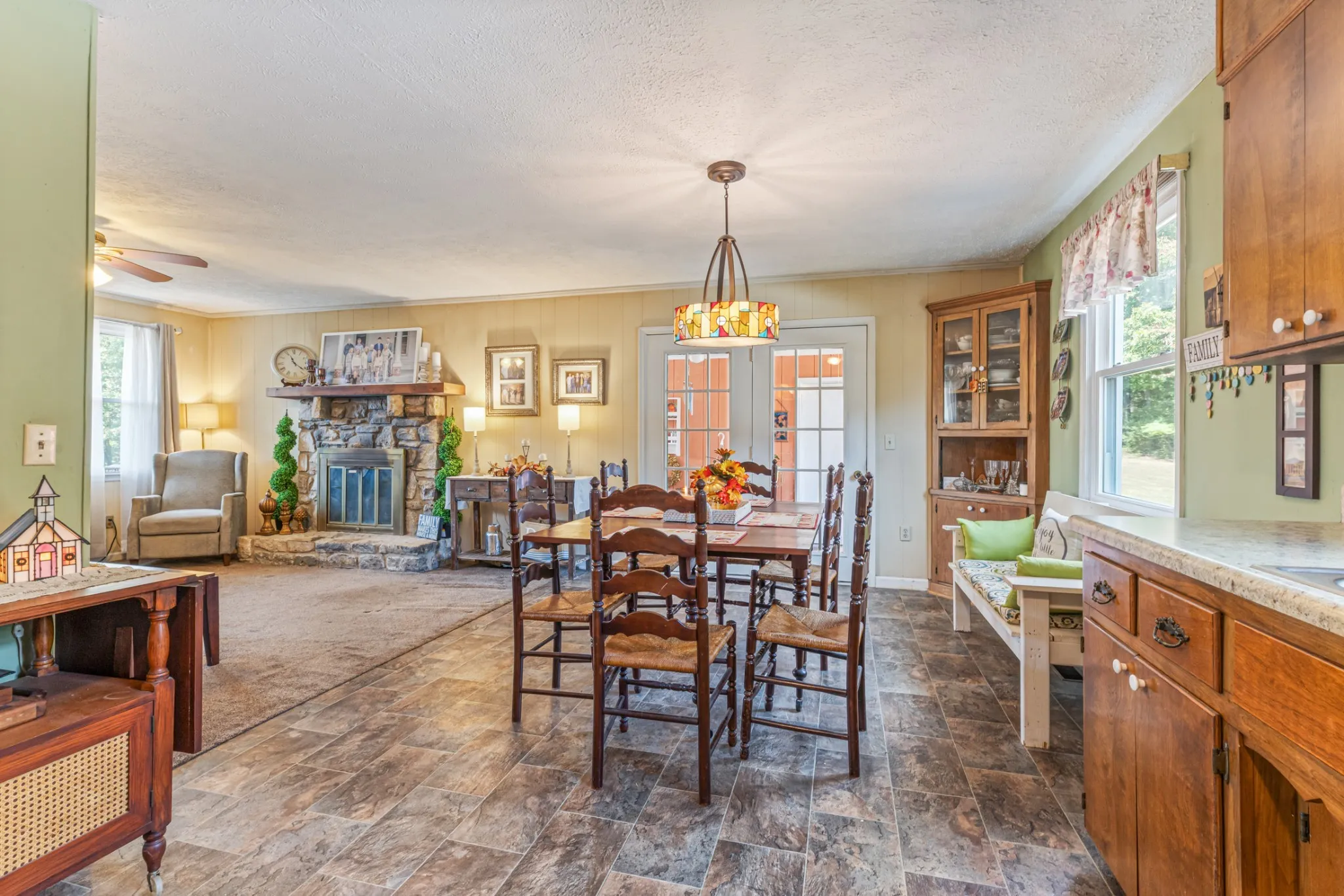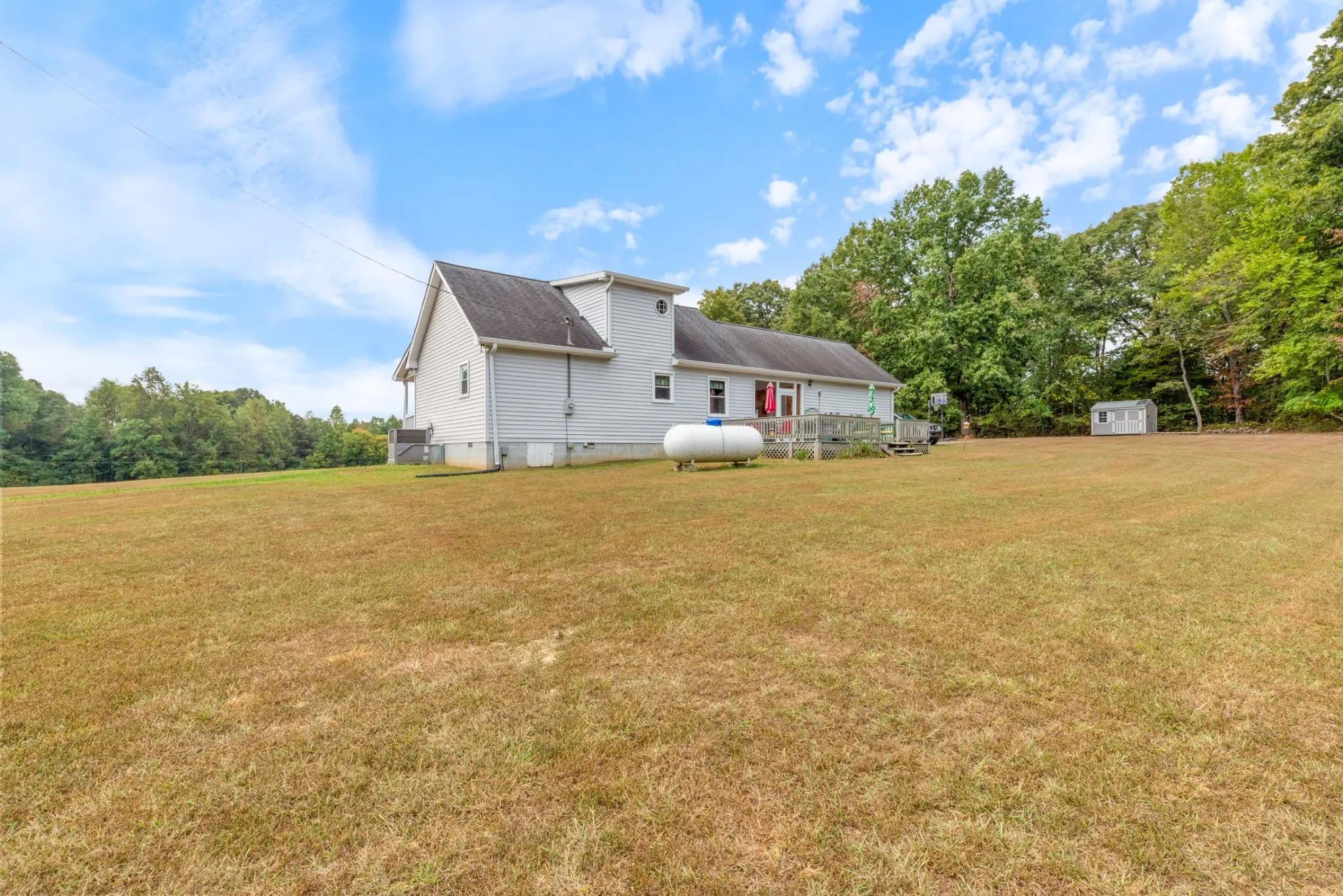 New windows were installed in 2025, and the living room fireplace has been converted from wood to propane. The enclosed glass breezeway connecting the house and family room provides a comfortable outdoor experience without exposure to the elements. The expansive back deck is perfect for entertaining guests or enjoying a quiet morning coffee while watching the sunrise over the rolling pastures. Mature trees dot the landscape, providing shade and a serene backdrop for outdoor activities. The two horse barn adds charm and functionality, making it ideal for equestrian enthusiasts or anyone looking to embrace a rural lifestyle.
