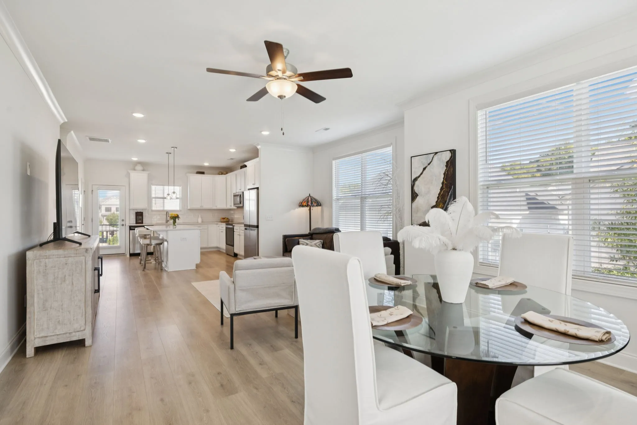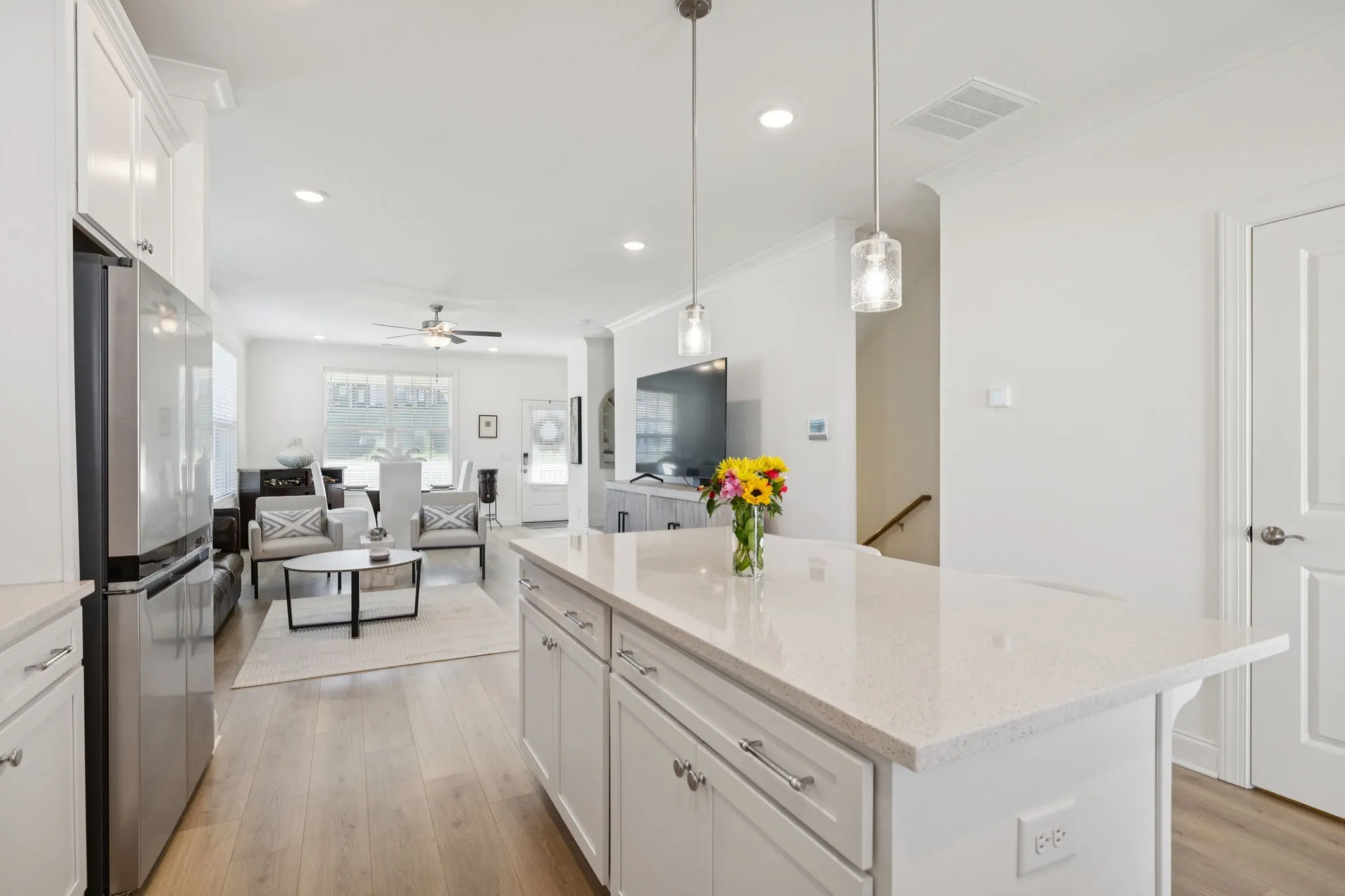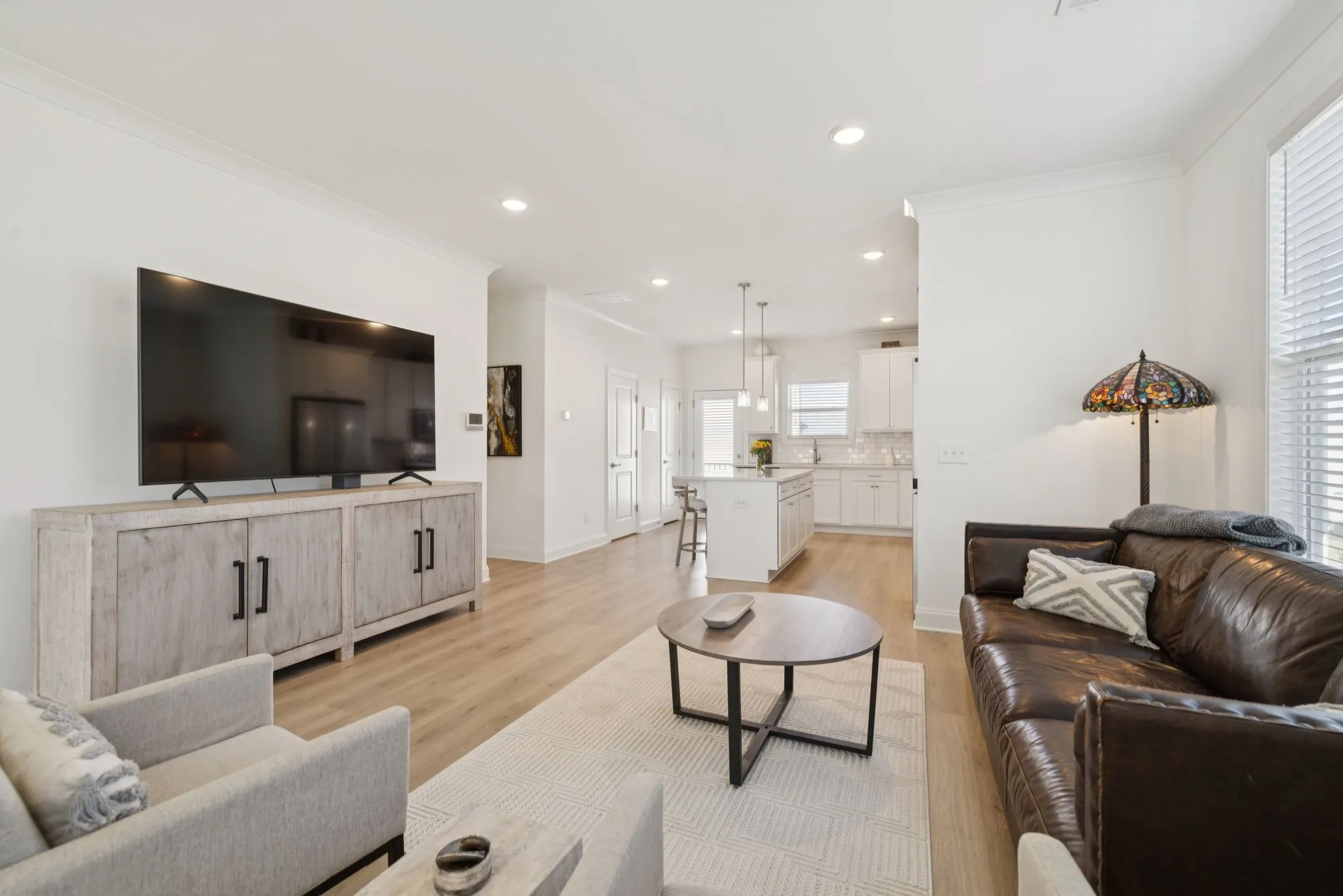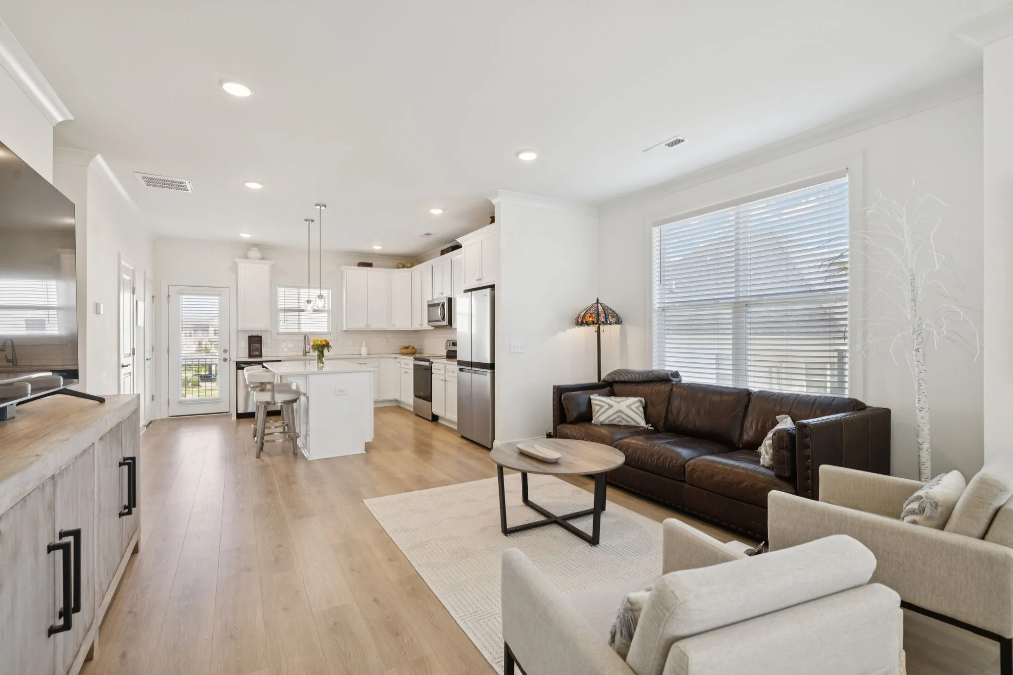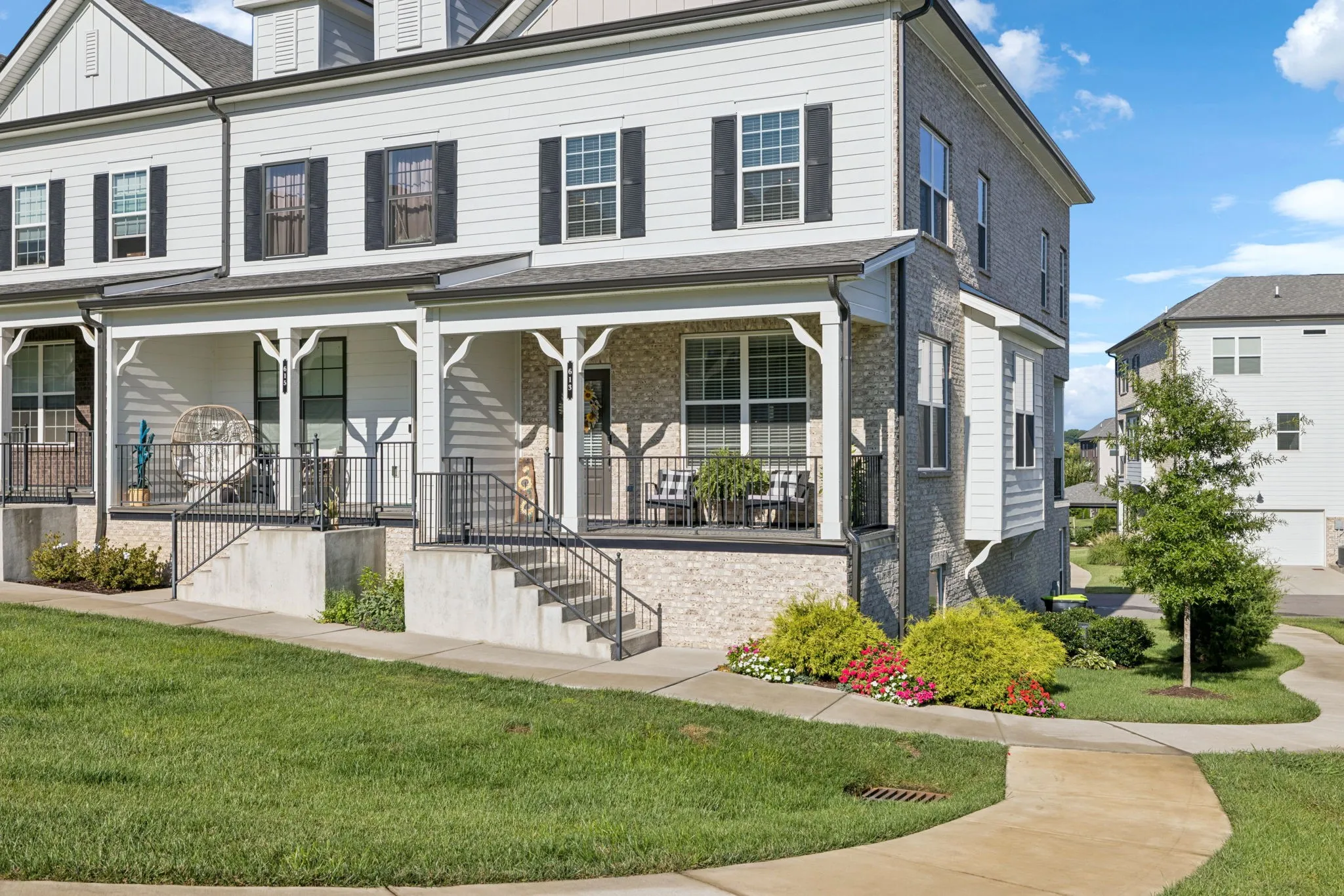 Welcome to 613 Thetford Alley in scenic Brentwood, Tennessee.This impeccably maintained square foot townhome offers three bedrooms, three and a half baths, and is nestled in the highly sought-after Southpoint community. Conveniently located just minutes from shopping and dining, with some options just a walk away, the location is ideal for modern living. Upon entering through the garage, you step into what could be a versatile flex space, the third guest bedroom, home office, use it as a gym, accompanied by a full bathroom for added convenience. Moving up to the first floor, an open concept layout awaits, seamlessly connecting the kitchen, breakfast room, and family room. Stylish engineered hardwood flooring enhances both this level and the basement, while the kitchen boasts quartz countertops, a tile backsplash, a spacious island, a pantry, and all stainless steel appliances with a spacious balcony. The family room opens onto the front porch, perfect for enjoying Tennessee’s beautiful evenings overlooking the community greenspace. On the third floor, plush carpeting leads to the primary and guest bedrooms, each with its own ensuite bath featuring tile floors. The primary bedroom includes a tiled shower and a walk-in closet, while the secondary bath offers a tub/shower combination. Completing this level is a conveniently located laundry room. 613 Thetford Alley presents a unique opportunity to enjoy a comfortable and stylish townhome living in Brentwood. Discover your new Home Sweet Home today!