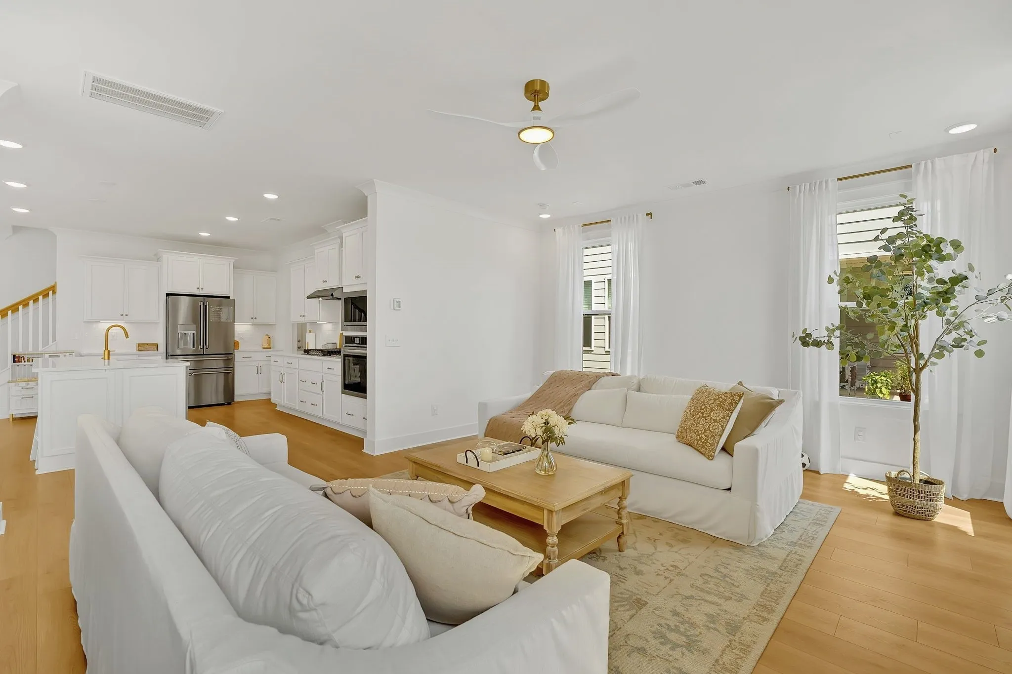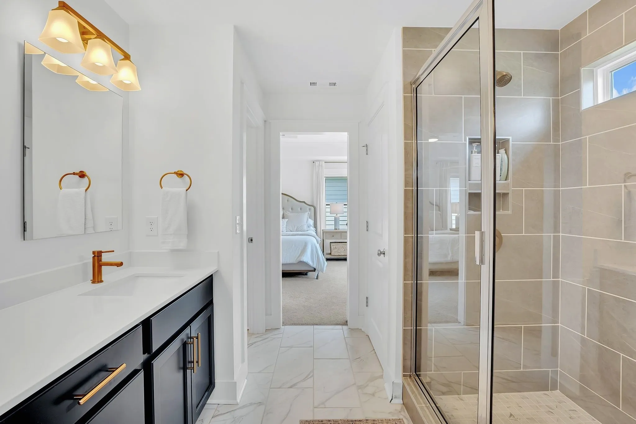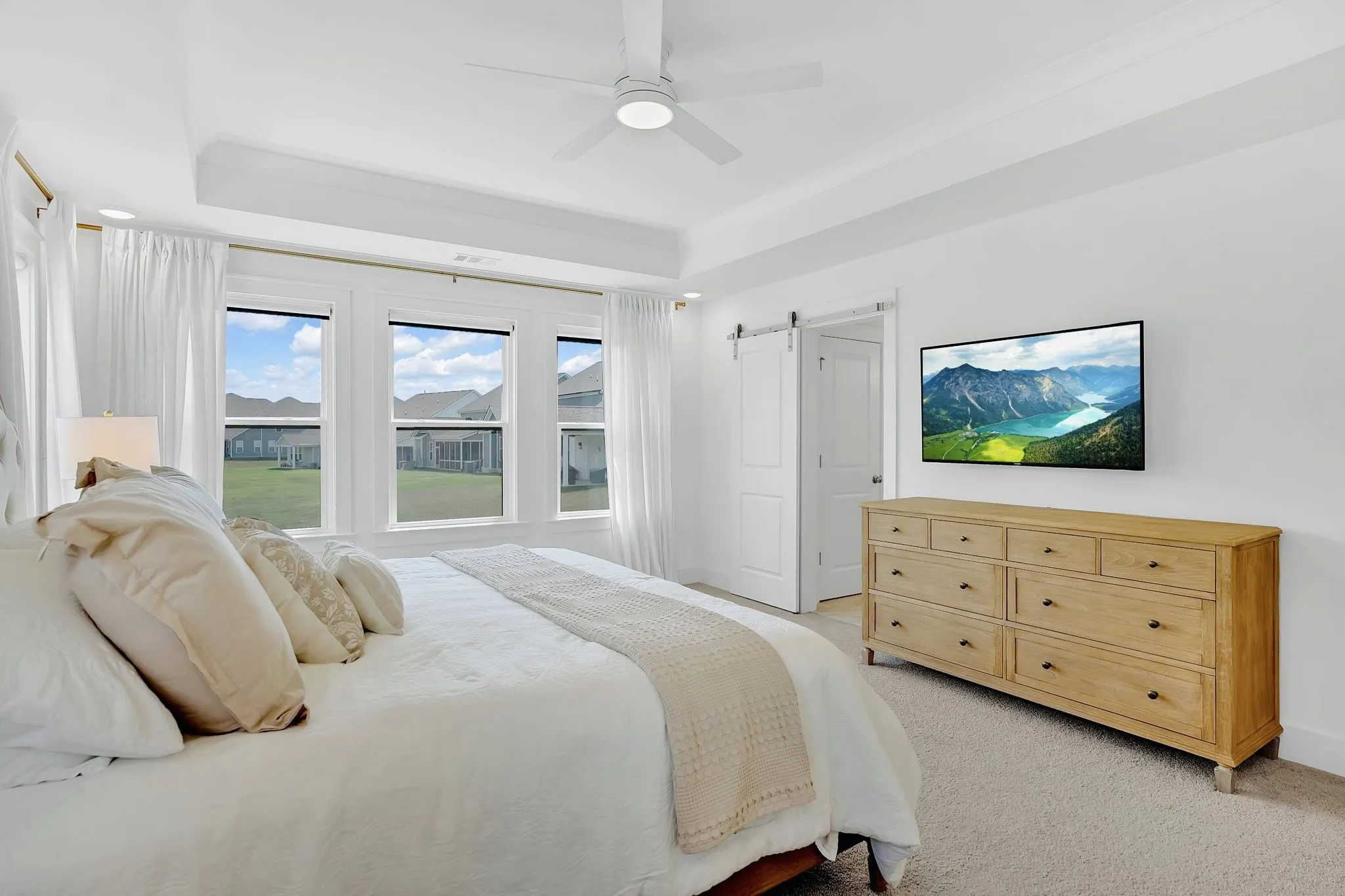 Upgraded vinyl plank flooring throughout main level, walk-in closets in every bedroom. Spa-like primary bath with Moen fixtures, elegant tile, and sliding barn door.