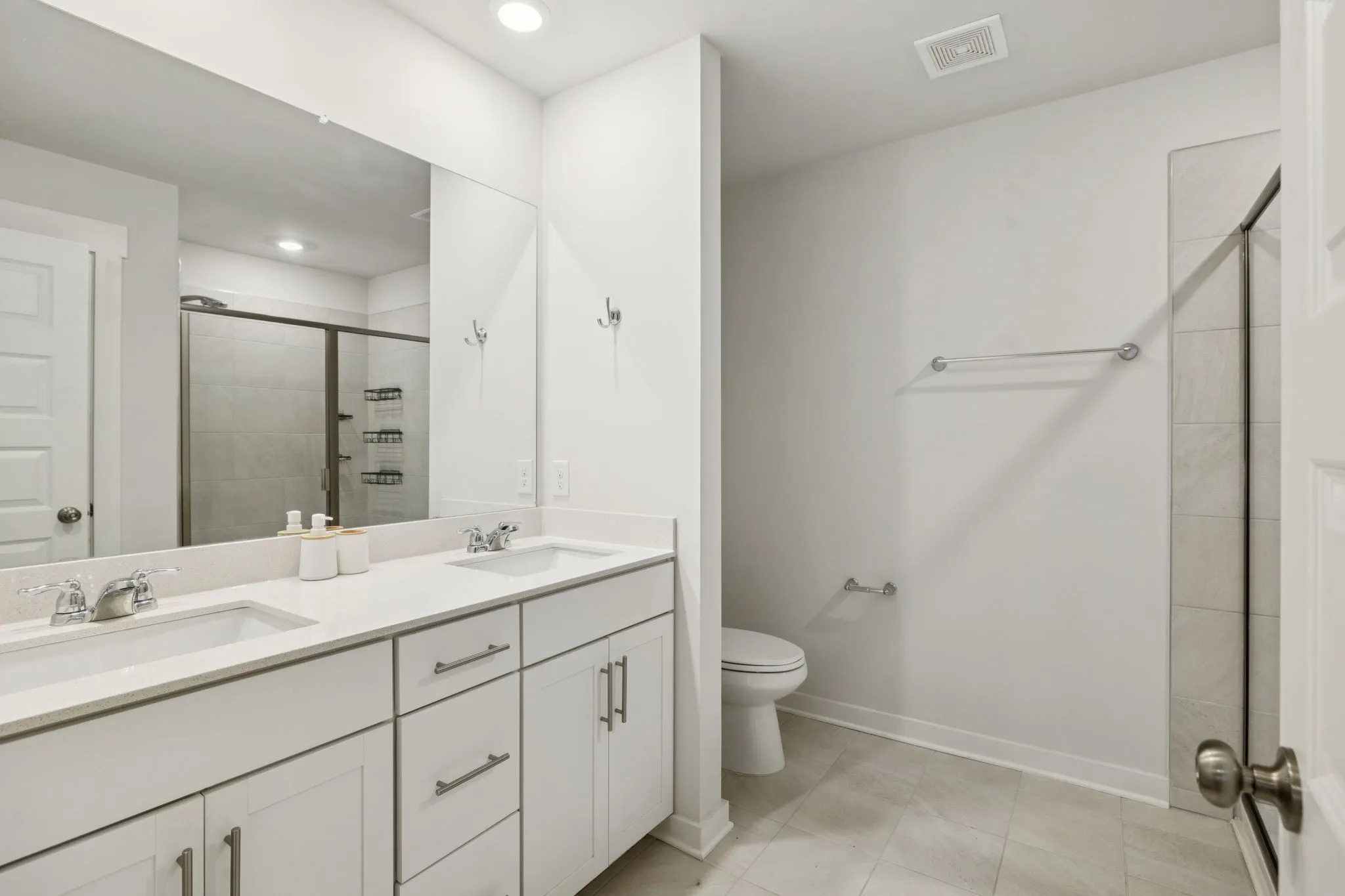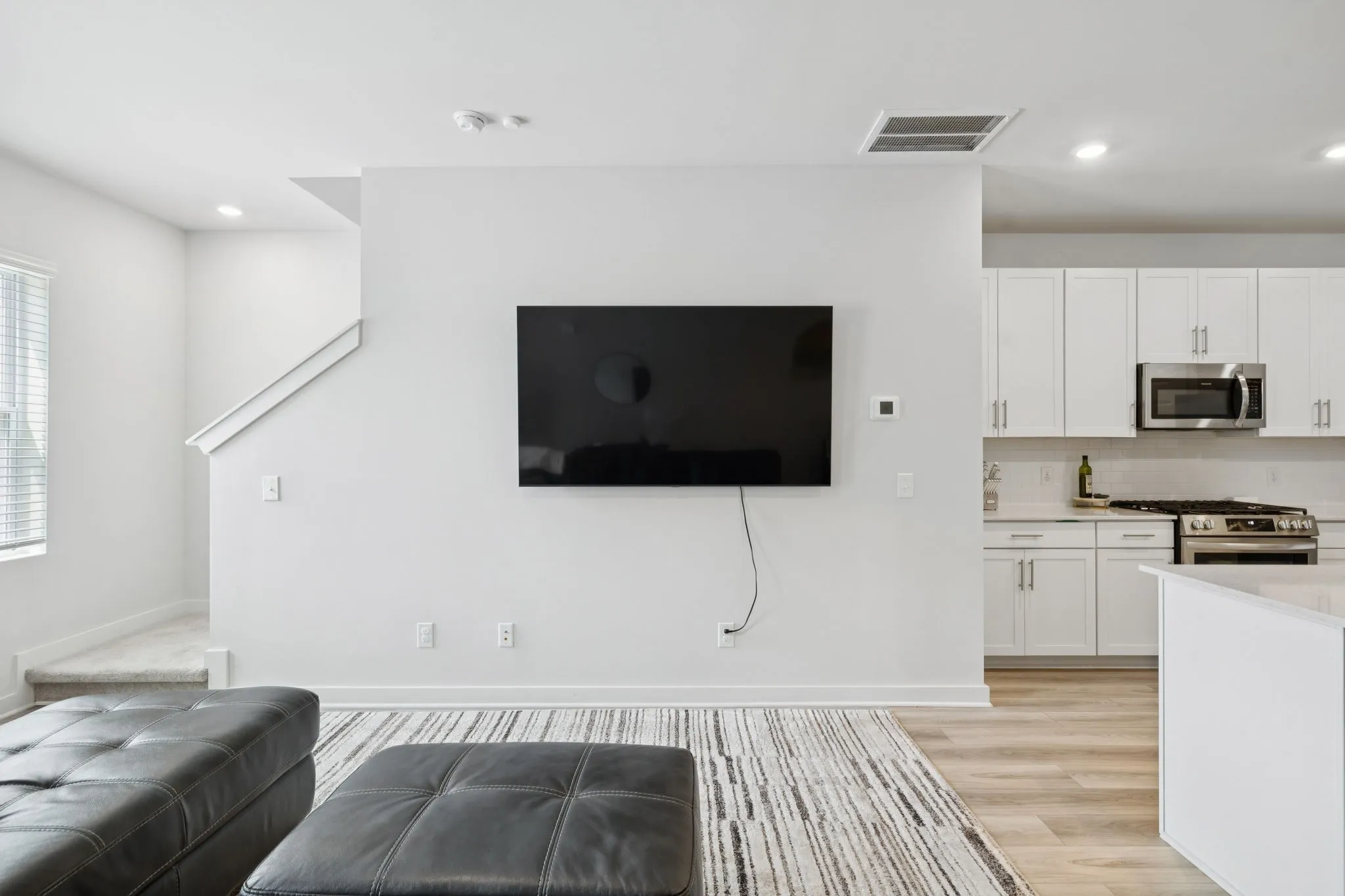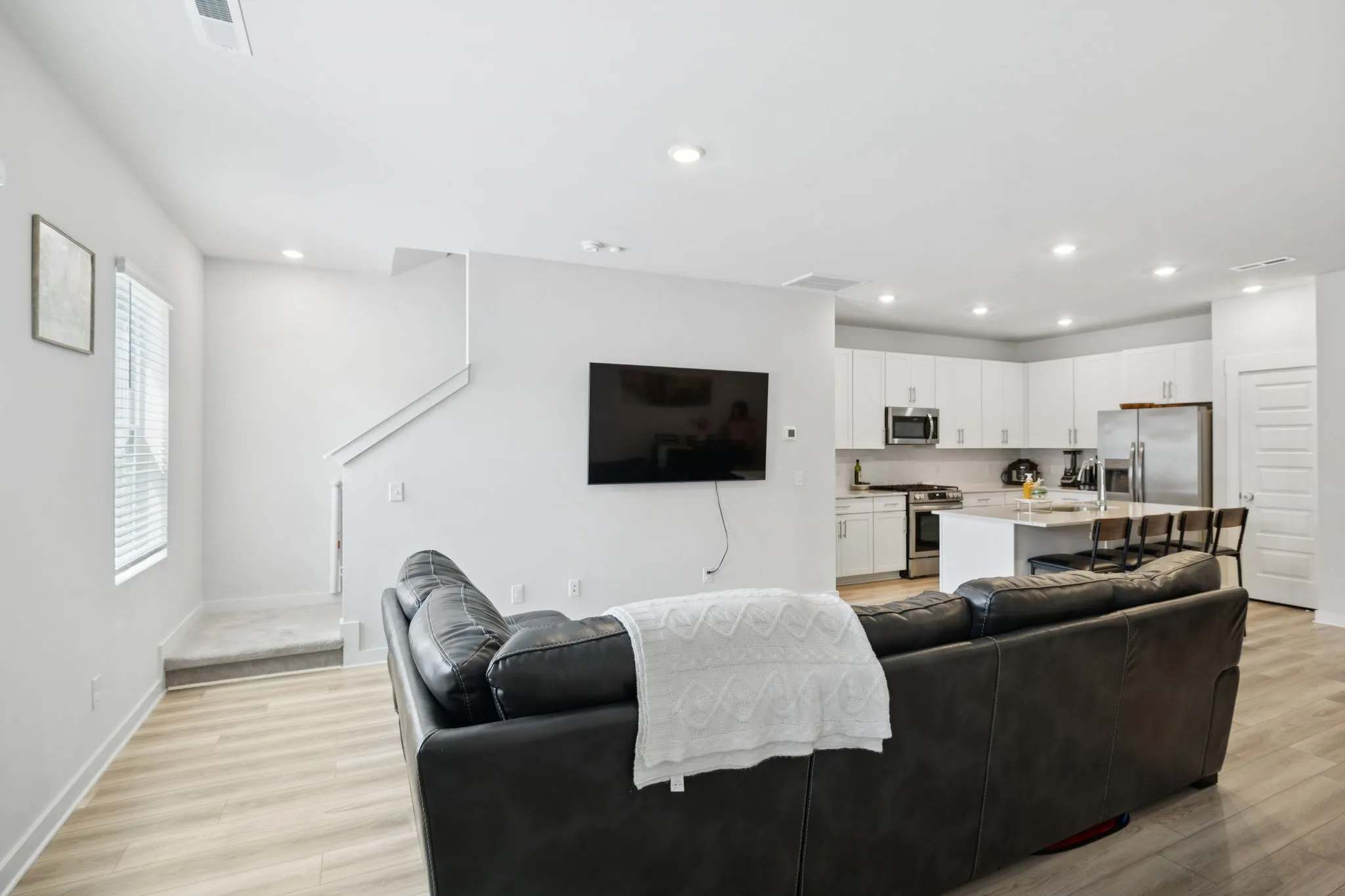 Enjoy a spacious open-concept layout ideal for both everyday living and entertaining. The kitchen features quartz countertops, a stylish tile backsplash, stainless steel appliances (including refrigerator), and a large island with bar seating. Upstairs, the primary suite includes a walk-in closet and a private bath with ceramic tile and double vanities.