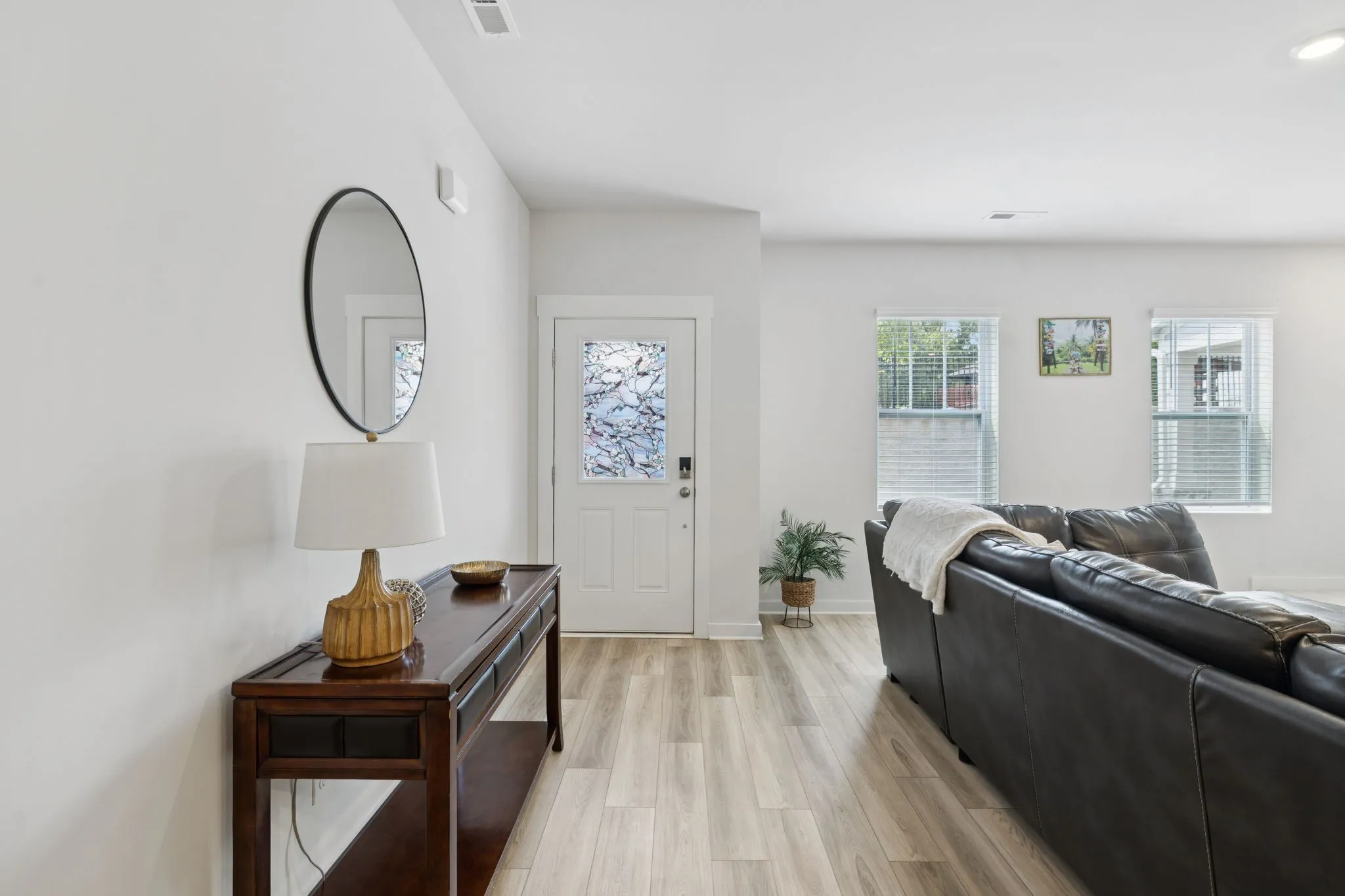 Additional highlights include a 2-car rear-entry garage with epoxy floors, window blinds throughout, Ring doorbell, smart lock, and smart thermostat. The HOA covers exterior maintenance, lawn care, and more – offering convenience and peace of mind.