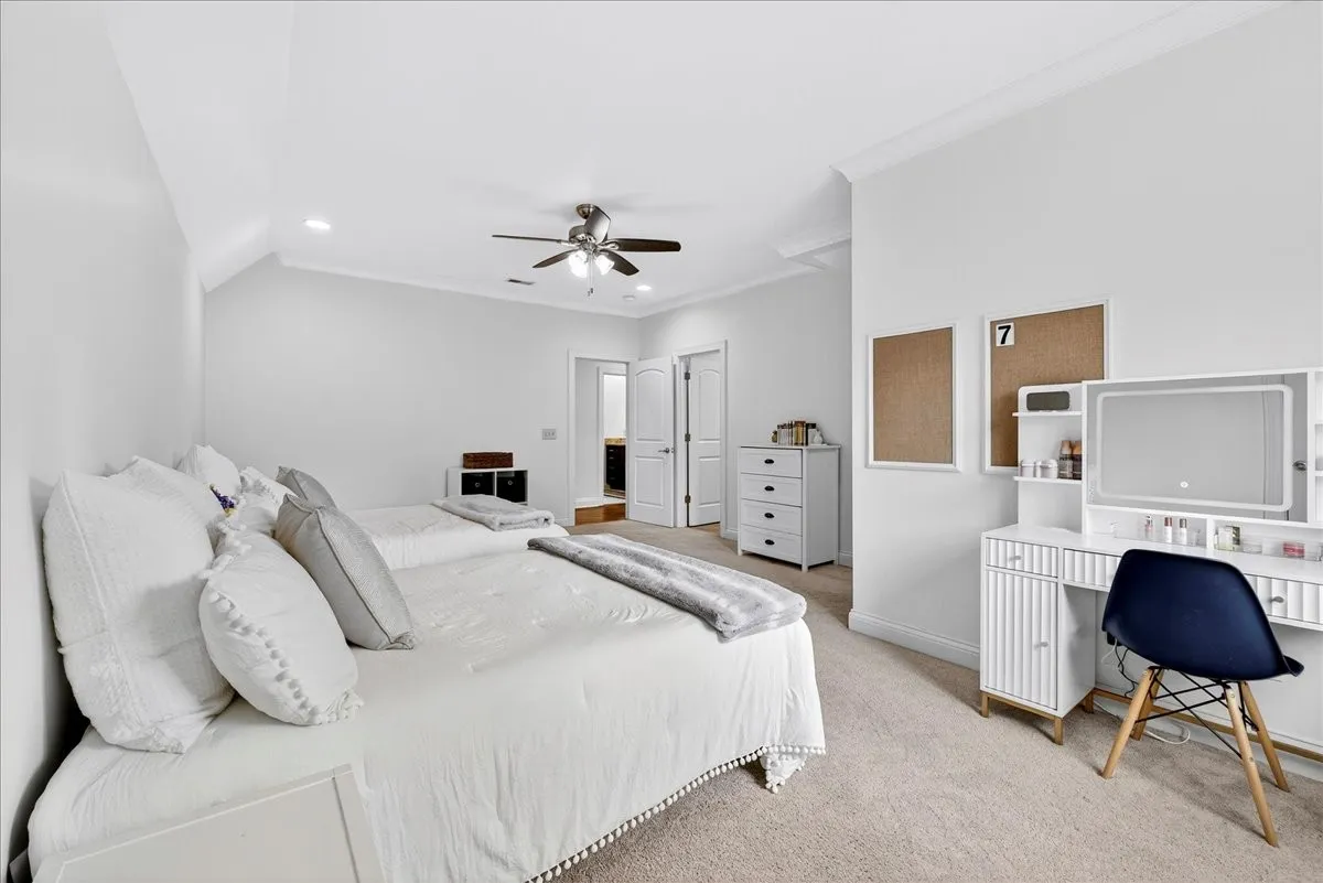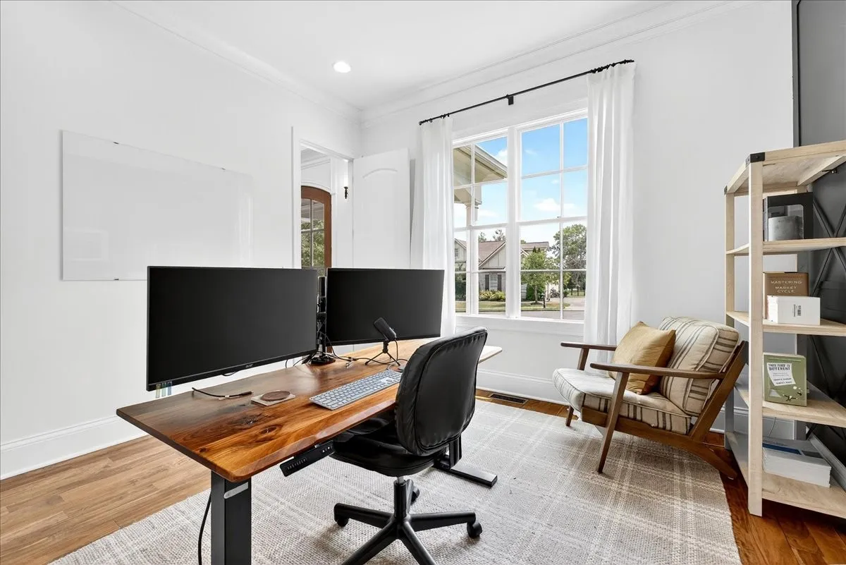 The main floor includes a private office and a spacious primary suite with spa-like bath, dual vanities, oversized shower, and custom closets. Upstairs, you’ll find three large en-suite bedrooms plus a bonus room for flexible living. Designed with function in mind, this home offers abundant storage and oversized closets in nearly every room. Additionally, Beautiful hardwood floors extend throughout the main and second floors, adding warmth and sophistication.