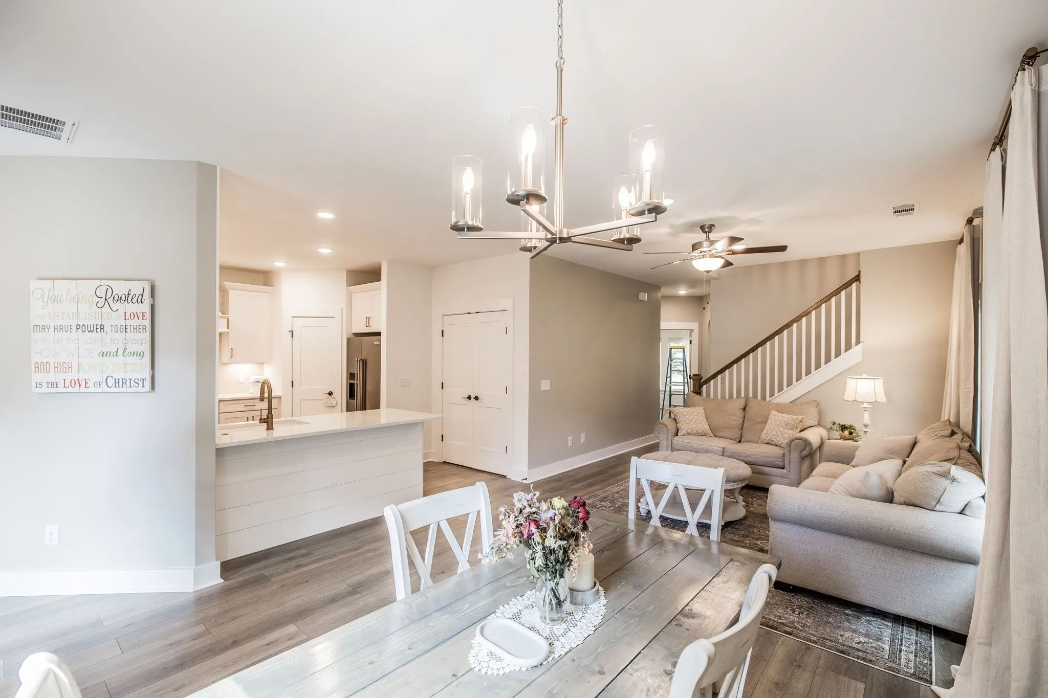 Backs up to a private, tree-lined lot for extra privacy and tranquility. Inside, you’ll find 3 spacious bedrooms, 3 full bathrooms, and a versatile flex area that makes the perfect office, den, or playroom.