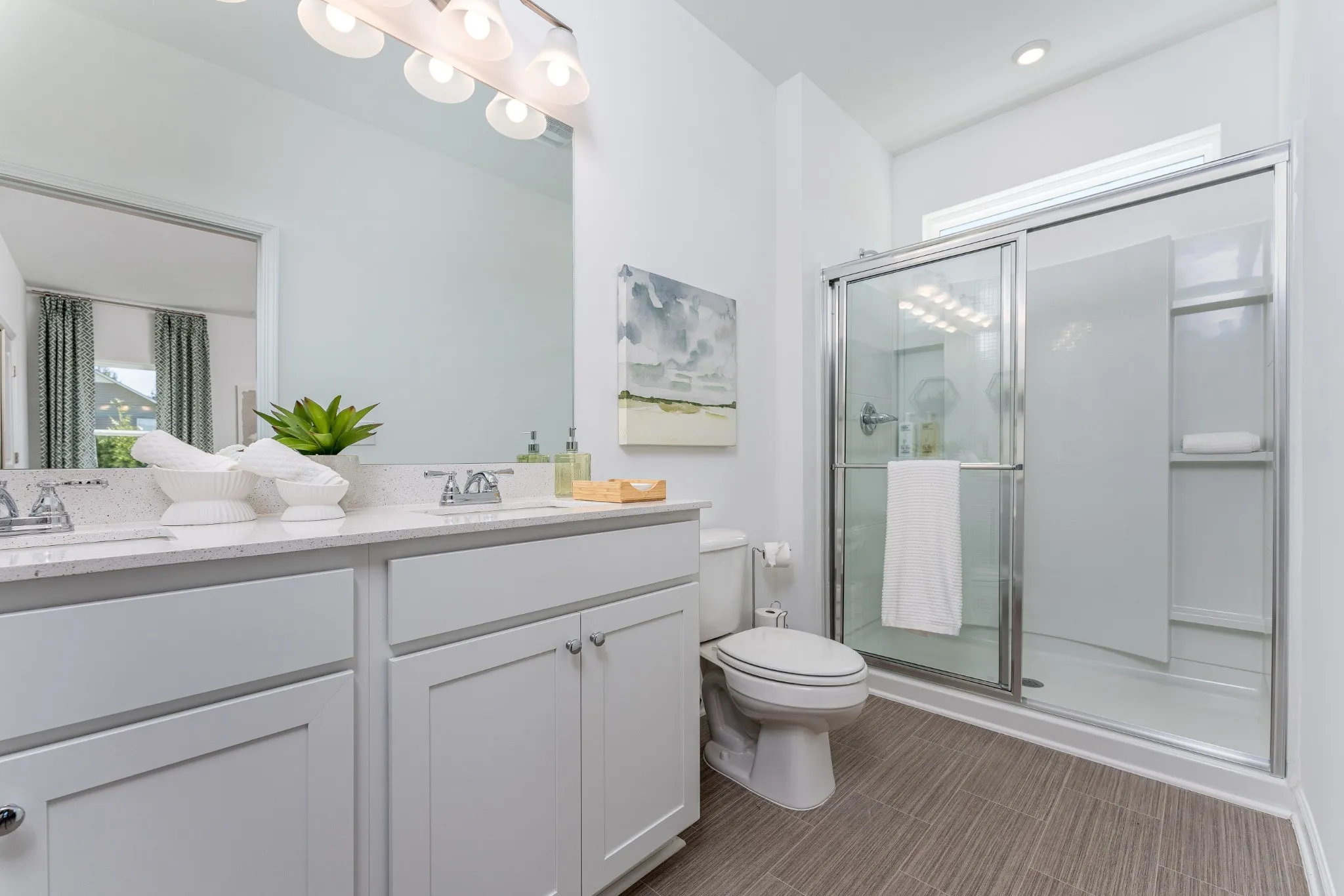 The Phoenix at Jackson Hills by Smith Douglas Homes is the epitome of great use of space. The kitchen offers a large island with raised breakfast bar open to the family room. Thoughtful design of the secondary bedrooms provides extra noise isolation from the front entry hall. For those not needing a third bedroom, the option of a dining room adjacent to the family room is available. With a split bedroom design, the owner’s suite is situated at the back of the home away from it all.