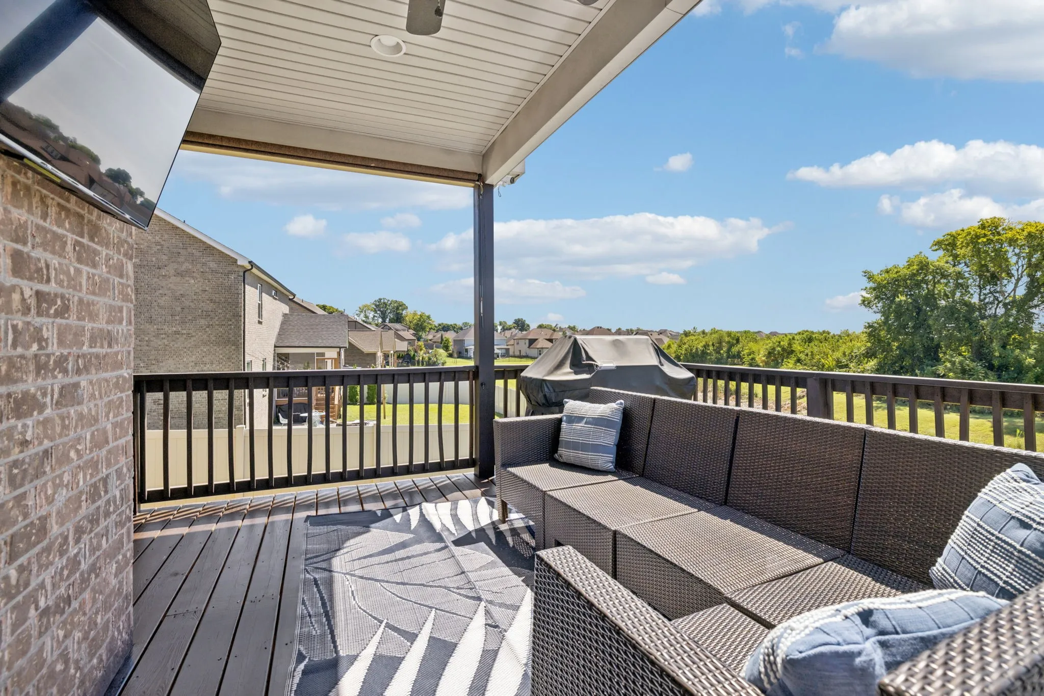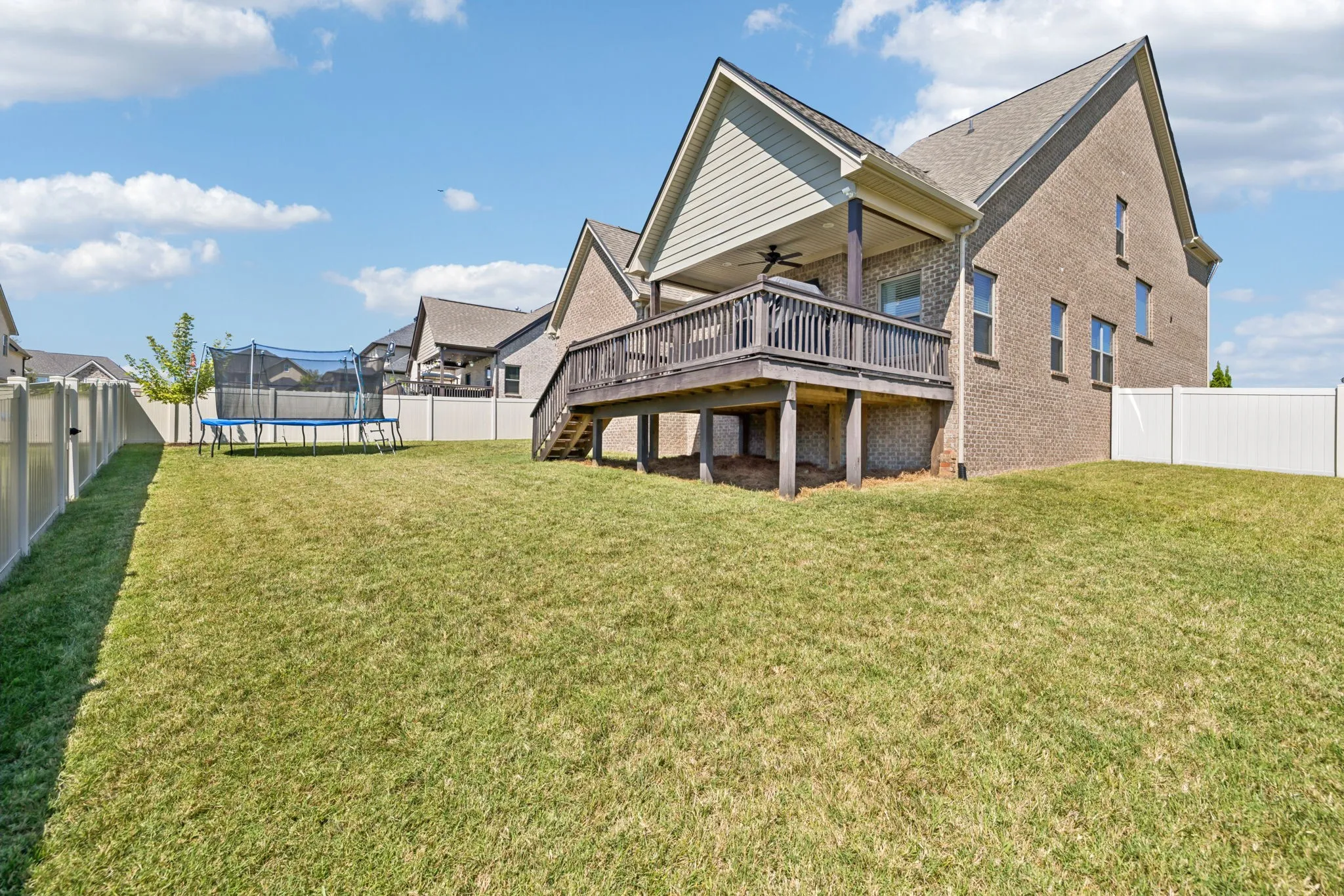 Enjoy the outdoors on your covered deck overlooking a level lot backing up to a retention pond, providing privacy perfect for play or entertaining.