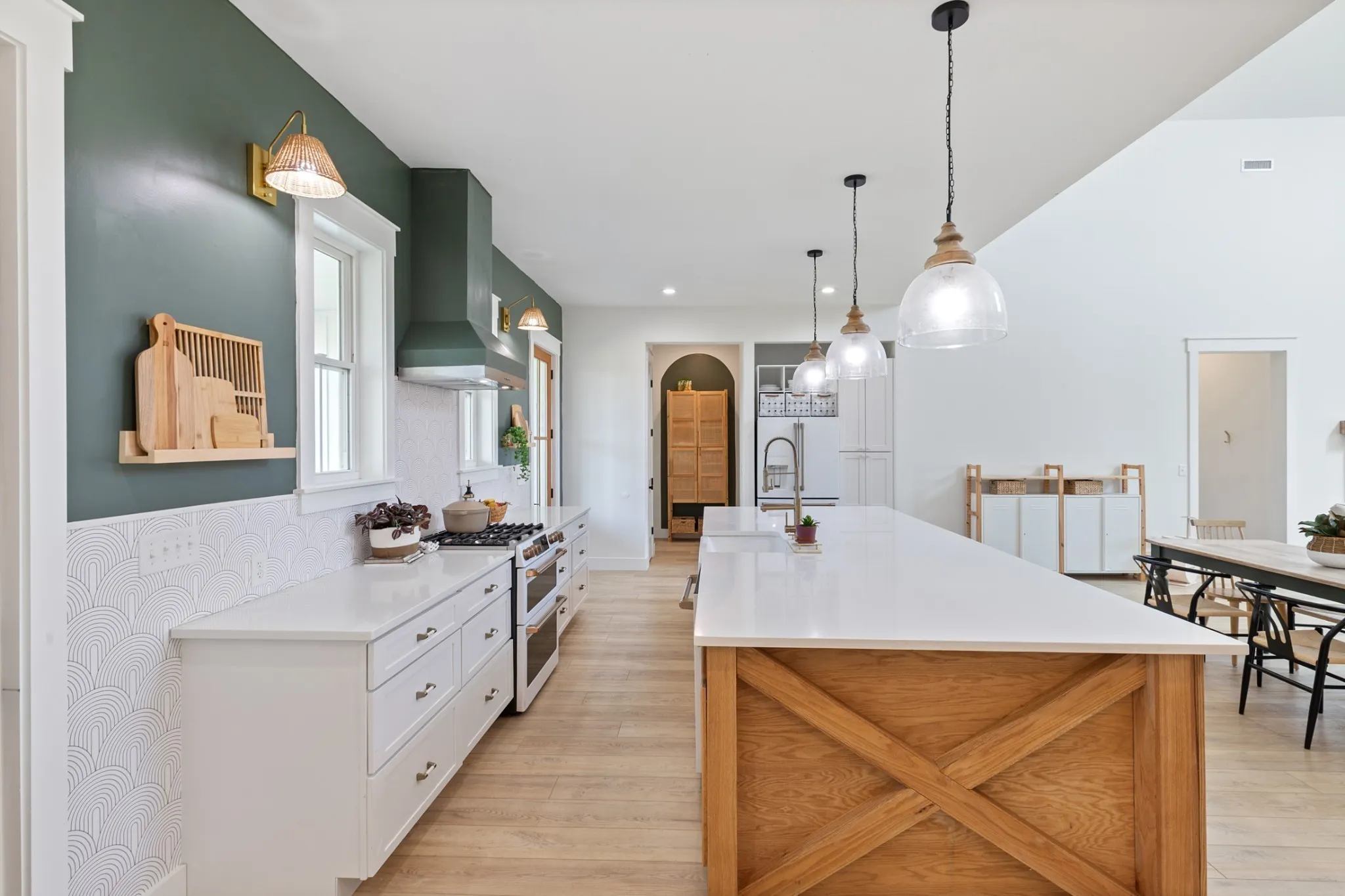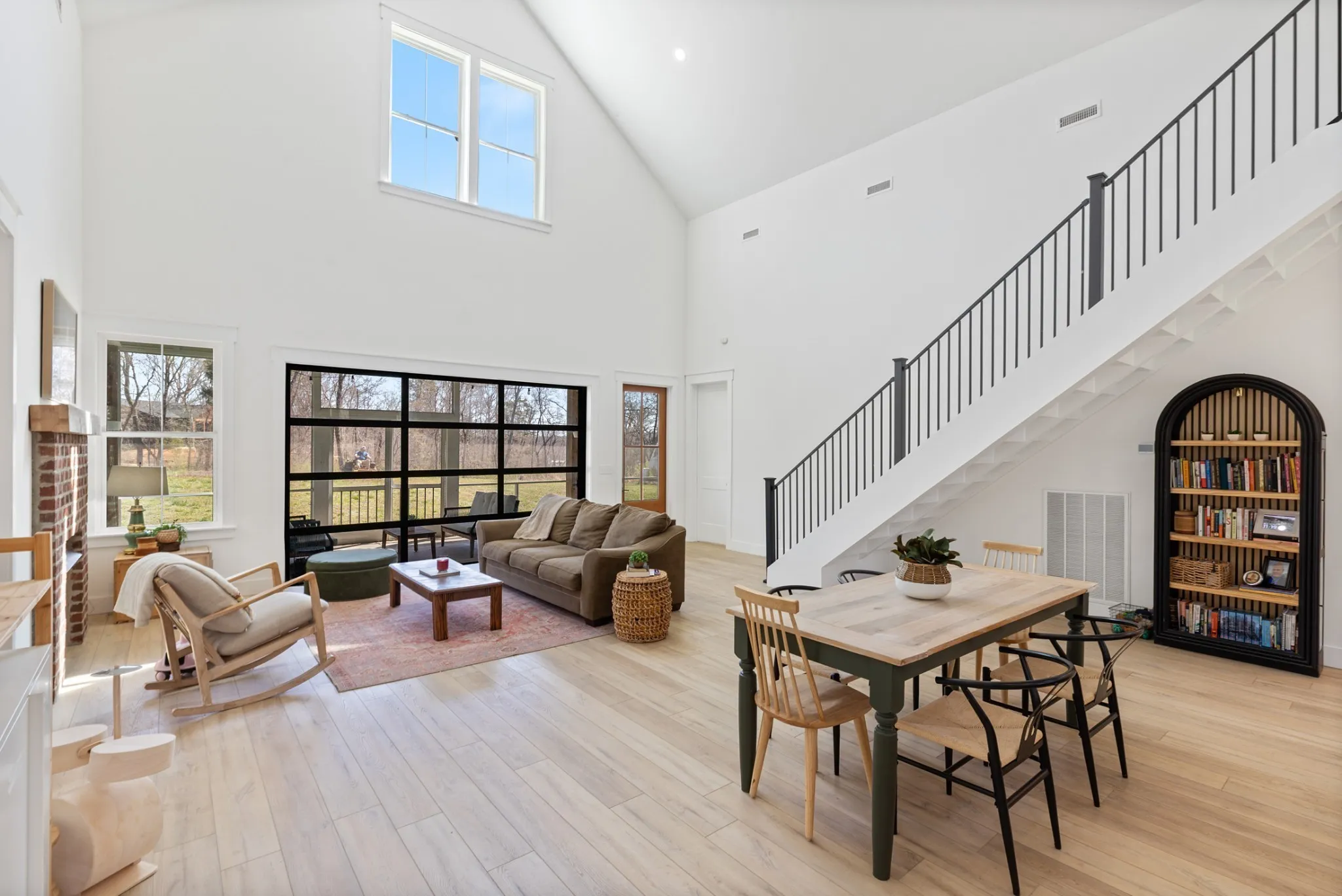 This home is the perfect balance of feeling peaceful and quiet while being just a 8 minute drive into Dickson, TN. Nestled on over 5 acres of serene countryside with creek access, this home offers the perfect blend of quiet luxury and nature. The heart of the home is the spacious kitchen, featuring a massive island with sleek white quartz counter tops, GE Cafe appliances, and a designated coffee bar–perfect for entertaining. The kitchen is open to the dining and living areas–this open concept area boasts 24′ ceilings. In the living room you will find a glass garage door that fully opens to a large screened in porch, ideal for indoor/outdoor living. Whether you are enjoying the master suite, large laundry/office area, large bonus room, or the views from the screened in porch, this is surely a house you don’t want to miss. New landscaping also has a built-in irrigation system.