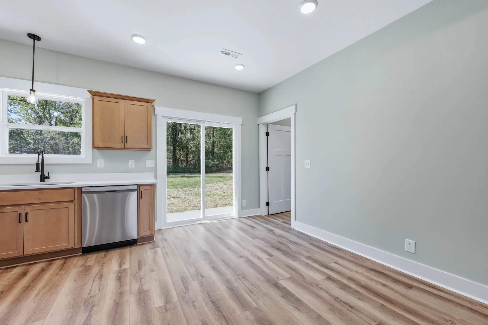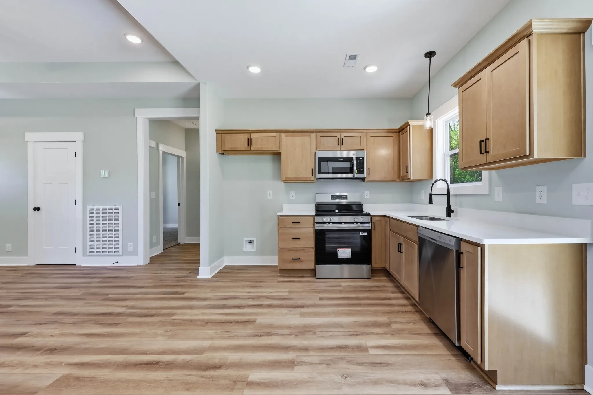 Welcome to this brand-new, single-level home designed with comfort and convenience in mind. Offering 3 bedrooms and 2 full baths, the layout features a spacious open concept that seamlessly connects the living, dining, and kitchen areas—perfect for entertaining or everyday living. The split-bedroom design creates privacy for the primary suite, thoughtfully set apart from the other two bedrooms. A side entry through the utility room adds everyday functionality, while the flat lot makes outdoor enjoyment and maintenance a breeze. With modern finishes and a smart floor plan, this home is move-in ready and waiting for its first owner.
