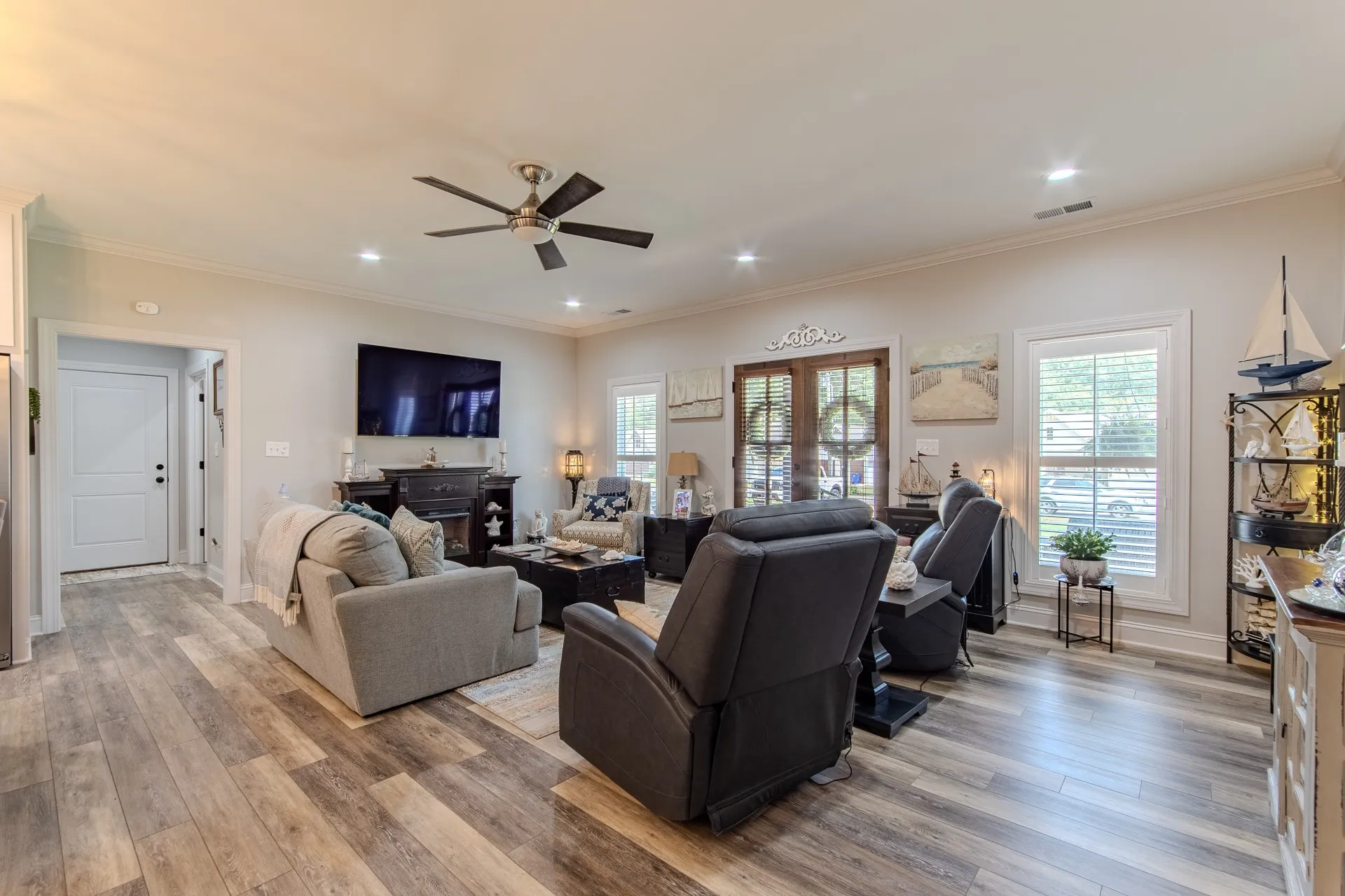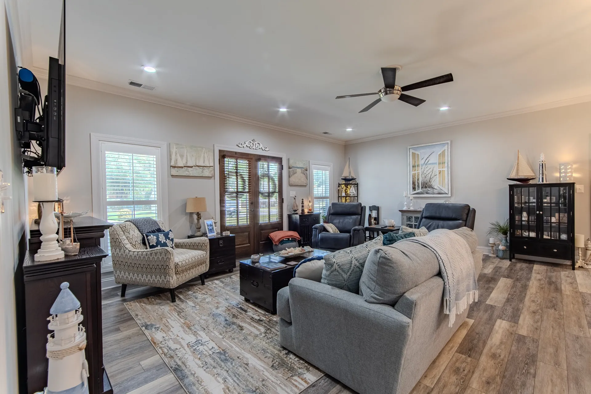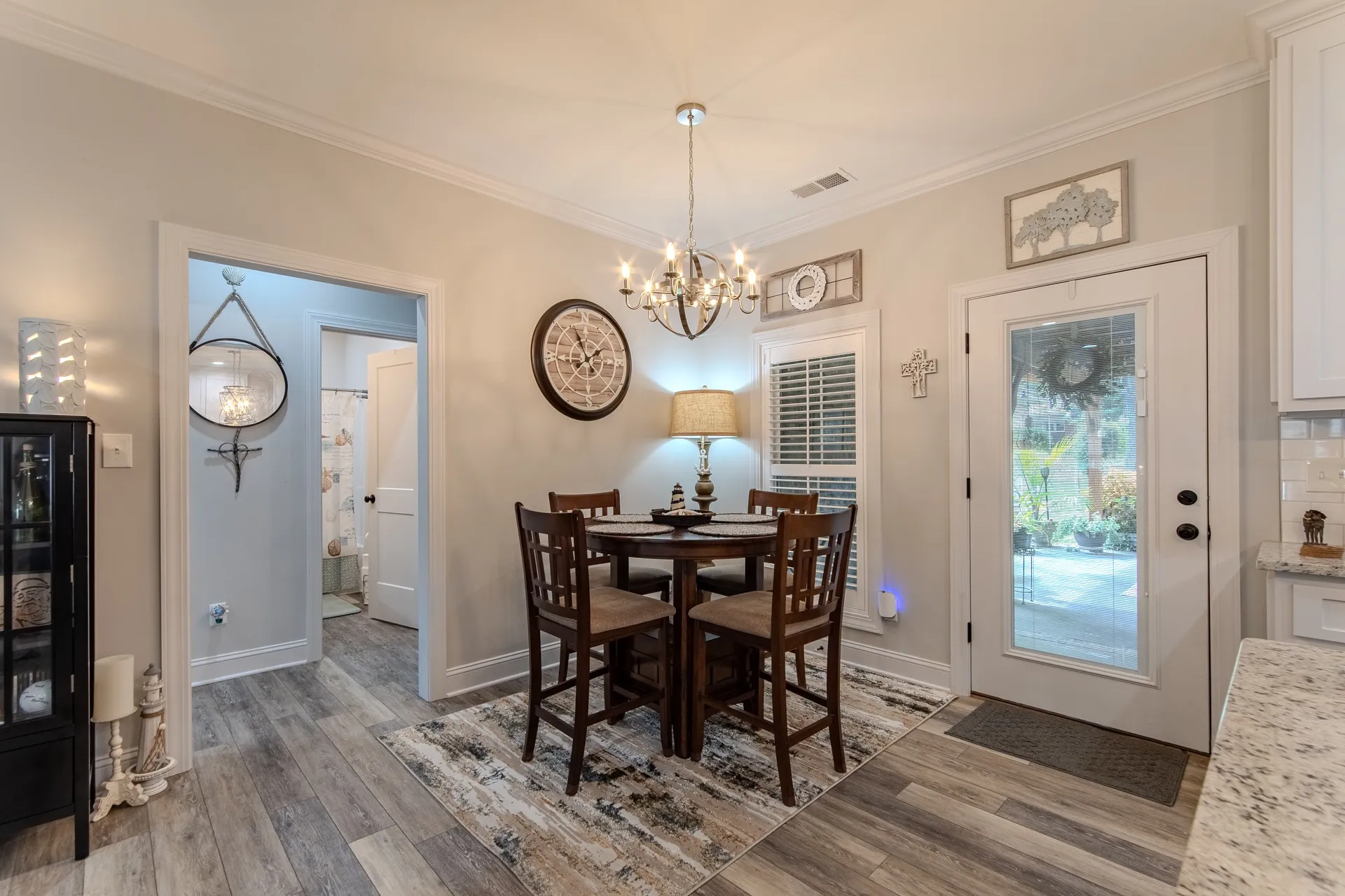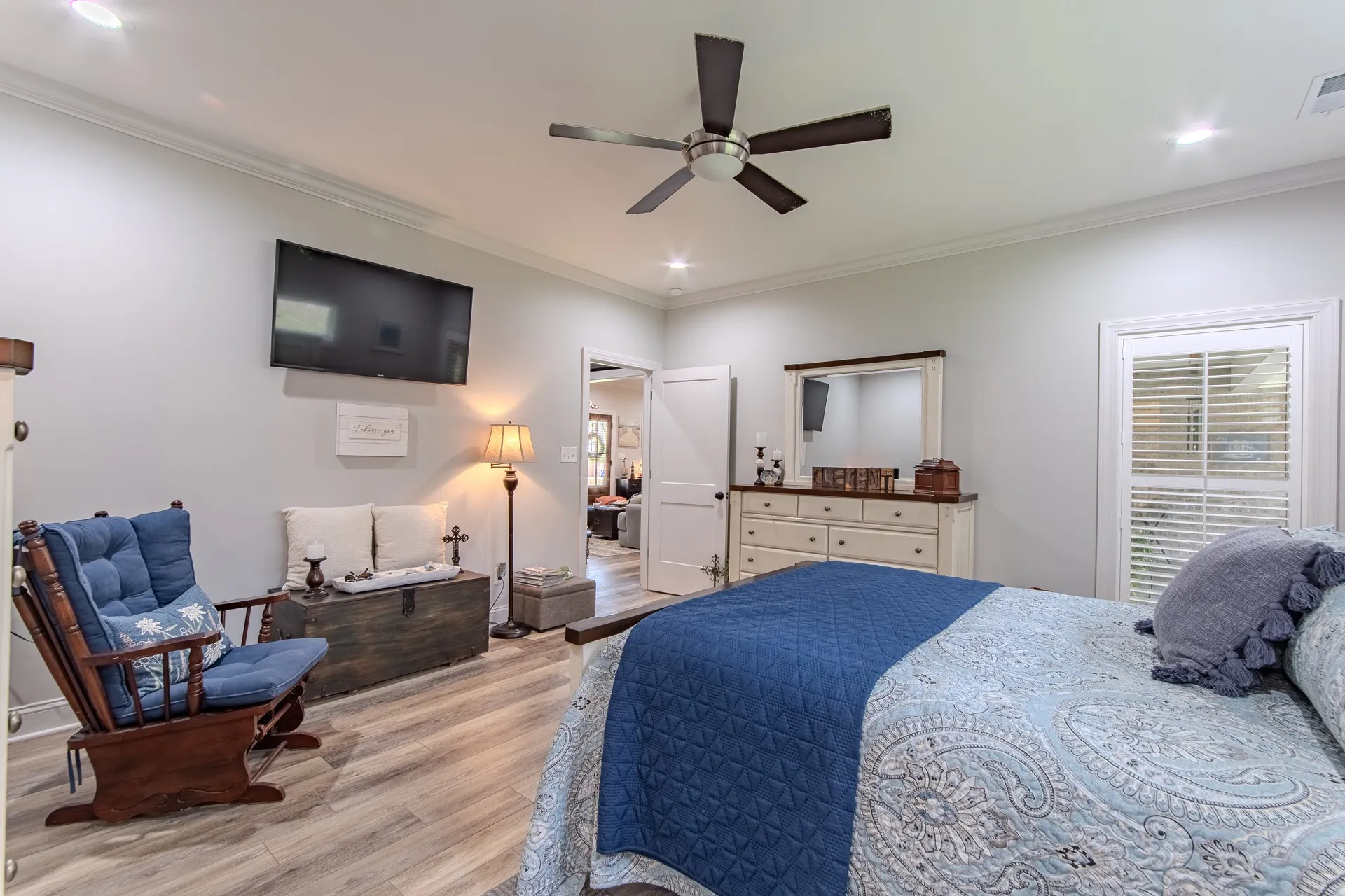 Stunning home in River Birch! This property combines the best of both worlds, peaceful surroundings yet just minutes from shopping, & features city utilities. Inside, you’ll find an open-concept floor plan designed for both comfort & style. The custom kitchen boasts ceiling-height/soft-close cabinetry, granite countertops, gas cooking, & a spacious island perfect for gathering. Hardwood & tile flooring flow throughout, complemented by crown molding, 9-ft. ceilings, & timeless plantation shutters! A split-bedroom layout ensures privacy, while the oversized laundry room adds everyday ease. Outdoors, no detail has been overlooked! The oversized covered patio is truly an extension of the home, complete w/a custom grilling station & ample room for dining/relaxing. Surrounded by lush landscaping & a sprinkler system, this backyard was thoughtfully designed for year-round enjoyment. The inviting front porch adds classic curb appeal & a matching 12×16 brick outbuilding offers extra storage!