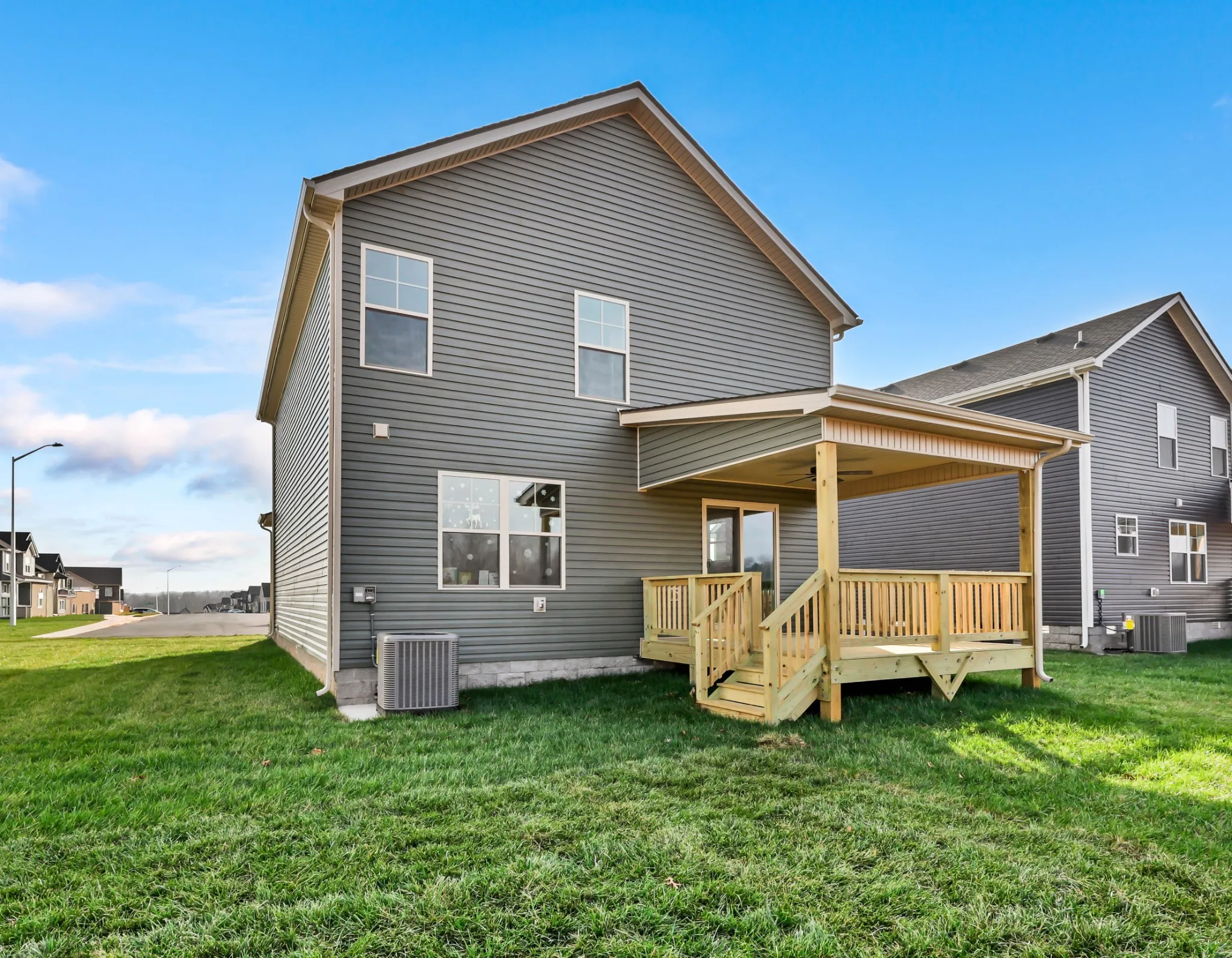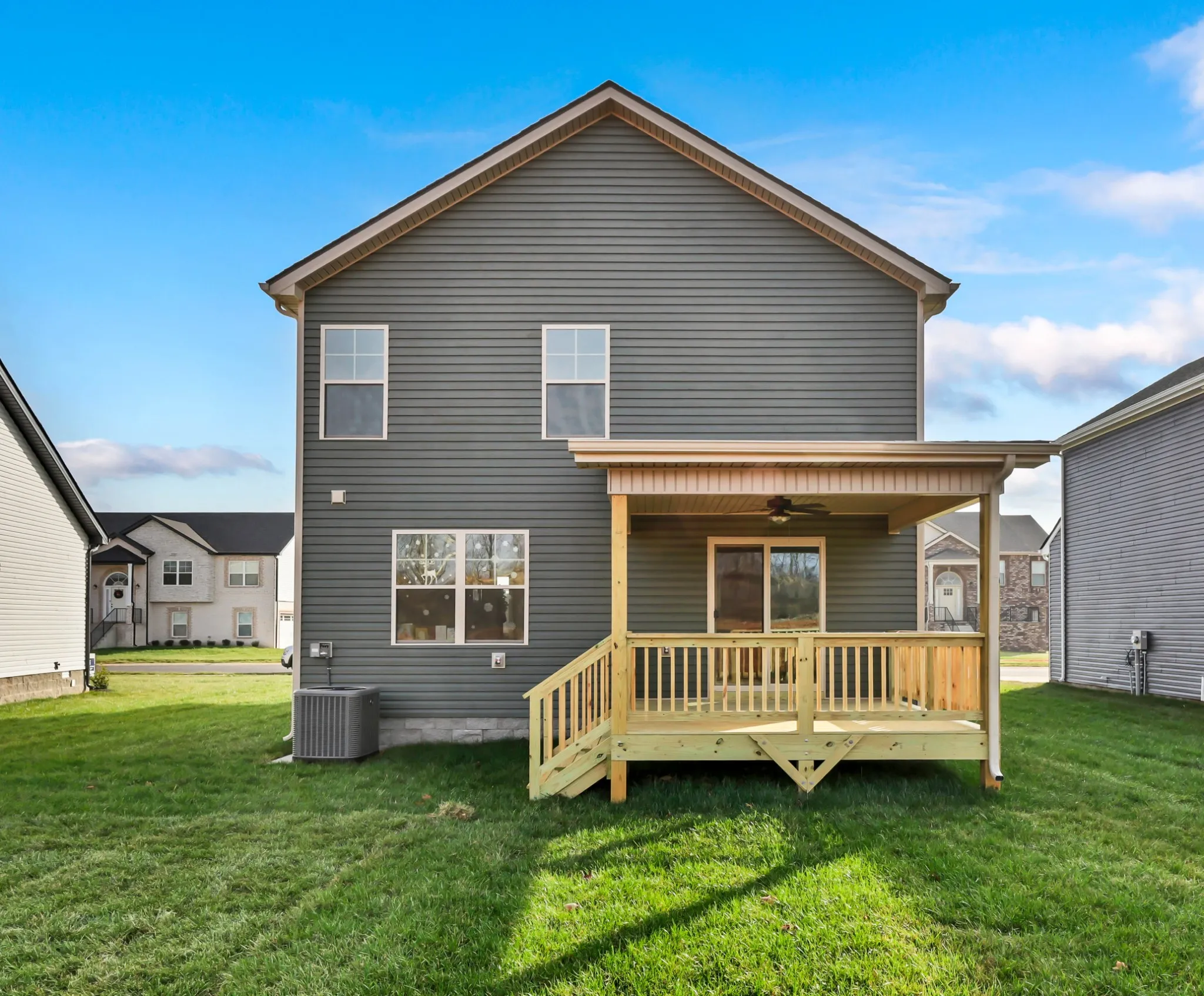 Upstairs, you’ll discover generously sized bedrooms and a thoughtfully designed primary suite featuring tray ceilings, a luxurious ensuite bathroom with double vanities, a walk-in shower, and a large walk-in closet. The second-floor laundry room adds convenience, while the fully sodded yard and covered back deck offer the ideal retreat for outdoor relaxation.