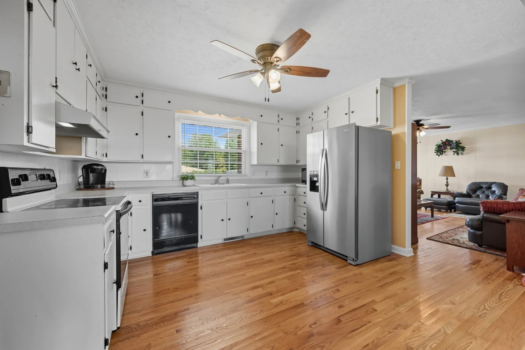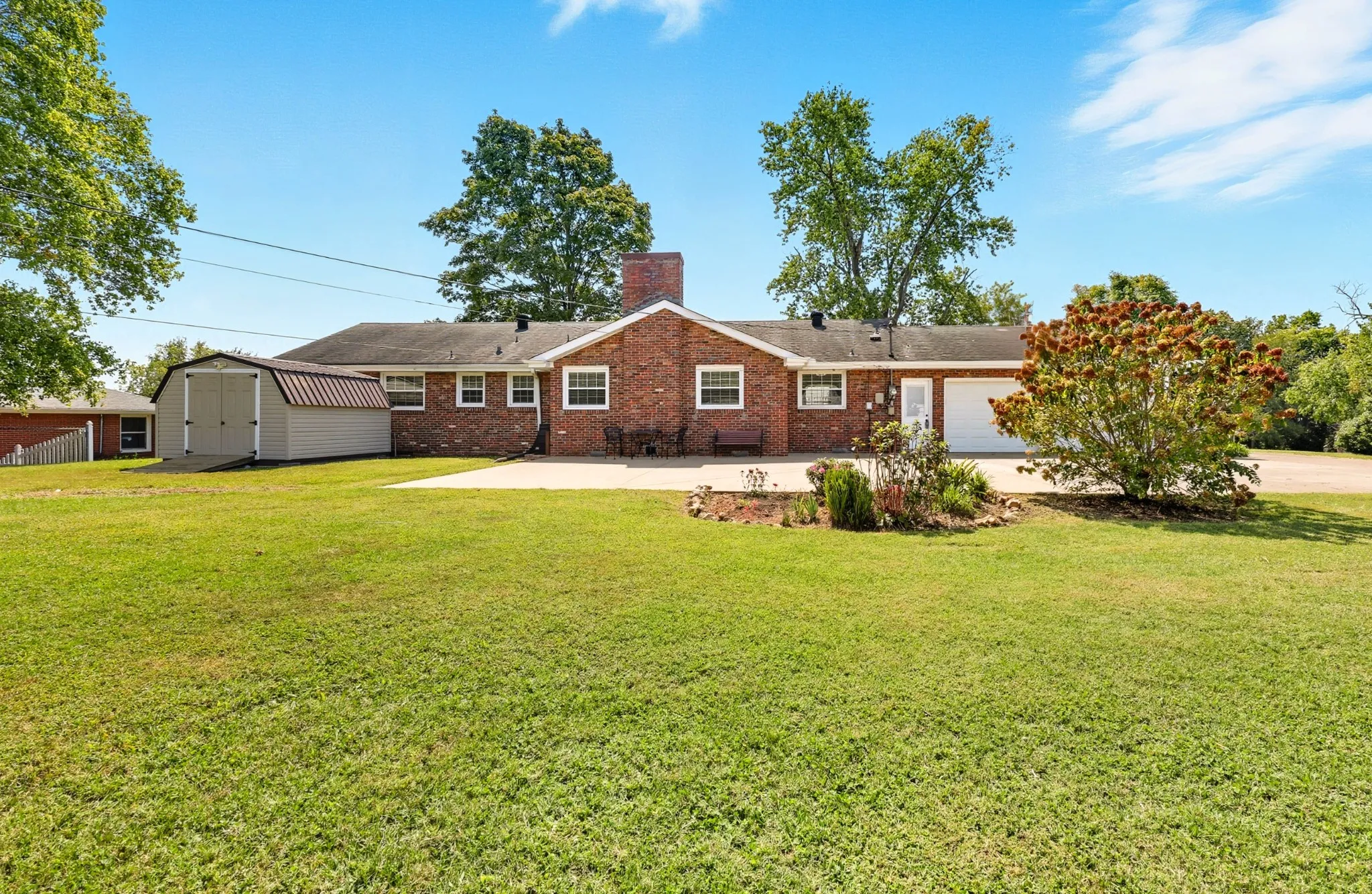 Spacious, well maintained and all-brick ranch with updates in Beacon Hills! The home features all hard wood and tile floors, bright kitchen, impressive brick ventless gas fireplace with remote, beautifully renovated hall bath, spacious bedrooms, step-in shower in primary suite, formal living and dining space, bricked front porch, vinyl windows, and large rear entry over-sized 2-car garage with insulated doors and extra storage. Level back yard with versatile large concrete patio space, storage shed, garden area, established muscadine grape vines and fig trees. 5 miles from I-24 at exit 11. Less than 2 miles from grocery, restaurants and schools!