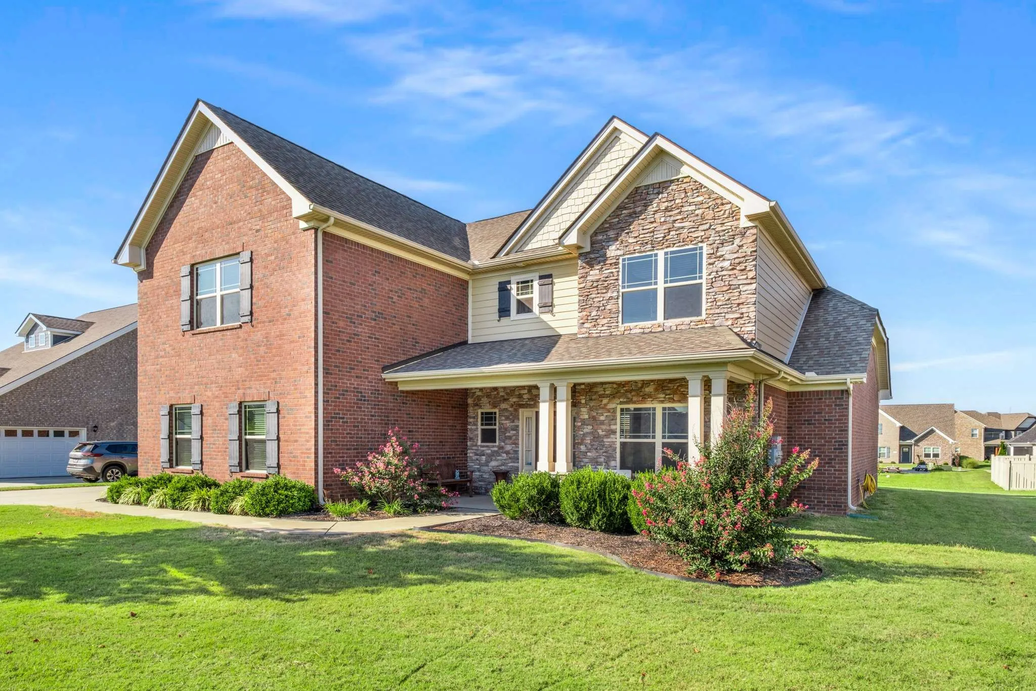 Welcome to this beautiful all-brick two-story home in the desirable Liberty Valley neighborhood in Murfreesboro! Featuring an open, inviting floor plan with elegant and durable laminate flooring throughout the main living areas, along with sleek stainless-steel appliances and granite countertops in the spacious kitchen, you will love entertaining here. The living room, anchored by a stone fireplace that is sure to impress, will be a cozy place to make memories with family and friends. With 4 bedrooms, 3.5 baths, a spacious bonus room, and a formal dining room currently used as a library, this house offers the potential for a home office, craft room, or flex space. Enjoy relaxing on the covered front porch, grilling on the back patio, or taking advantage of the community pool in this friendly neighborhood. The home has been well-maintained with yearly chimney sweeps, HVAC service, and pest control, providing peace of mind to the next owner. Located in the highly sought-after Walter Hill and Siegel School zones, this property also offers unmatched convenience – just minutes to I-840, The Avenue, multiple Greenway trailheads, and Siegel Soccer fields. With its prime location, thoughtful updates, and inviting spaces, this home is the perfect blend of style, comfort, and convenience. Schedule your private showing today!