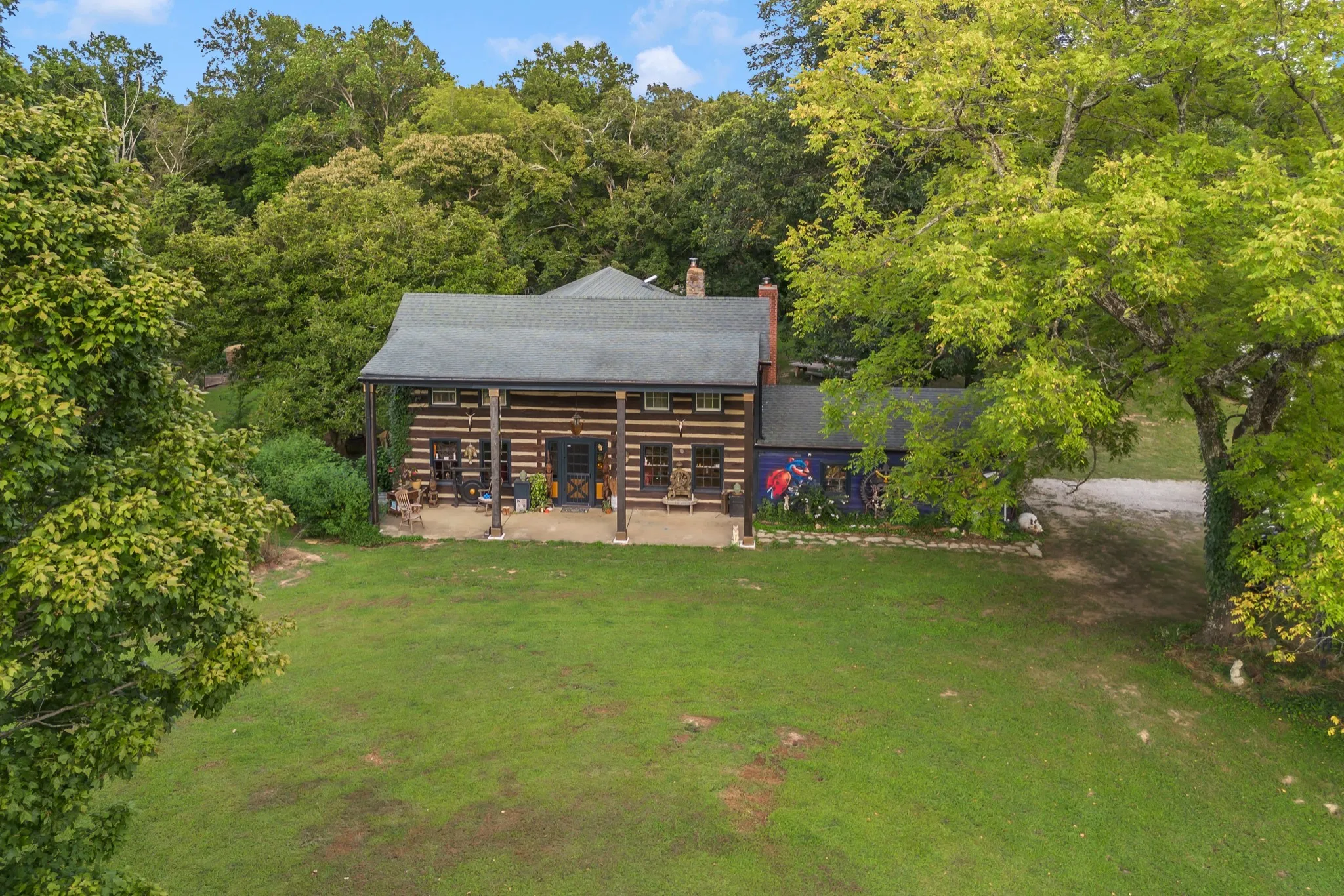 RARE opportunity to own a Historic Williamson County Homestead & Equestrian Estate on 46+ acres—just 25 minutes to downtown Nashville and 12 minutes to Bellevue via I-40. This multi-era log cabin is truly one-of-a-kind: the original front portion dates to 1797, the main addition from 1898 (hearth inscription), and a 1960s rear additioncompletes the home. In total: 5BR/2BA plus recording studio, with recent upgrades including a new water heater, updated electrical, septic, and pipework.\n