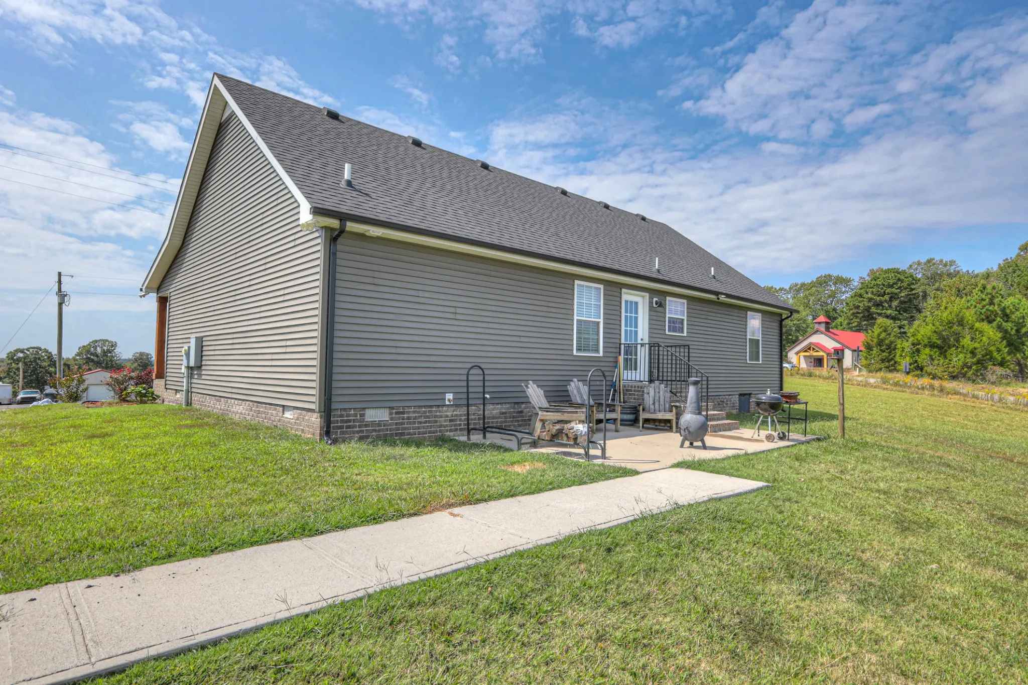 Out back, enjoy the peace of the countryside from the concrete patio, complete with a sidewalk connection to the driveway. The flat, level acre gives you plenty of room to garden, play, or simply relax while soaking up the pretty views.