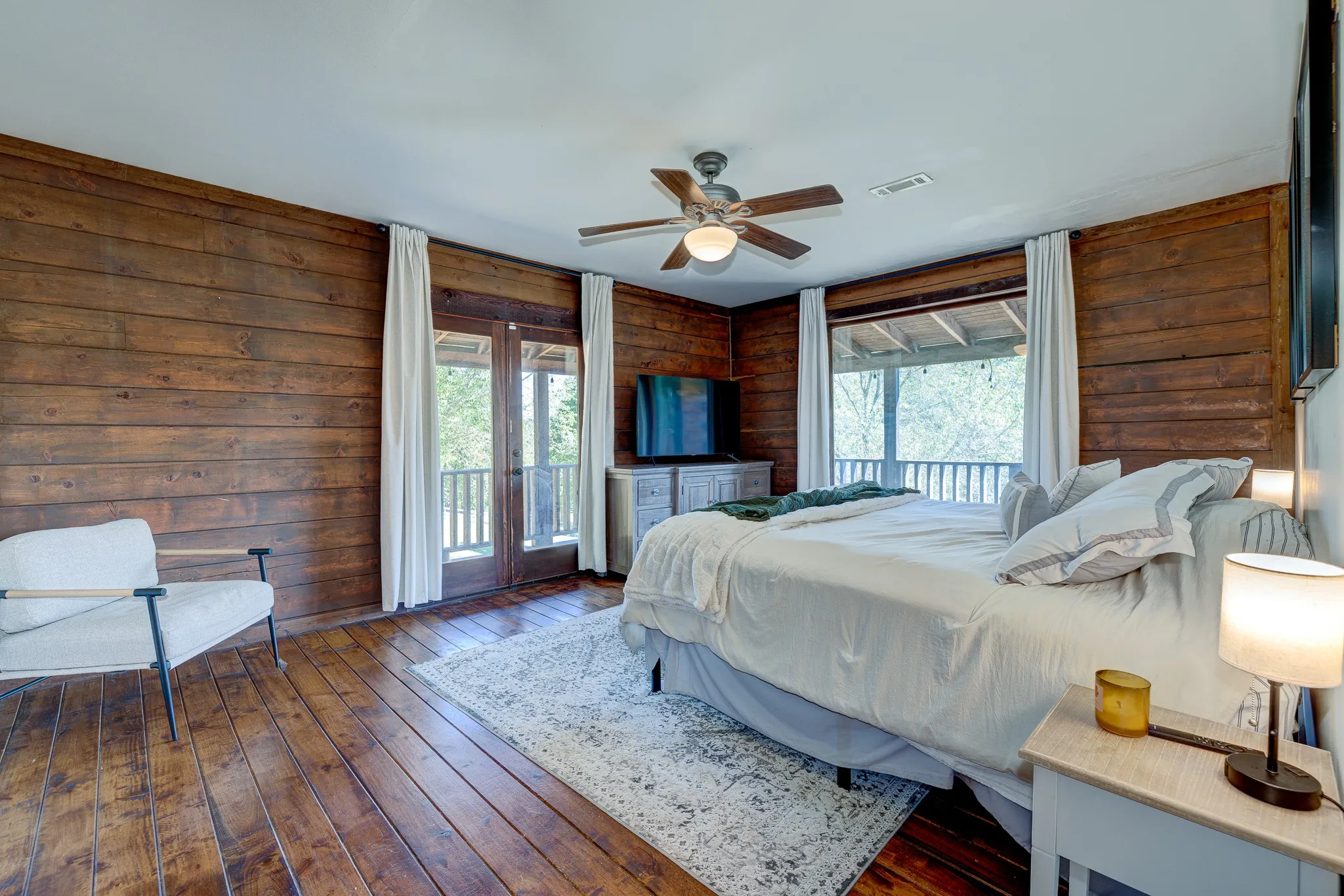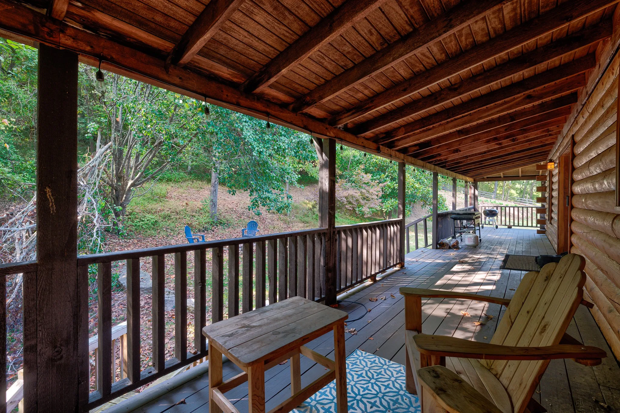 2,000sf of unfinished space perfect for expansion, no HOA, five peaceful acres, and big-sky views—yes, please! Welcome to 1723 Warren Hollow Rd, a warm, log-built retreat wrapped in covered porches on all four sides, plus a center deck made for sunrise coffee and sunset unwinds. Step inside to a vaulted Great Room with eight sun-splashed windows and that classic cabin glow. The main level keeps life easy with a true primary suite and a flexible second room—perfect as a bedroom, office, or cozy den. (Septic is approved for 4 bedrooms.)