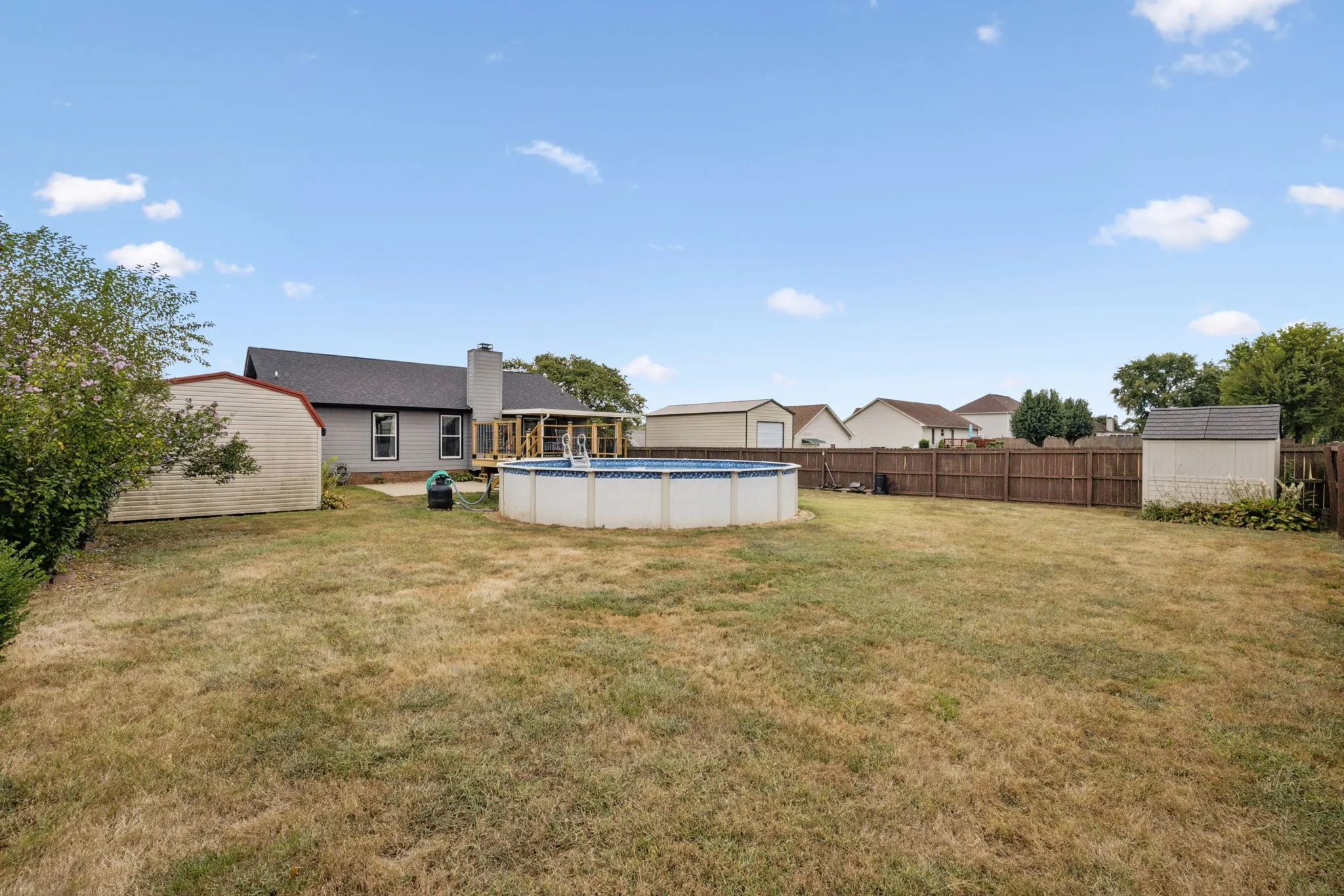 Recent updates, including upgraded vinyl siding and a newer roof, provide peace of mind and enhance curb appeal. Outside, enjoy your own private retreat with a fully fenced backyard that includes an above-ground pool—perfect for outdoor relaxation—and a covered back deck that’s ideal for morning coffee, quiet reading time, or entertaining guests rain or shine. Two exterior outbuildings offer additional flexibility for storage, hobbies, or creative workspaces, giving you room to personalize your surroundings.