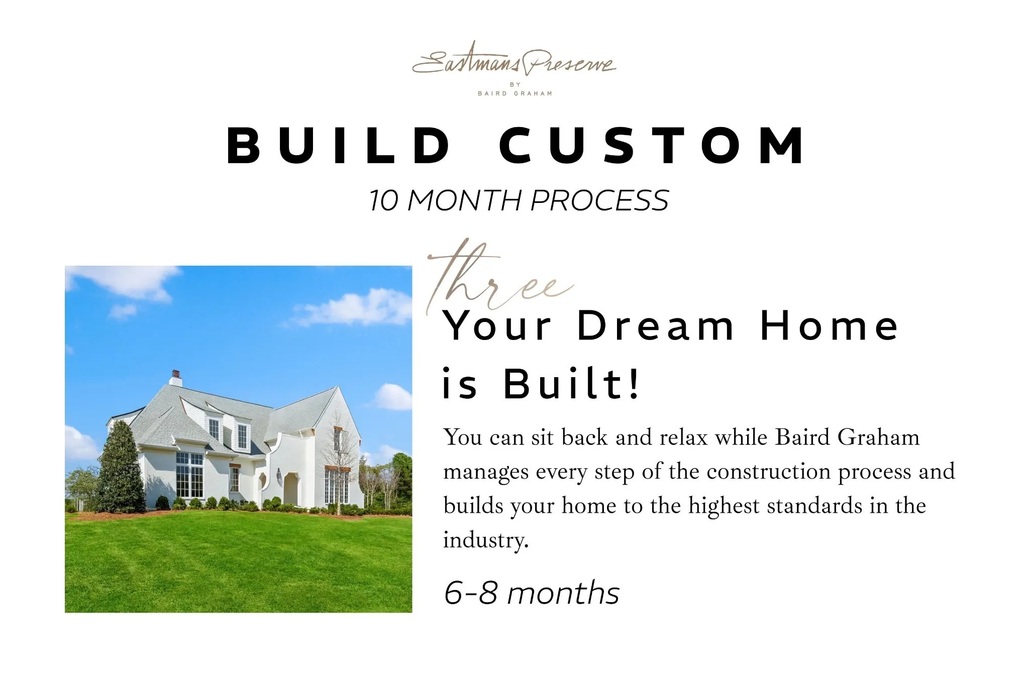 FOR COMPS PURPOSES ONLY. Custom home. Build your Fully Custom home in Brentwood’s most prestigious new community, Eastman’s Preserve. Built exclusively by the highly regarded Baird Graham. Construction is completed 6-8 months after build permit is issued. Call for details regarding process for plans, selections, and timing.