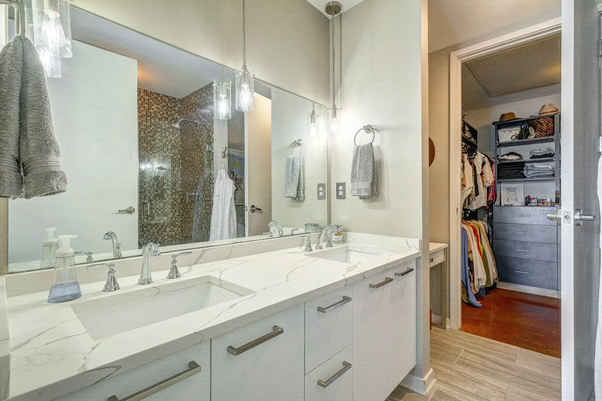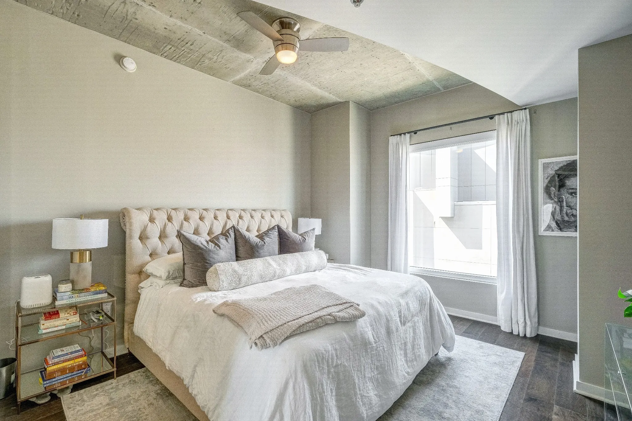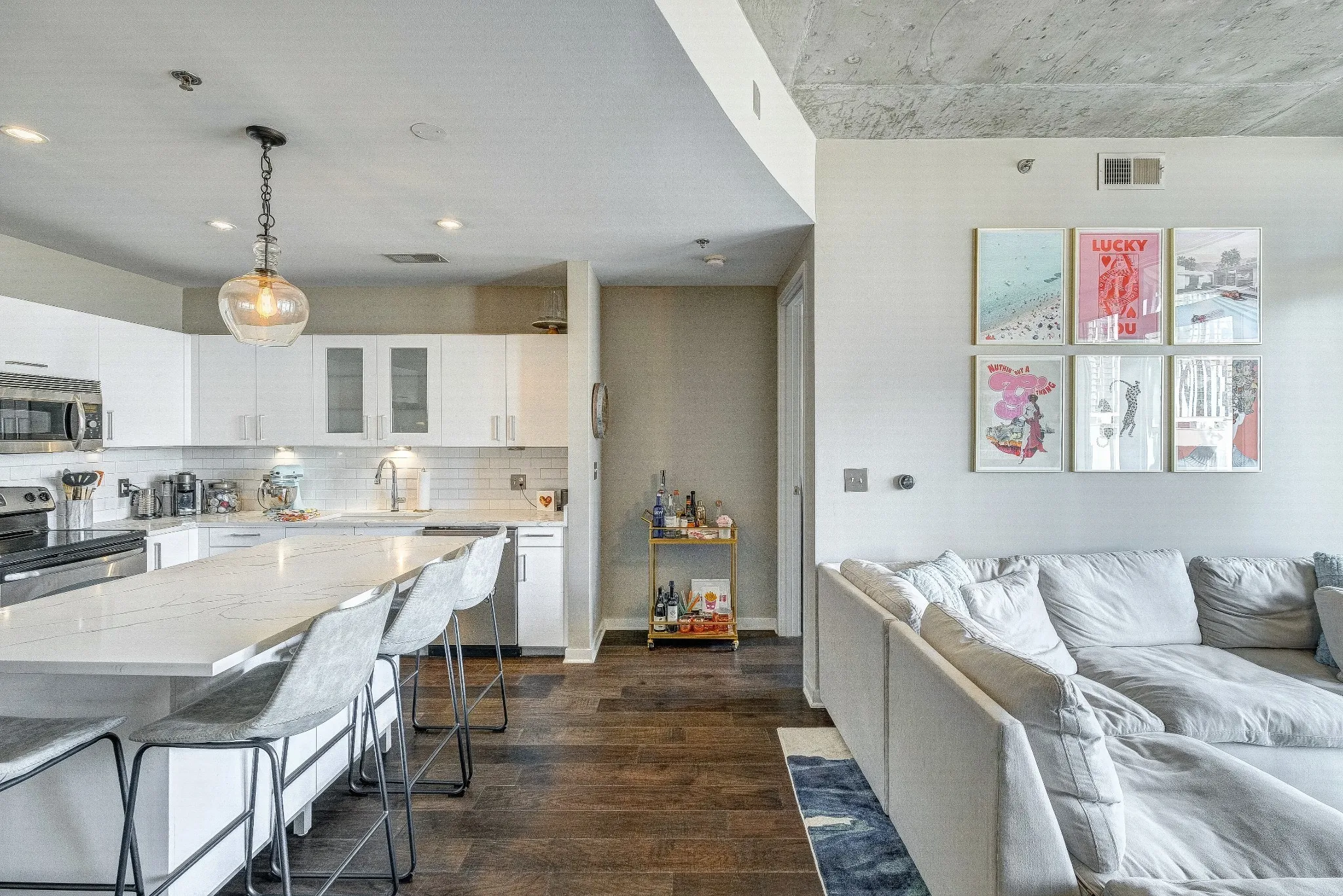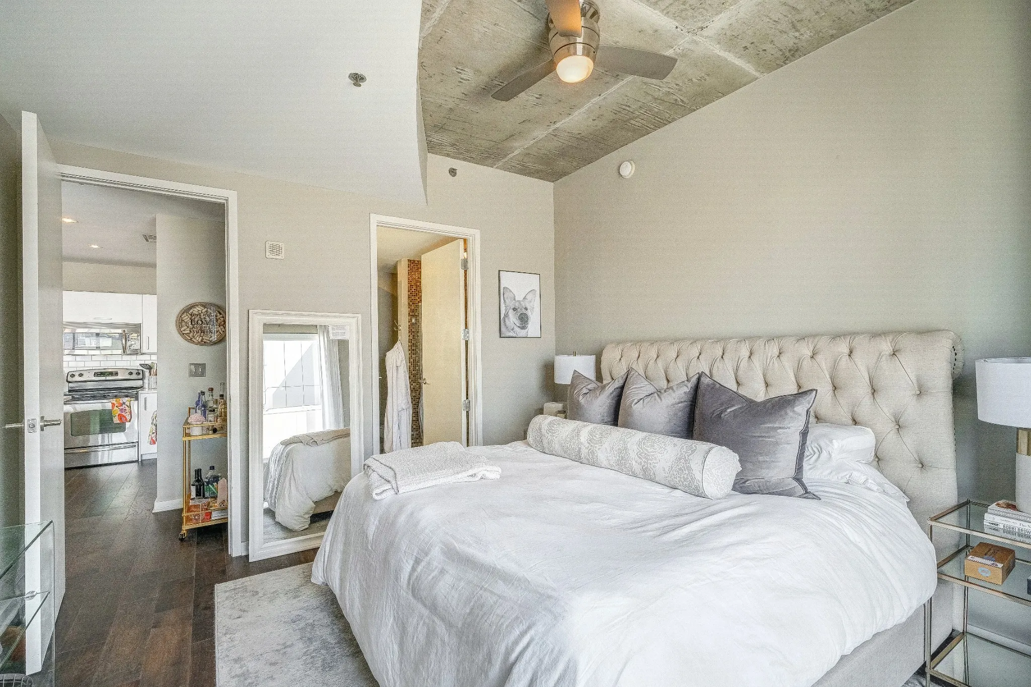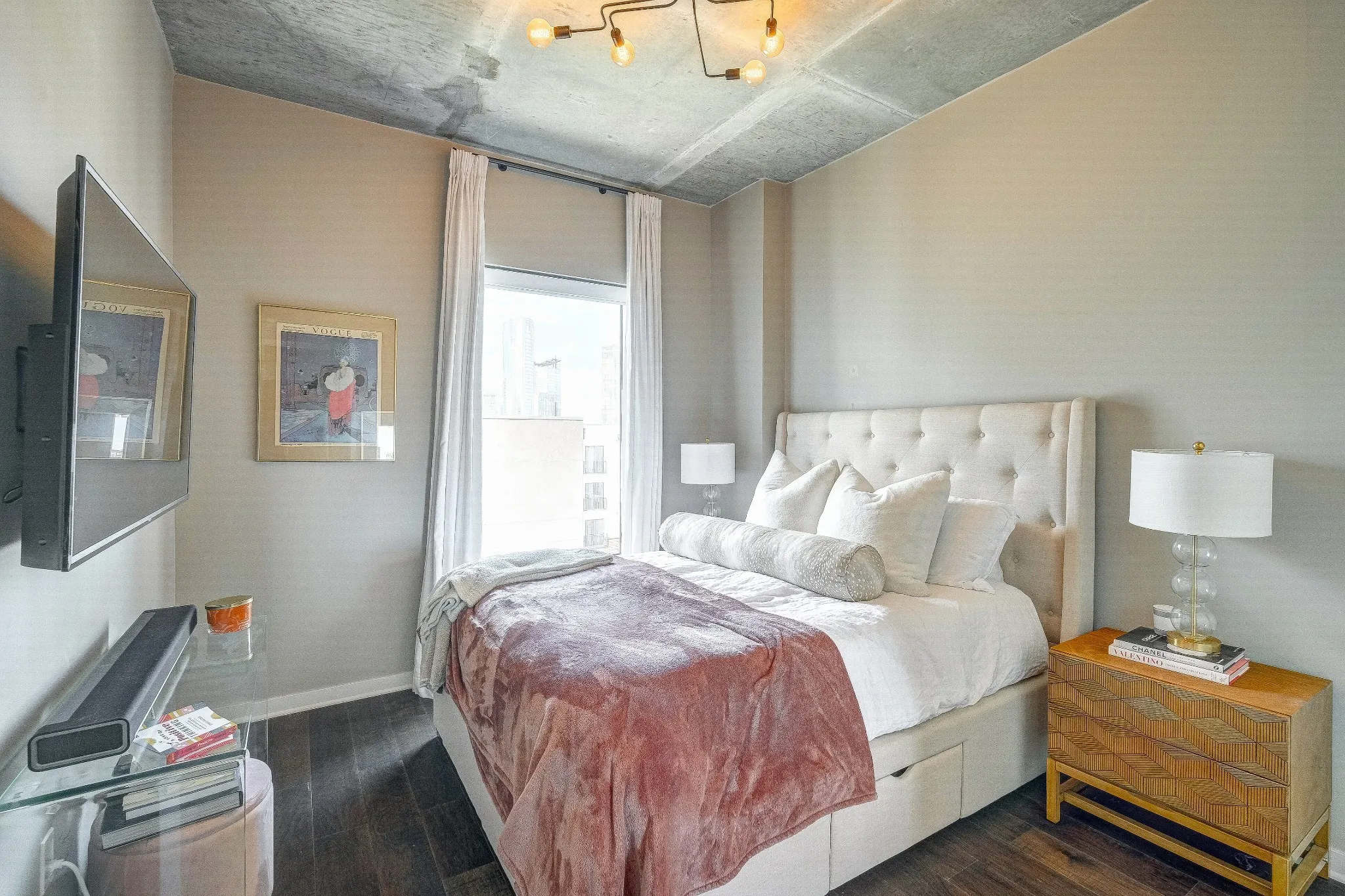 RENOVATED UNIT with DOWNTOWN FACING VIEWS- 2 Assigned Parking Spaces in Bldg Secure Garage, Pet friendly, Google Fiber Wifi incl, 24hr Concierge, 2 Pools& 2 Gyms. Quartz Countertops in Kitchen & Baths, White cabinets, Wood Floors, Custom White Drapes & Remote Blackout Blinds in both Bedrooms, California Closet in Master Bedroom, Updated Dishwasher, New Fridge (not shown in pics), New lighting, LG front load side by side washer/dryer. 2 Story Lounge renovated. (All furnished except one bedroom) Can be Furnished OR Unfurnished. Rental Application link: https://www.avail.co/l/60132193