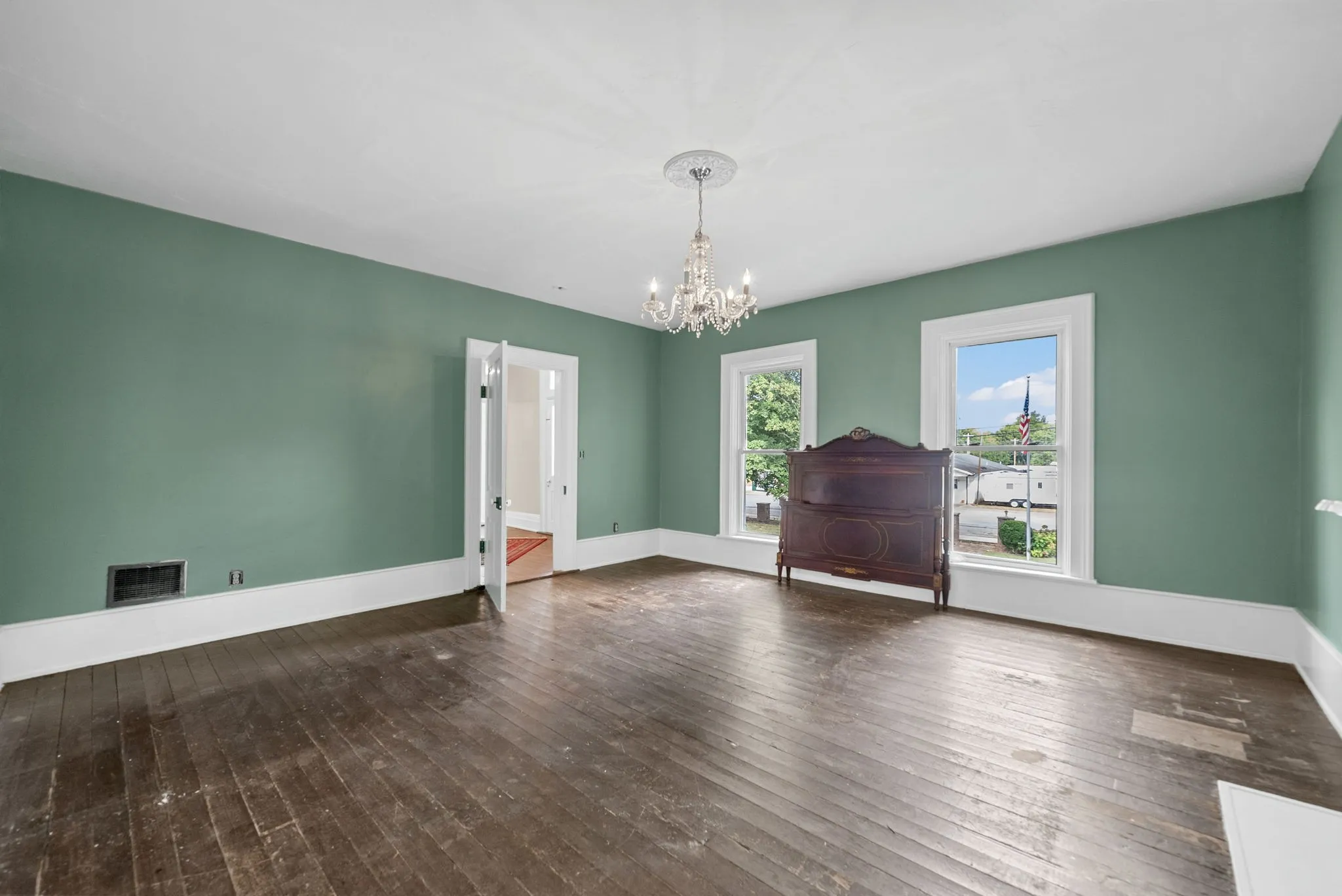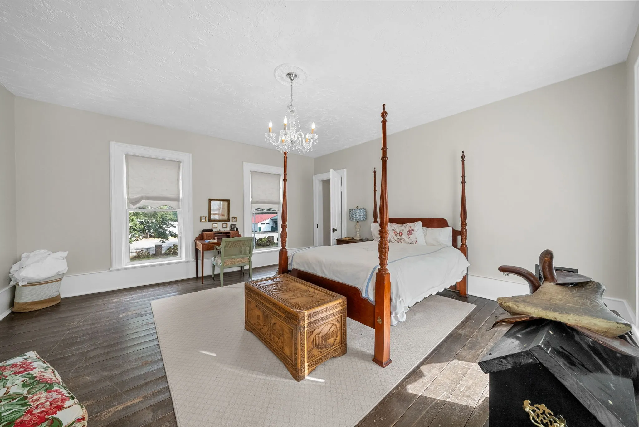Step outside to discover a large, private outdoor space on a sprawling 39,204 square foot corner lot. Enjoy the tranquility from the newly renovated covered side porch or the spacious balcony. The property also features a partial basement and crawl space, ideal for additional storage.\n