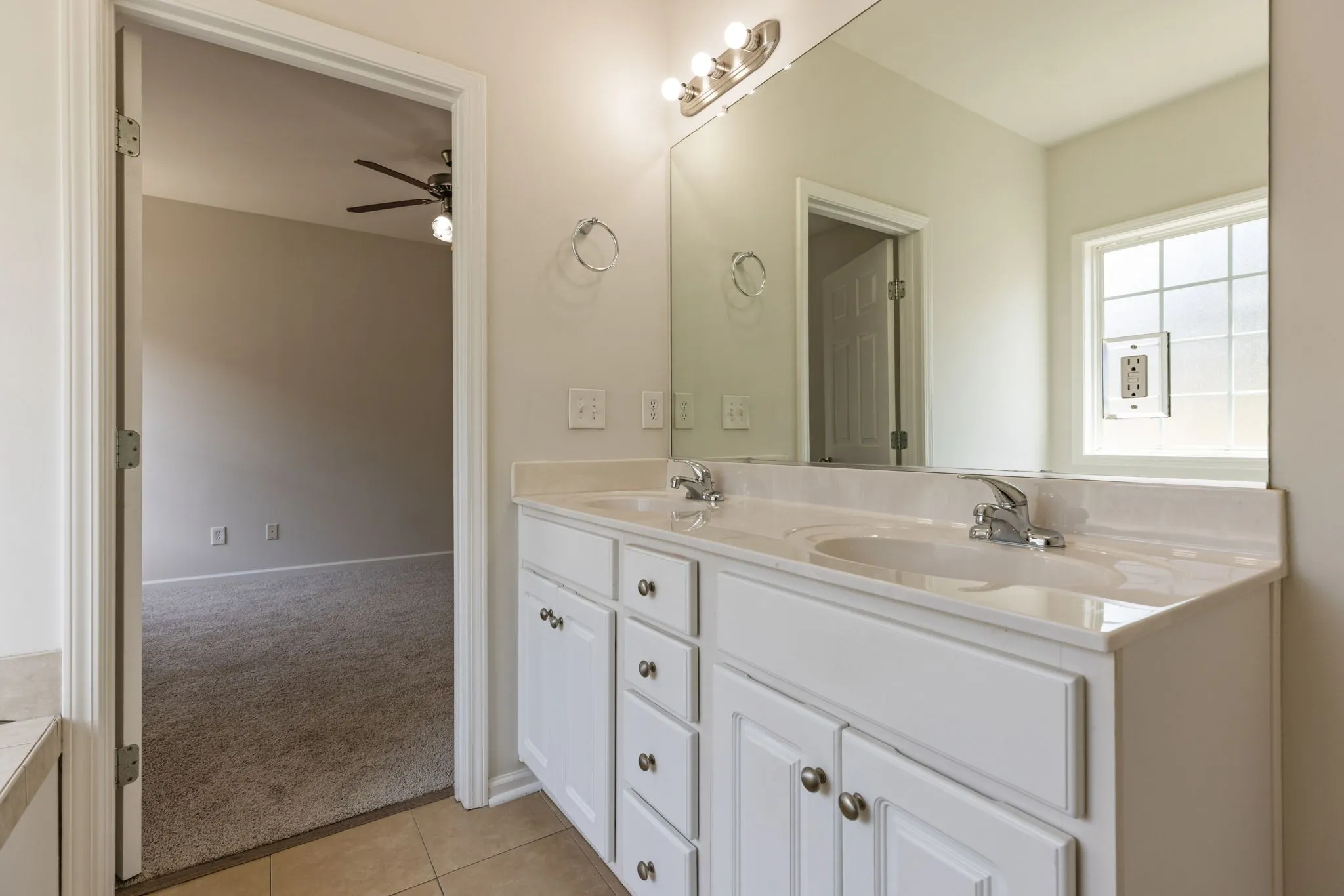 This 3 bedroom, 2 bath house has fresh paint in neutral colors and brand-new floors throughout. The primary suite features a double vanity, separate shower, and relaxing tub.