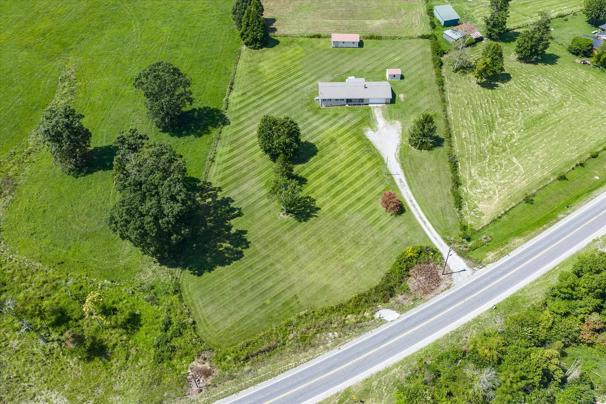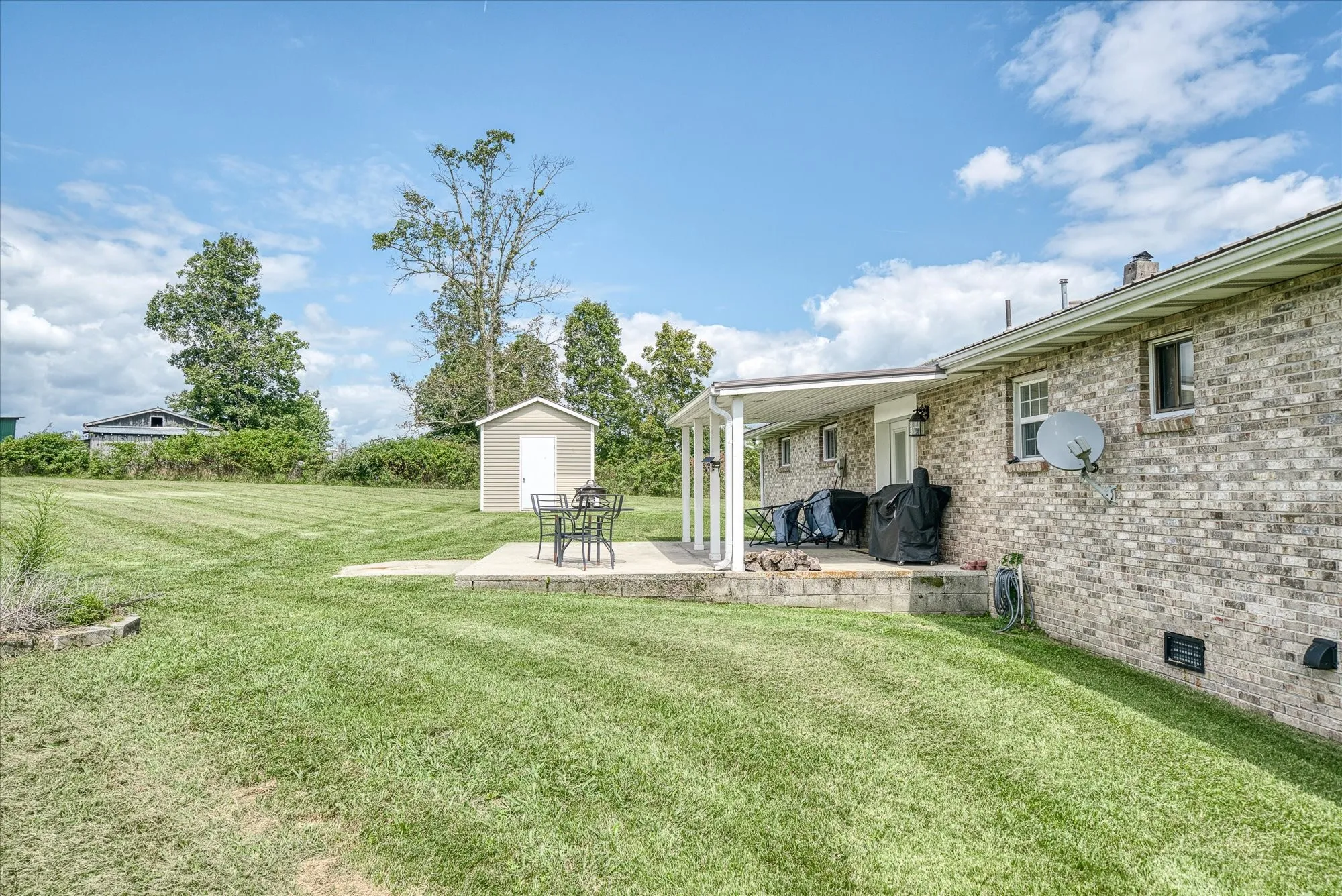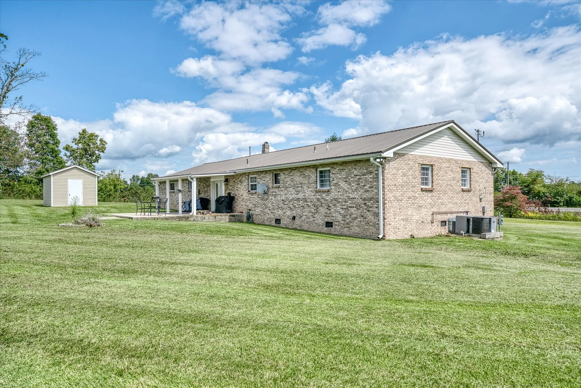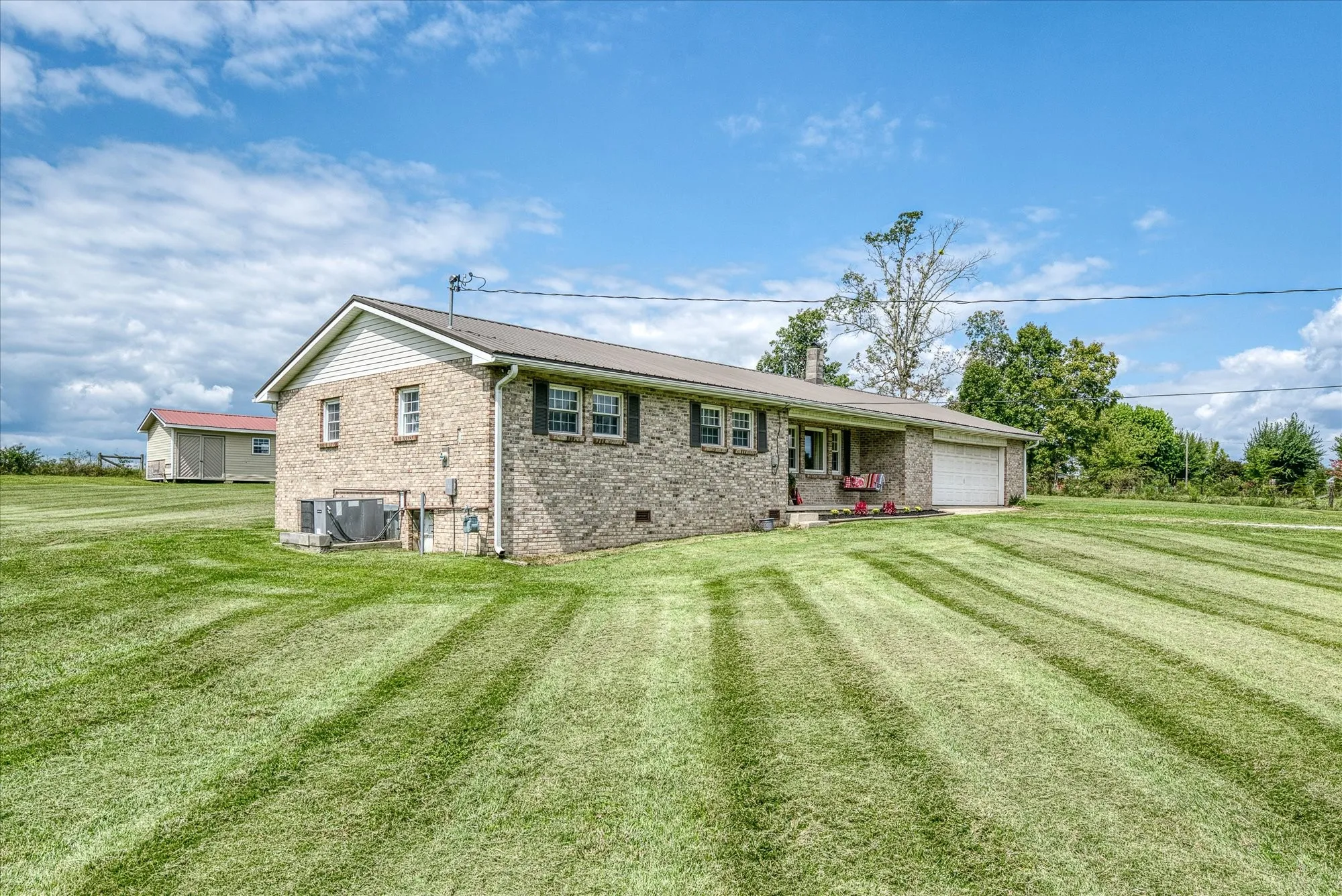 This well-maintained, all-brick ranch-style residence is situated on 2.20 acres of land, offering a spacious living room featuring a gas fireplace and a roomy kitchen equipped with stainless steel appliances approximately two years old, accompanied by a breakfast bar and an eat-in area. The interior of the home boasts lovely laminate wood flooring, three bedrooms and updated bathrooms. The primary bedroom offers a roomy walk-in closet. The exterior showcases an oversized 27 x 28 two-car garage, a covered front porch, and a covered back patio, offering pretty farmland views from both porches plus two large storage buildings, one with electric, provide you with plenty of storage space. This surveyed acreage is unrestricted, allowing you to bring any and all of your animals and provides lots of room for gardening. Ideally situated just 5 minutes from the local elementary school, 10 minutes from the City of Crossville and 35 minutes from the City of Cookeville. Make your appointment soon!