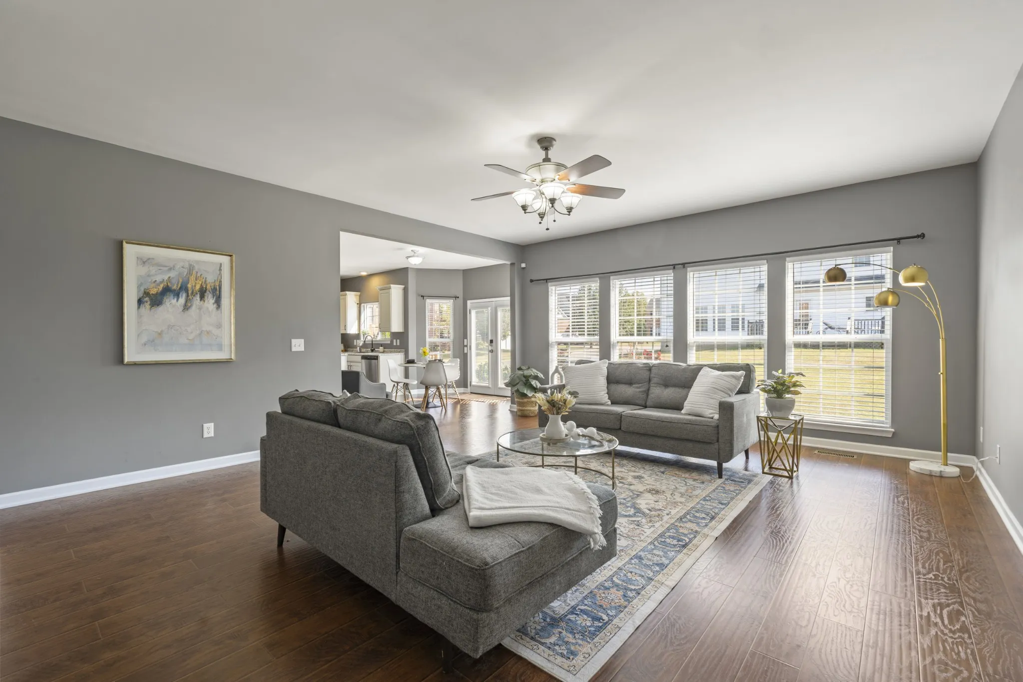 This home is an entertainer's delight! Step inside to a large, light-filled great room perfect for hosting or relaxing evenings at home with family, flowing seamlessly onto a new back deck ideal for outdoor gatherings. The kitchen features custom cabinetry and flows into the open living space, all anchored by rich hardwood floors throughout.\n