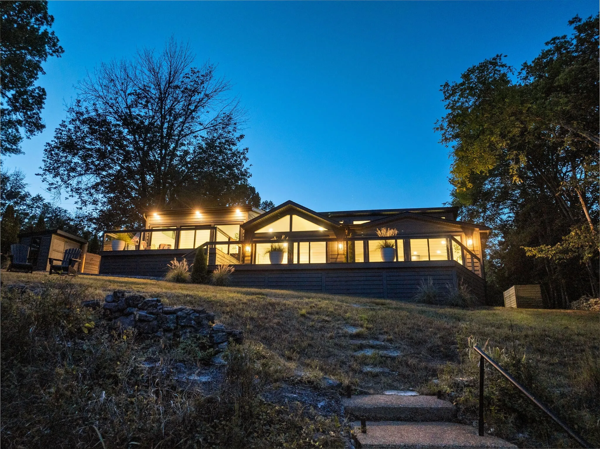 Completely reimagined from top to bottom, this home is more than a renovation — it’s a retreat. Perched above the river with jaw-dropping views of the water and surrounding bluffs, every room is designed to merge seamlessly with nature. Walls of windows flood the home with natural light, while expansive decks — including a private terrace off the primary suite — create the ultimate indoor-outdoor lifestyle. The layout flows effortlessly for entertaining, whether you’re hosting sunset cocktails on the deck or cozy dinners with the river as your backdrop. A private path to the water with a play platform offers private river access, and a local marina with a restaurant, boat slips, and a public launch is just three minutes away. The home is also conveniently located near beautiful Bledsoe Creek State Park for hiking and nature outings, and just minutes from the historic town square with its charming shops and local dining. Peaceful, private, and removed from the hustle, this home is perfect as a full-time residence or a second-home escape. This is riverfront living- elevated, stylish, serene, and designed to impress.