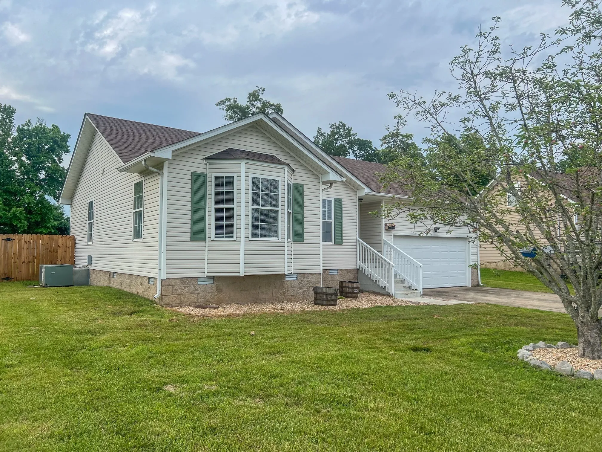 Welcome to this beautifully maintained 3-bedroom, 2-bathroom home offering comfort, space, and convenience. Situated just a short 10-minute drive from I-24, Hopkinsville, and Fort Campbell, this residence is perfectly located for both work and play. Step inside to find a welcoming living room featuring brand new flooring, providing a fresh and modern feel. The open layout flows effortlessly into a well-appointed kitchen and dining area, perfect for everyday living and entertaining. The primary bedroom serves as a private retreat, complete with a spacious en-suite bathroom that includes double vanities and a relaxing jetted tub. Two additional bedrooms and a second full bathroom offer plenty of space for family or guests. Outdoor living is a dream with a covered front porch, a large back deck, and a massive fenced-in backyard—ideal for pets, gatherings, or gardening. A storage shed provides additional space for tools and equipment, while the upgraded fencing ensures privacy and peace of mind. Additional features include a two-car garage for secure parking and extra storage. Don’t miss the opportunity to own this move-in-ready home that combines modern updates with functional outdoor space in a prime location. Schedule your showing today! Seller concessions offered! Residence does NOT require flood insurance and is NOT in a flood zone. Home IS USDA eligible. MOTIVATED SELLER – bring us an offer!