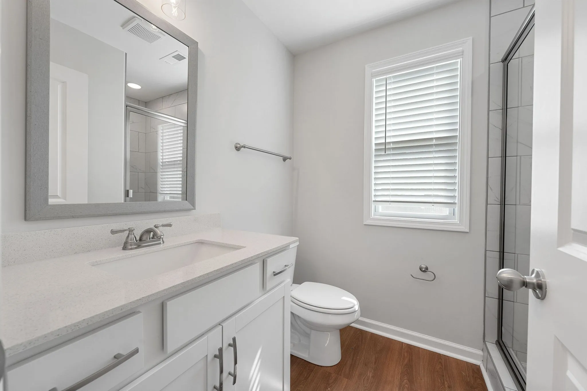 Beautiful new construction home with large open concept on main floor. Covered porch and a rear deck. Both bedrooms on 2nd floor with private baths within the bedroom. Laundry on same floor as bedrooms. Washer dryer combo included in sale. Wood blinds throughout