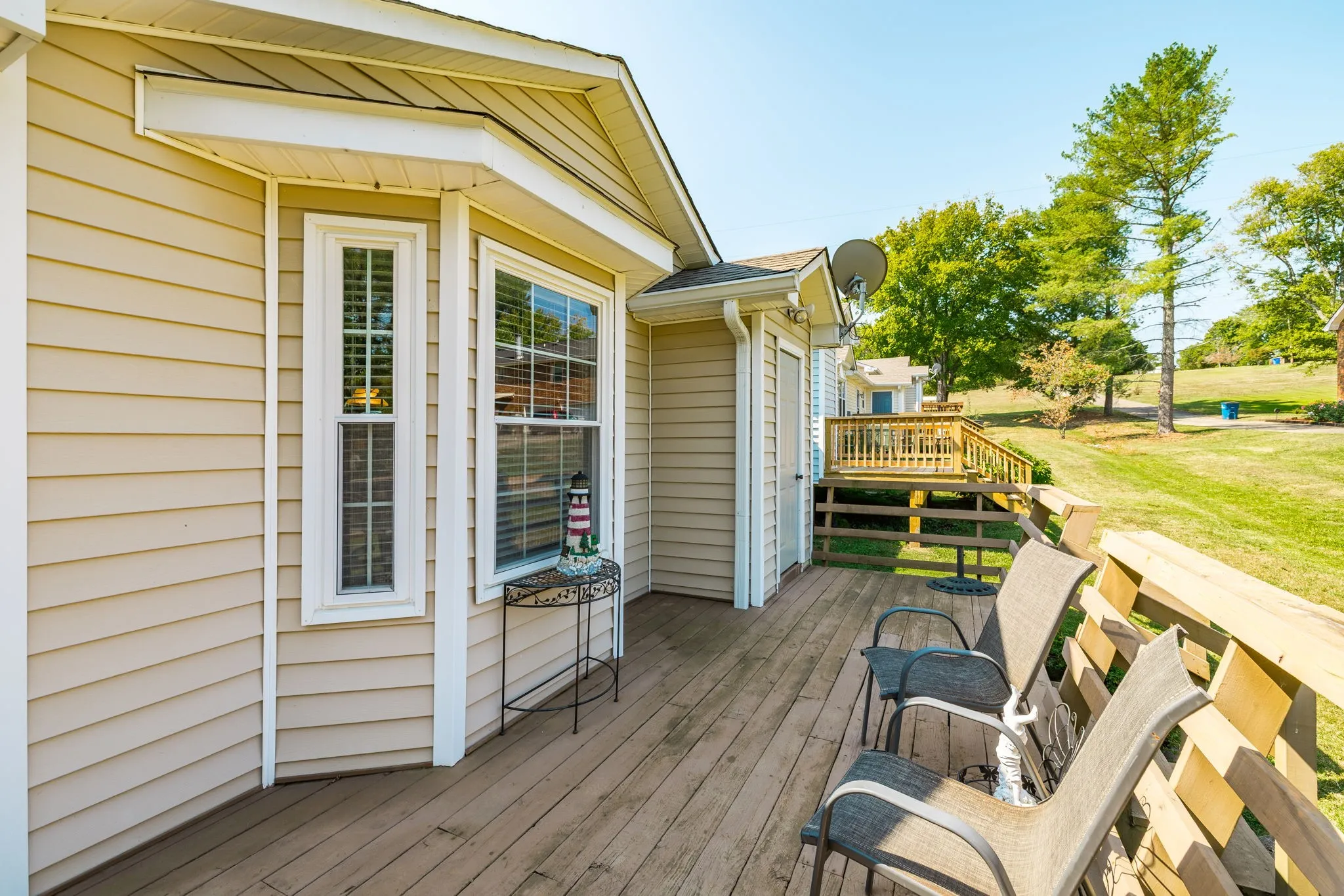 This charming one-level, 3-bedroom, 2-bath condominium is attractively priced and ready for its next owner. The home offers a spacious back deck with a storage room, along with an inviting front porch—perfect for relaxing in a pair of rocking chairs. The kitchen is complete with granite countertops and a cozy eat-in nook, while an additional dining area provides space for a larger table or could easily serve as a home office.