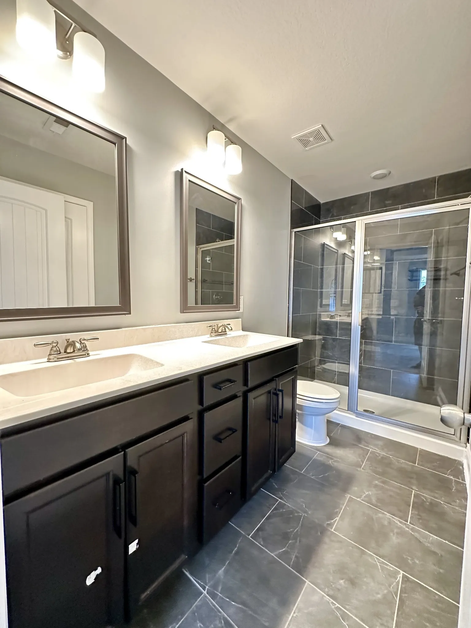 Upstairs, three spacious guest bedrooms share a full bath with a tub/shower combo and generous vanity space. The private primary suite includes a walk-in closet and an upgraded full bathroom with a double vanity.