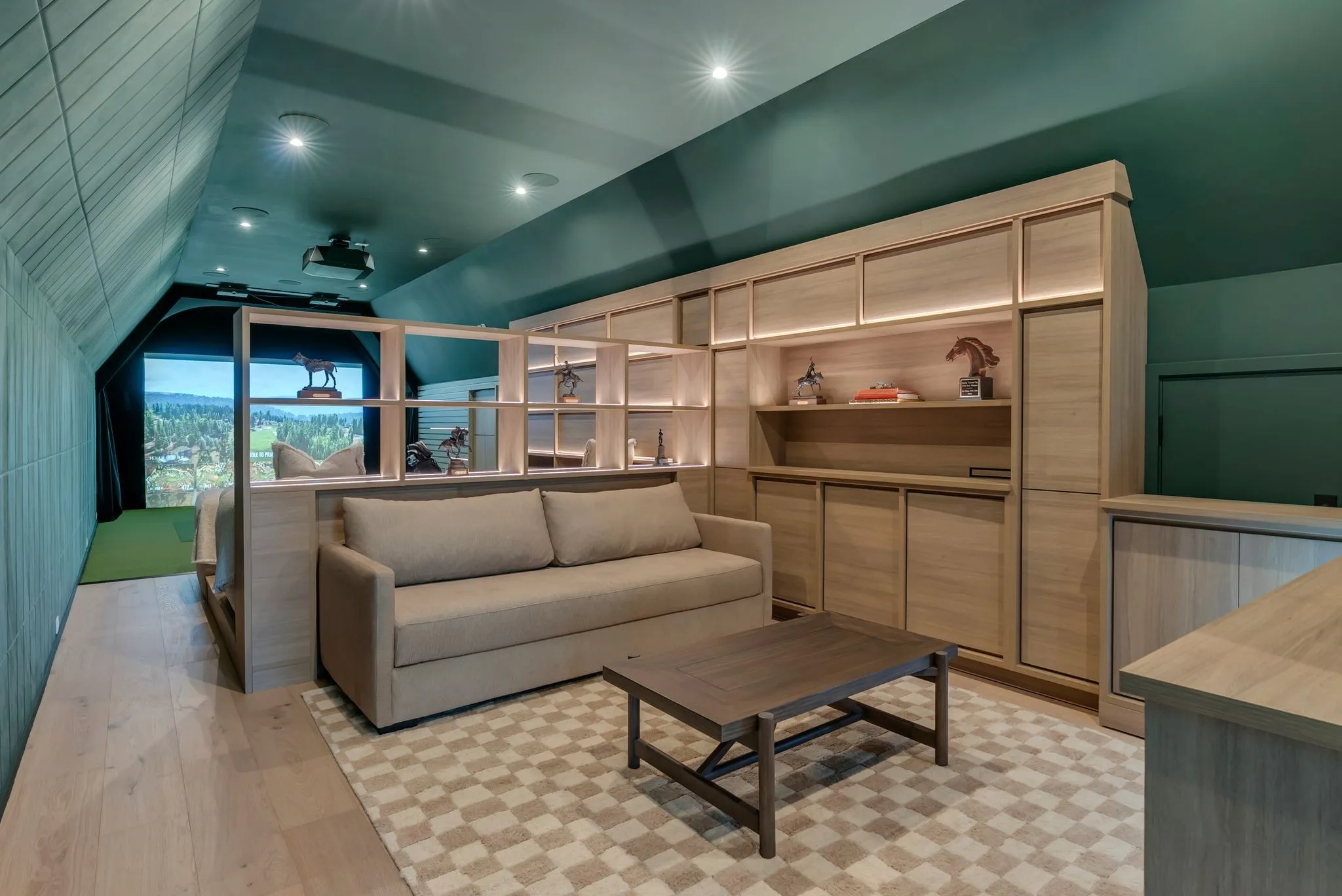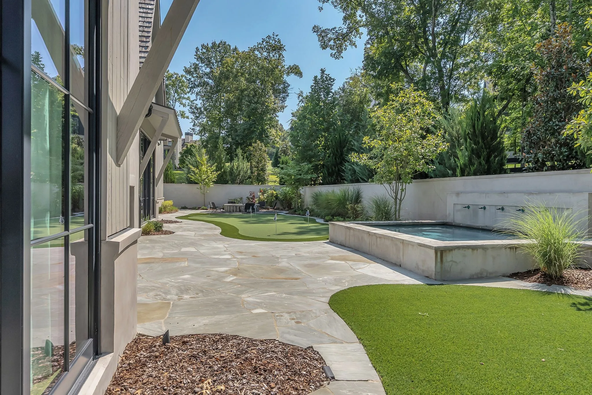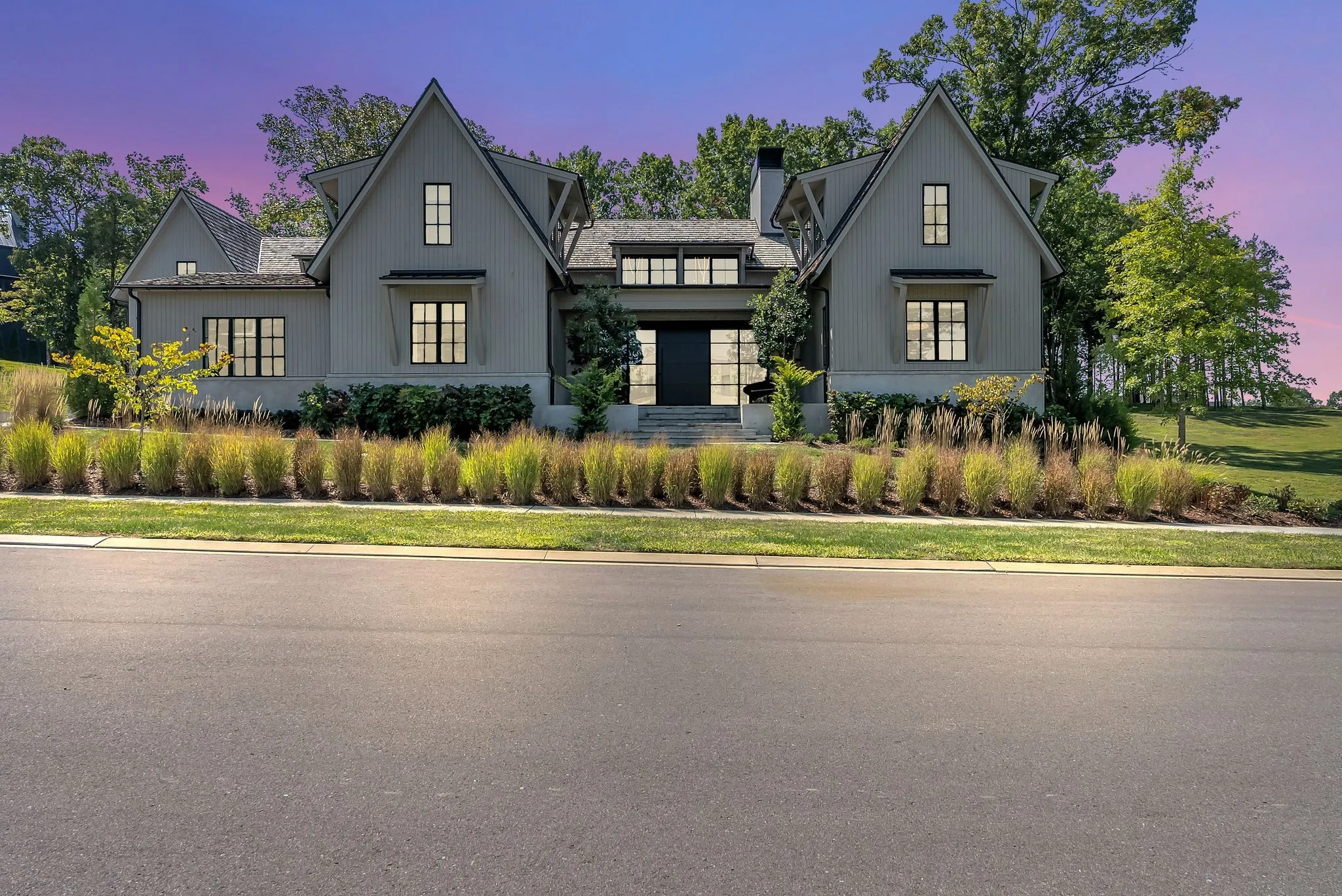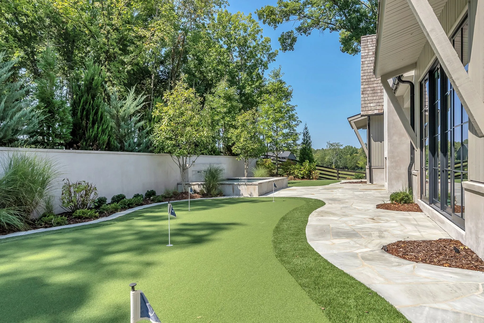 This custom home at Troubadour Golf and Field Club, built by Grove Park in 2023, features six bedrooms and six and a half bathrooms under 7,438-square-foot residence situated on 0.43 acres. Step into expansive luxury with a grand open-concept living, dining, and kitchen area, anchored by dual waterfall countertops and sleek designer finishes. The home offers two private wings for optimal comfort and separation, plus a state-of-the-art golf simulator for year-round play. Outside, enjoy a custom putting green, gather around the firepit, relax in the hot tub, or lounge on the covered back porch—all set within a beautifully landscaped backyard built for entertaining and unwinding.