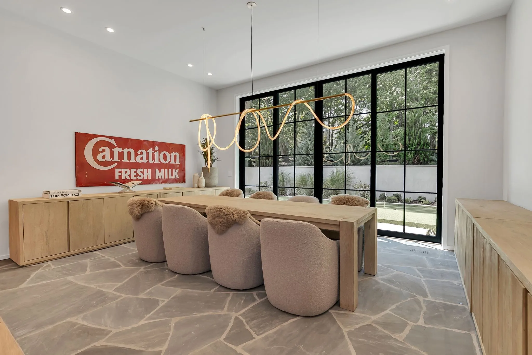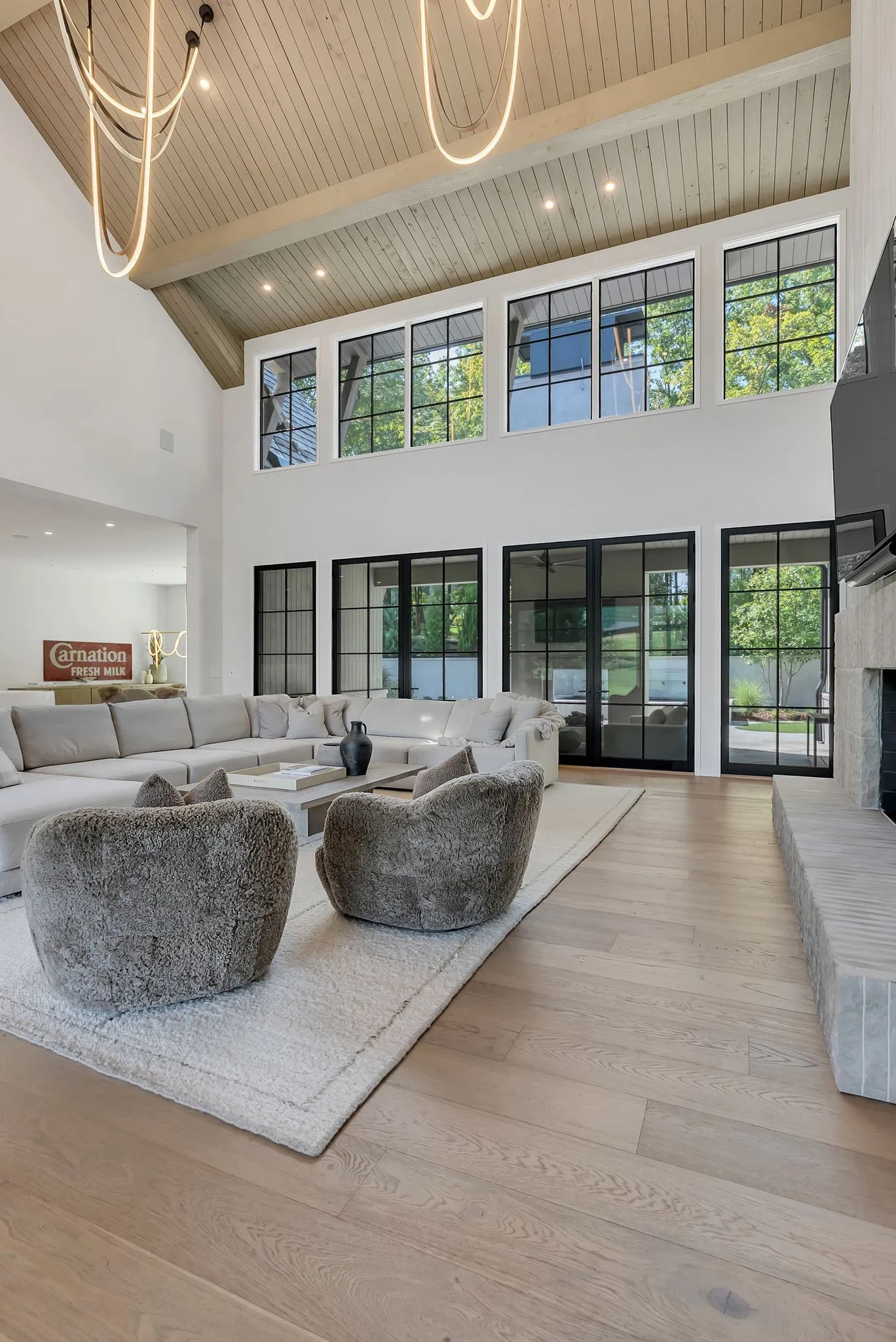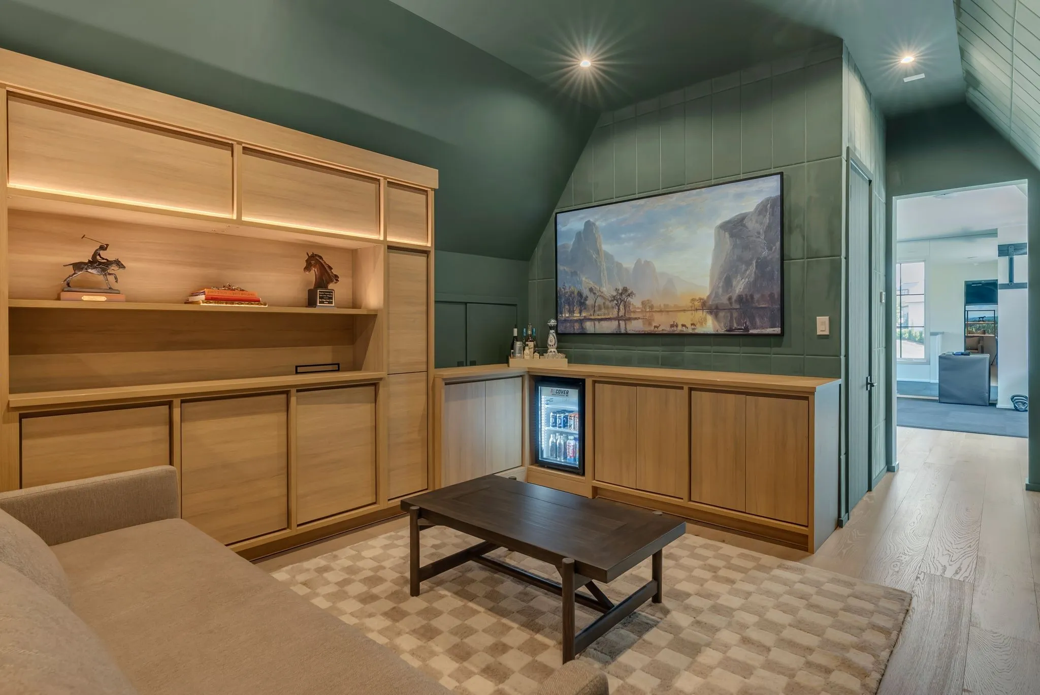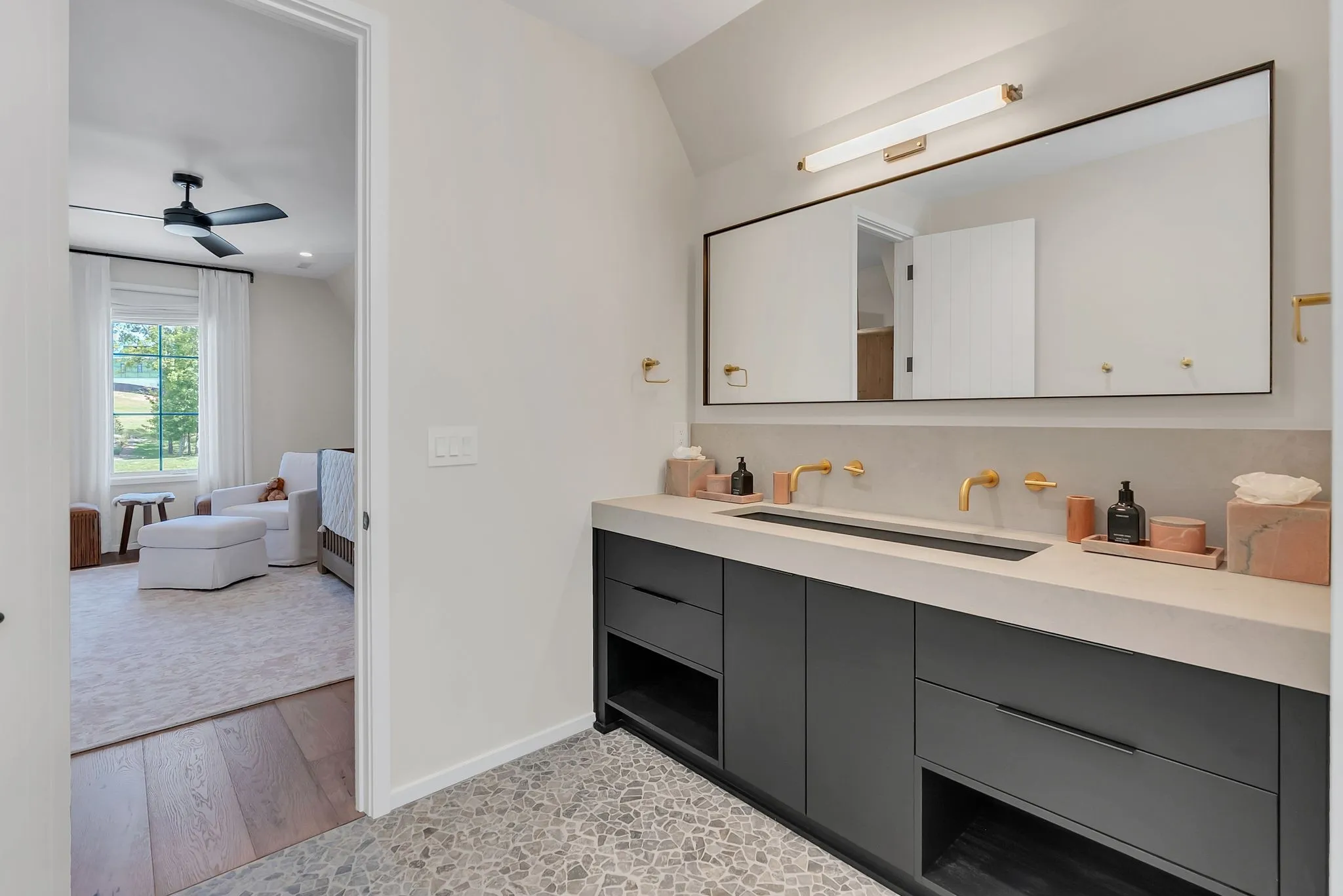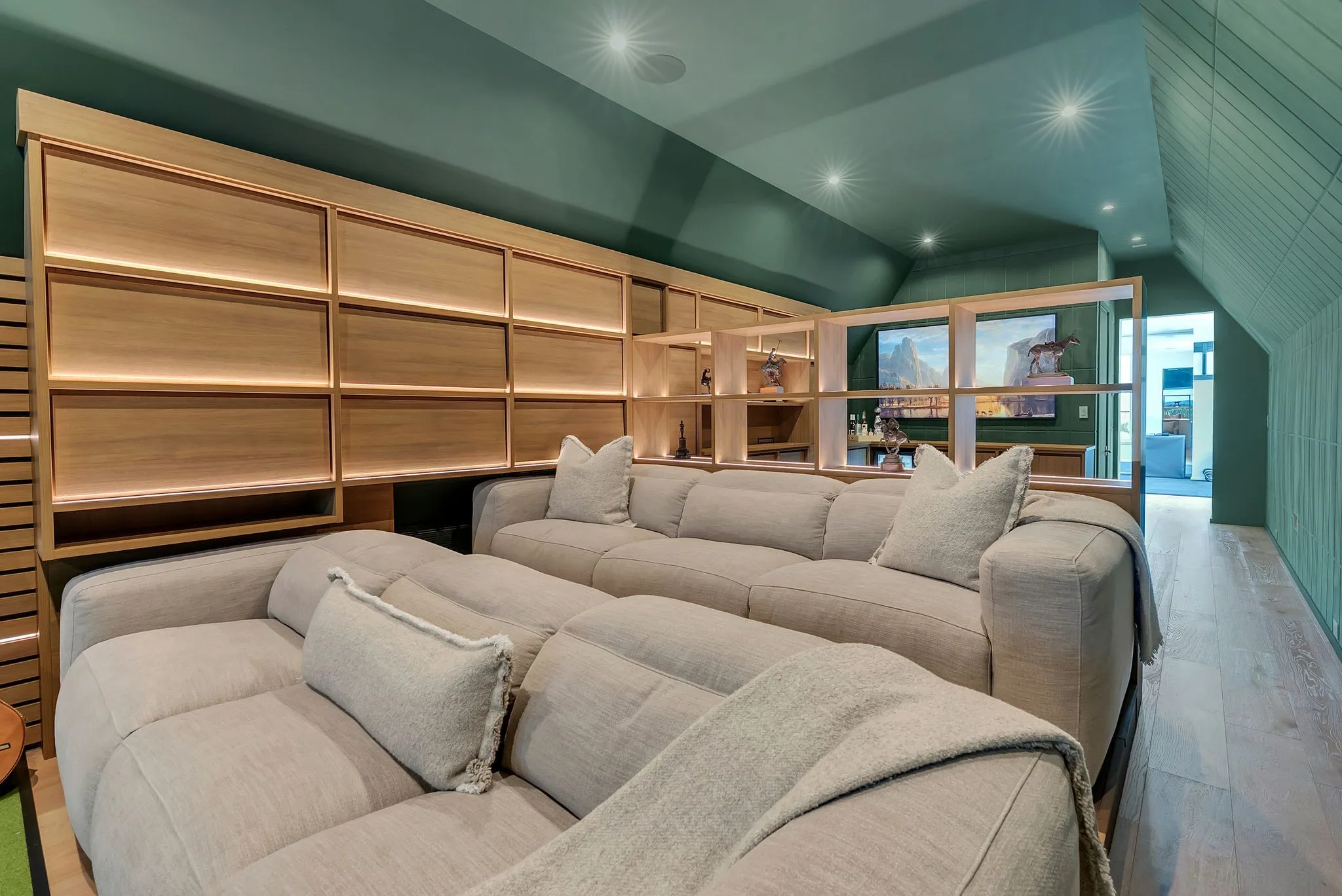 This custom home at Troubadour Golf and Field Club, built by Grove Park in 2023, features six bedrooms and six and a half bathrooms under 7,438-square-foot residence situated on 0.43 acres. Step into expansive luxury with a grand open-concept living, dining, and kitchen area, anchored by dual waterfall countertops and sleek designer finishes. The home offers two private wings for optimal comfort and separation, plus a state-of-the-art golf simulator for year-round play. Outside, enjoy a custom putting green, gather around the firepit, relax in the hot tub, or lounge on the covered back porch—all set within a beautifully landscaped backyard built for entertaining and unwinding.