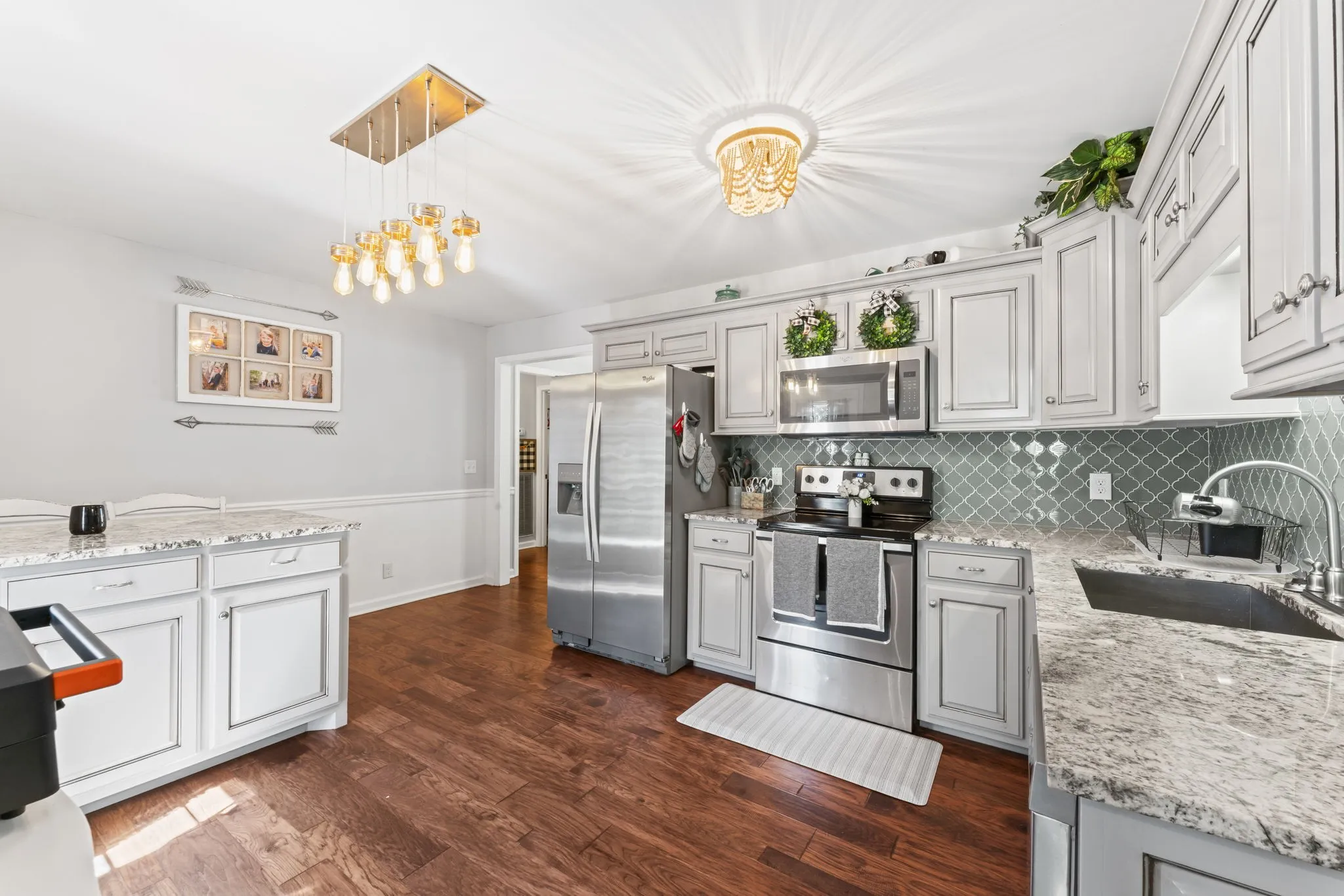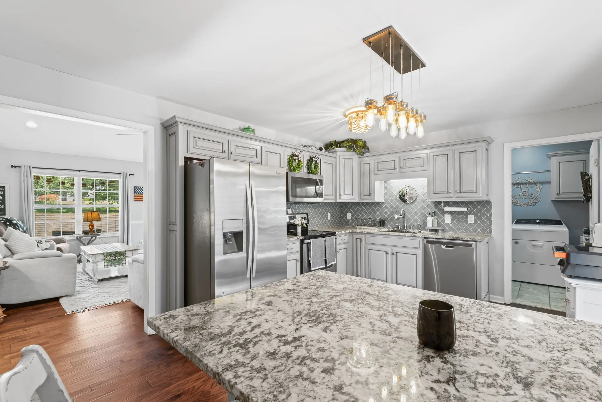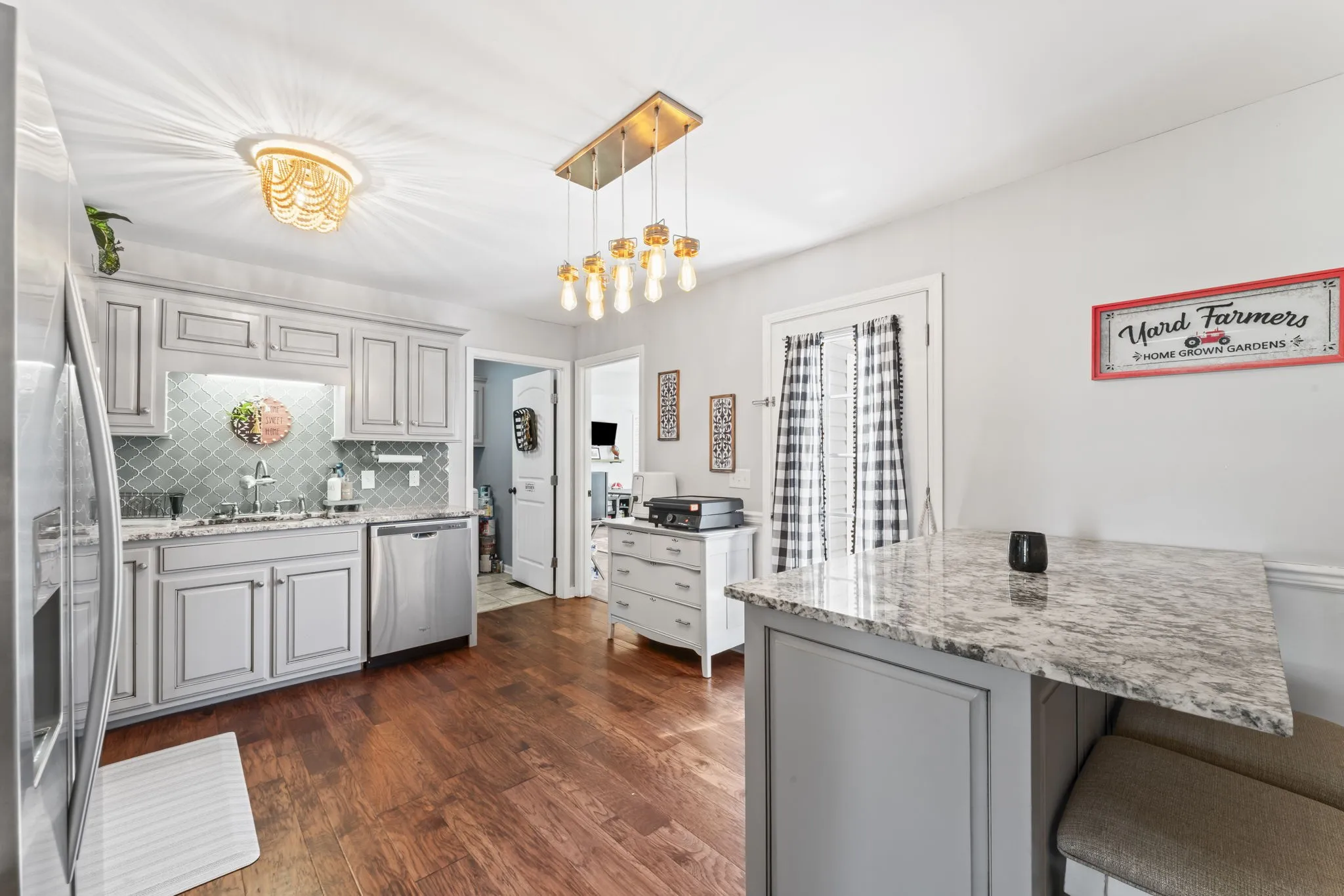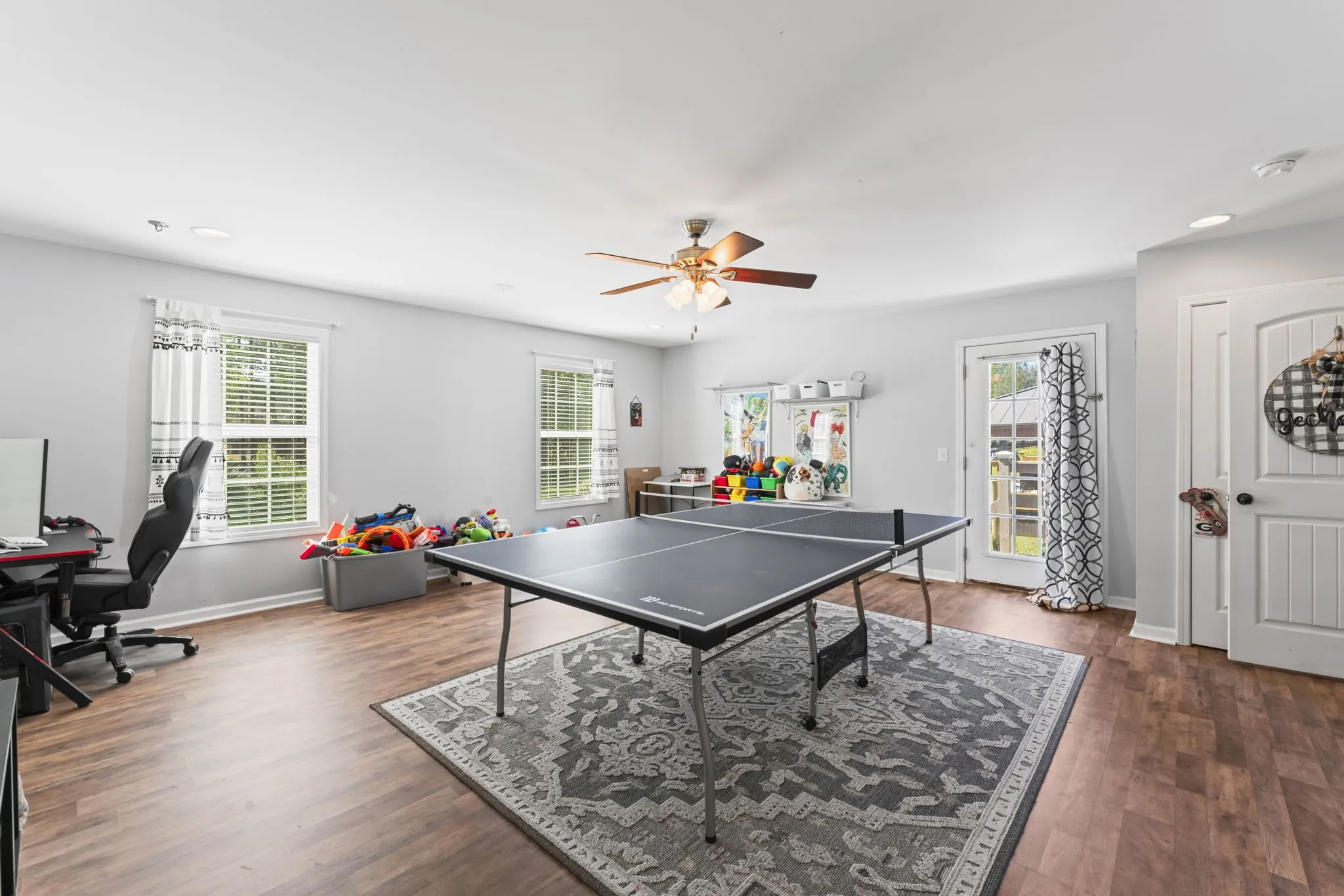 Preferred Lender will give up to 1% of the loan amount towards closing costs! Enjoy the best of rural living in this spacious home featuring engineered hardwood floors throughout the main living areas and bedrooms, with tile accents in the bathrooms and pantry/laundry room combo. The heart of the home includes a massive rec room, perfect for entertaining or relaxing. The large master suite offers a retreat of its own, with a bathroom boasting double vanities, a custom tile shower, and a separate soaking tub. Step outside to your private backyard oasis, complete with a gazebo, high quality deck leading to a pool, and fenced space ideal for pets or gardening. A 24×24 detached garage with 220v electric provides ample room for storage, hobbies, or a workshop. Set in a peaceful rural subdivision, this property blends comfort, space, and country charm, just waiting for you to call it home! Refrigerator and mini barn to remain with property. Hot tub does not remain. Septic was pumped within the last year.