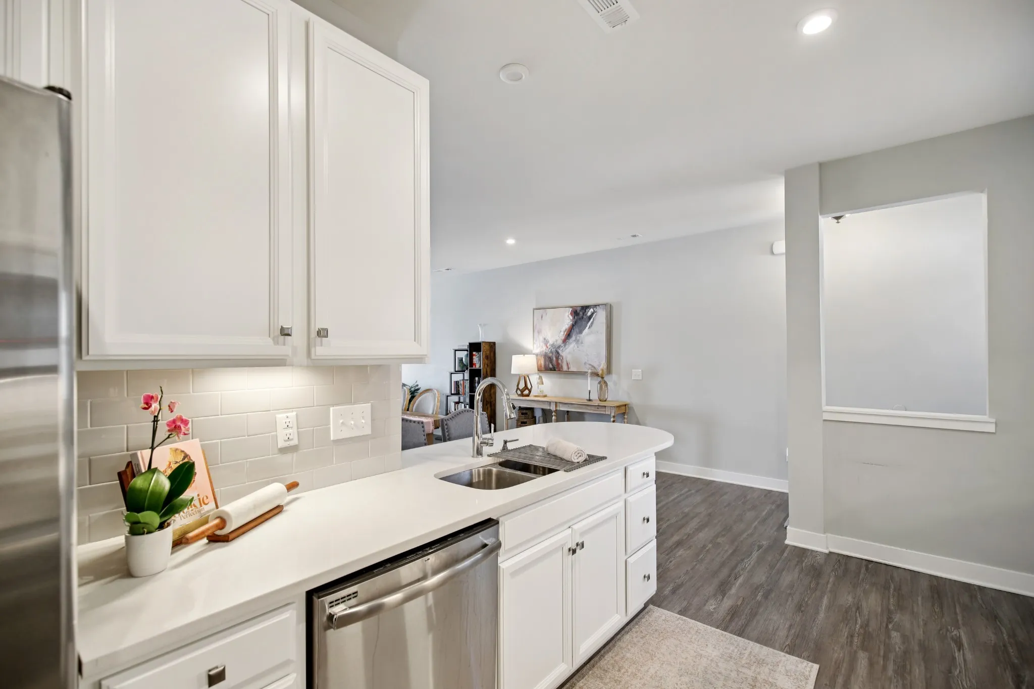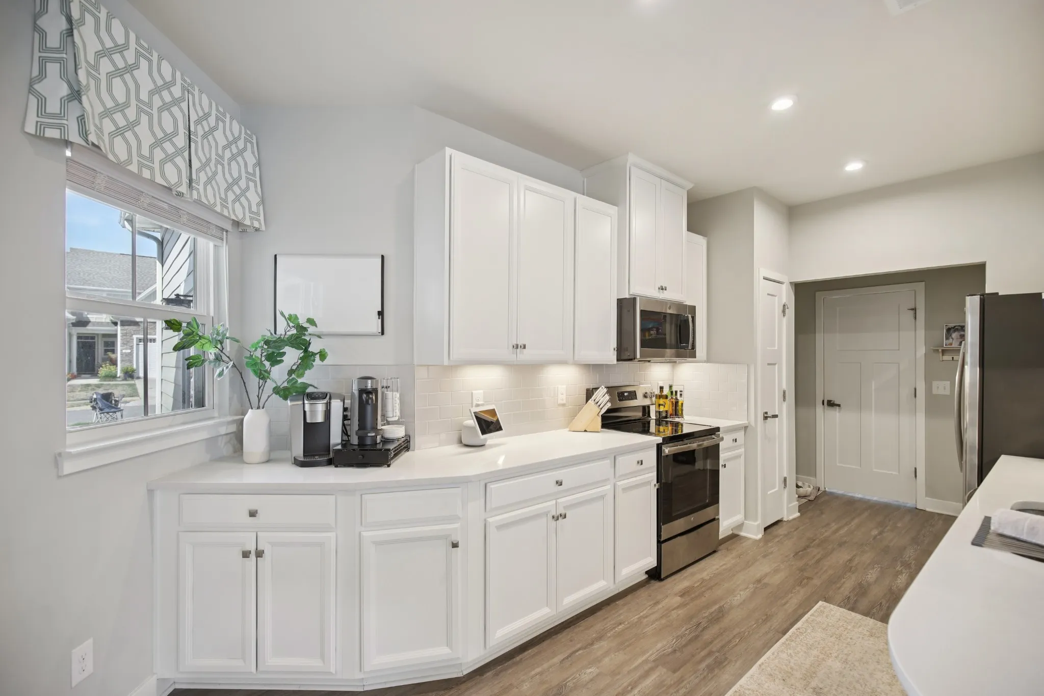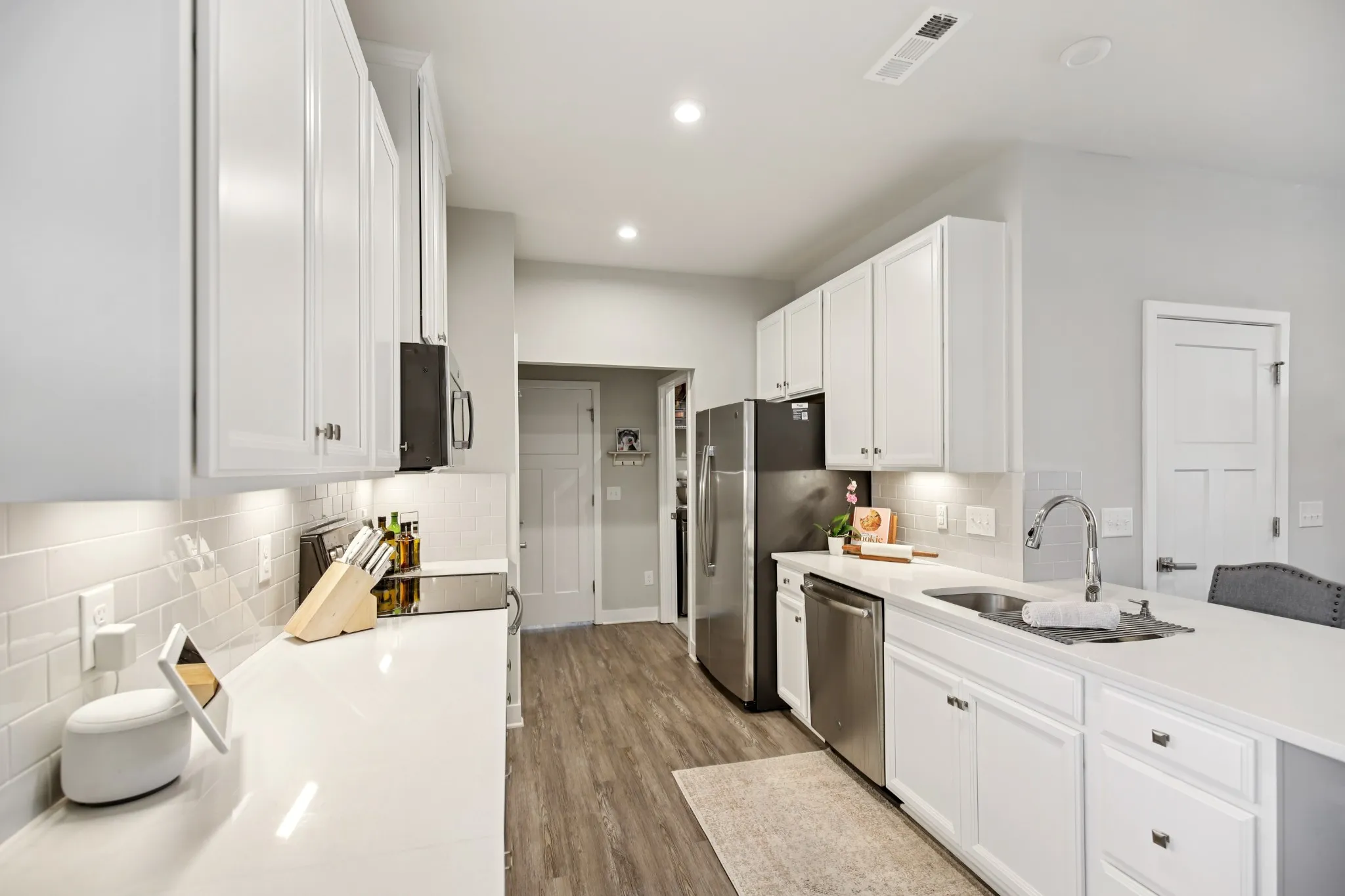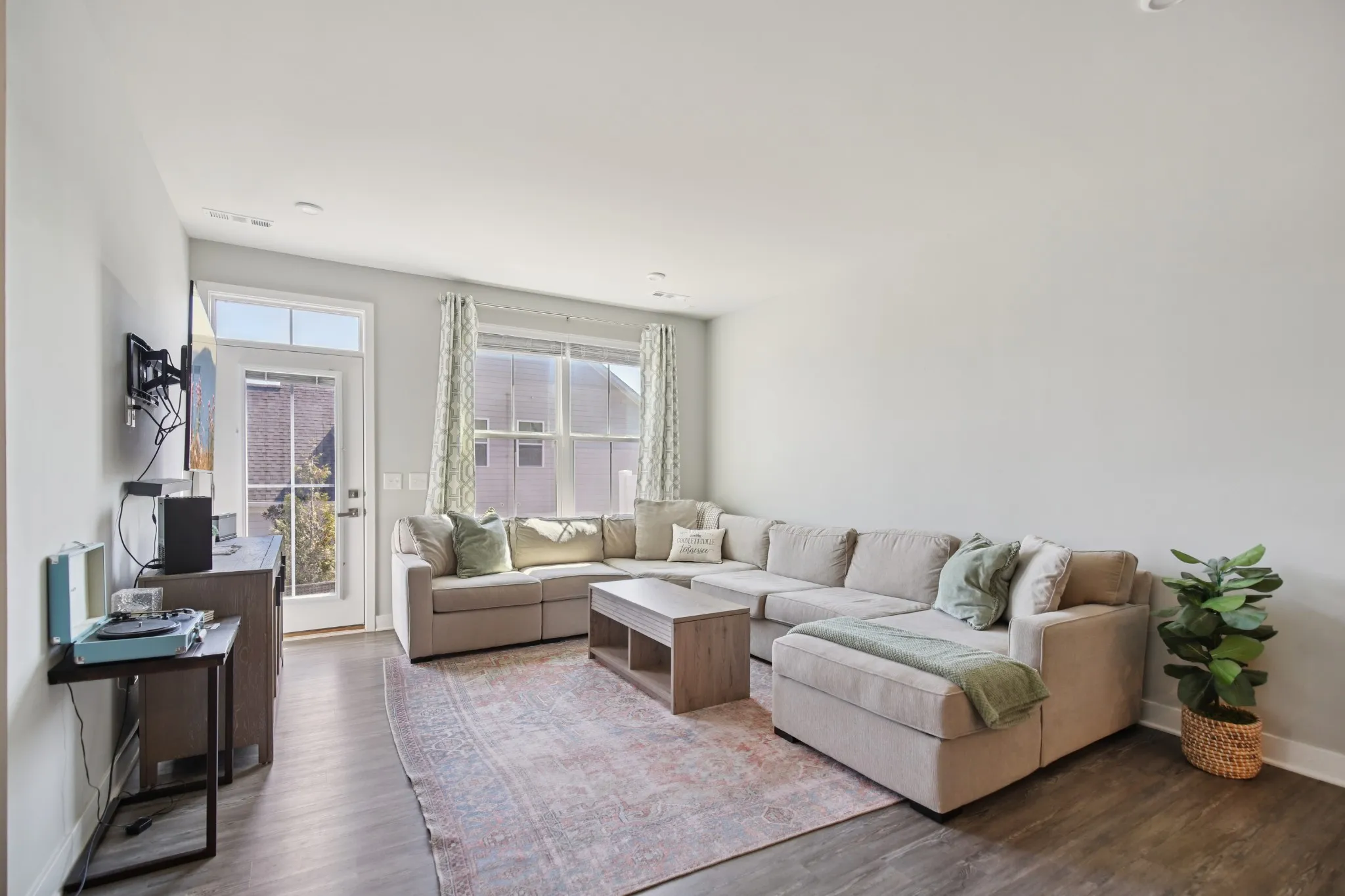 Former MODEL HOME, “turn-key” END UNIT, (FIRST FLOOR primary downstairs) townhome in the Heart of Goodlettsville! This 3-bedroom, 2.5-bathroom townhome offers over 1,700 square feet of open and inviting living space. A BRAND NEW HVAC was just installed! Pull into your 2 car garage, WITH a one-of-a-kind service door! The main level is upgraded to luxury vinyl plank flooring, a bright kitchen with white cabinets, designer backsplash, and soft close drawers, gorgeous granite countertops, plus an open dining and family room that makes entertaining effortless. Relax and retreat in your first floor private owner’s suite featuring an oversized closet, and a spa-like oversized shower. Enjoy the convenience of a first floor laundry room! Two additional bedrooms, another full bath, round out the second floor, complete with plush carpet for added comfort. Enjoy smart living with a Google Nest thermostat, and take advantage of the Goodlettsville amenities just around the corner including pickleball courts, a playground, and walking trails—all just steps from your front door. Perfectly located in the heart of Goodlettsville, you’re just steps away from Peay Park, Moss-Wright Park, Fenway’s Dog Park, shopping, dining, and downtown Nashville. With quick access to the airport and major highways, it’s a commuter’s dream. Bonus…its your choice- Publix or Kroger, and pick up a Starbucks on the way! Don’t miss this opportunity to own a home that blends comfort, convenience, and style!