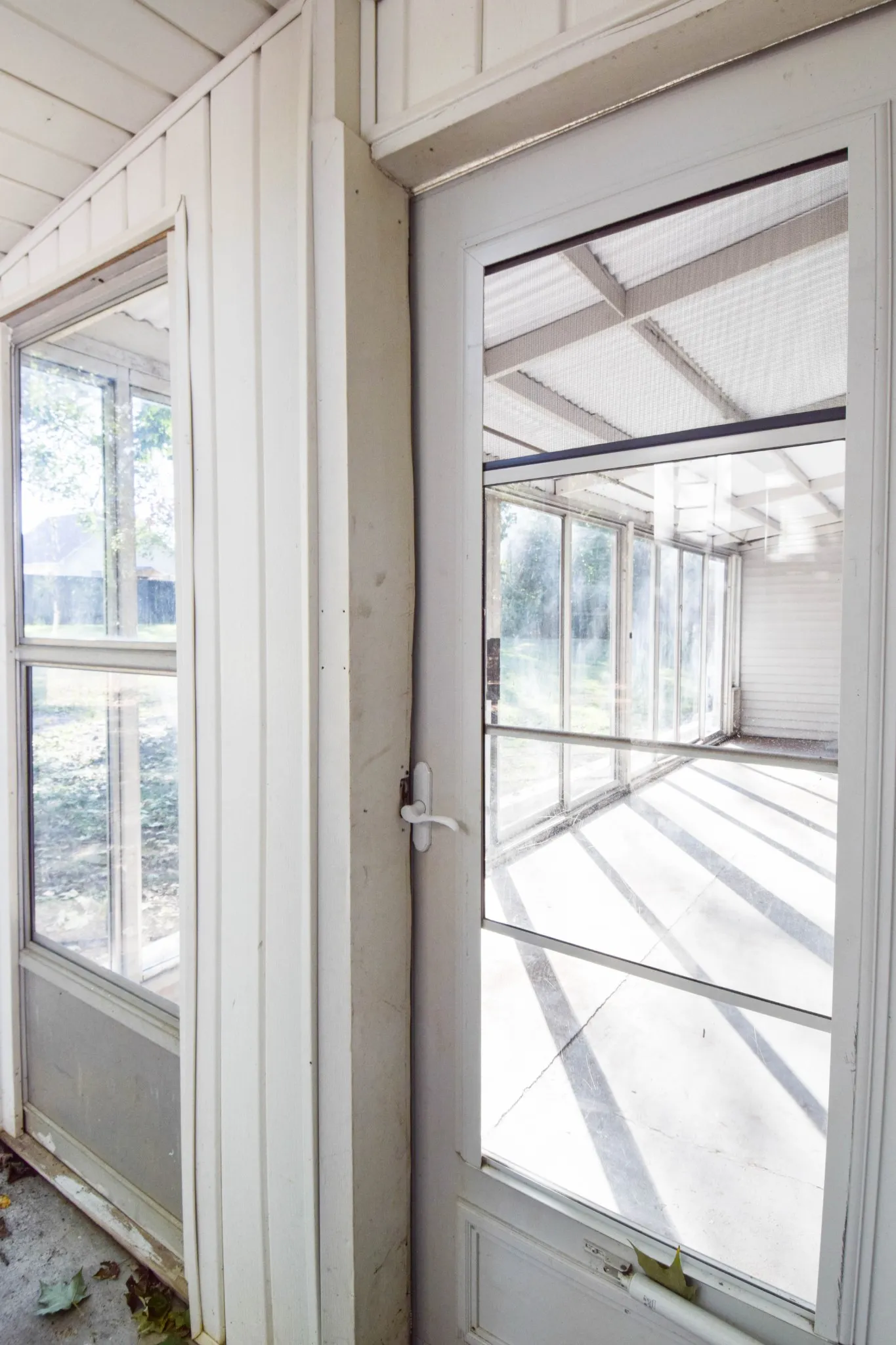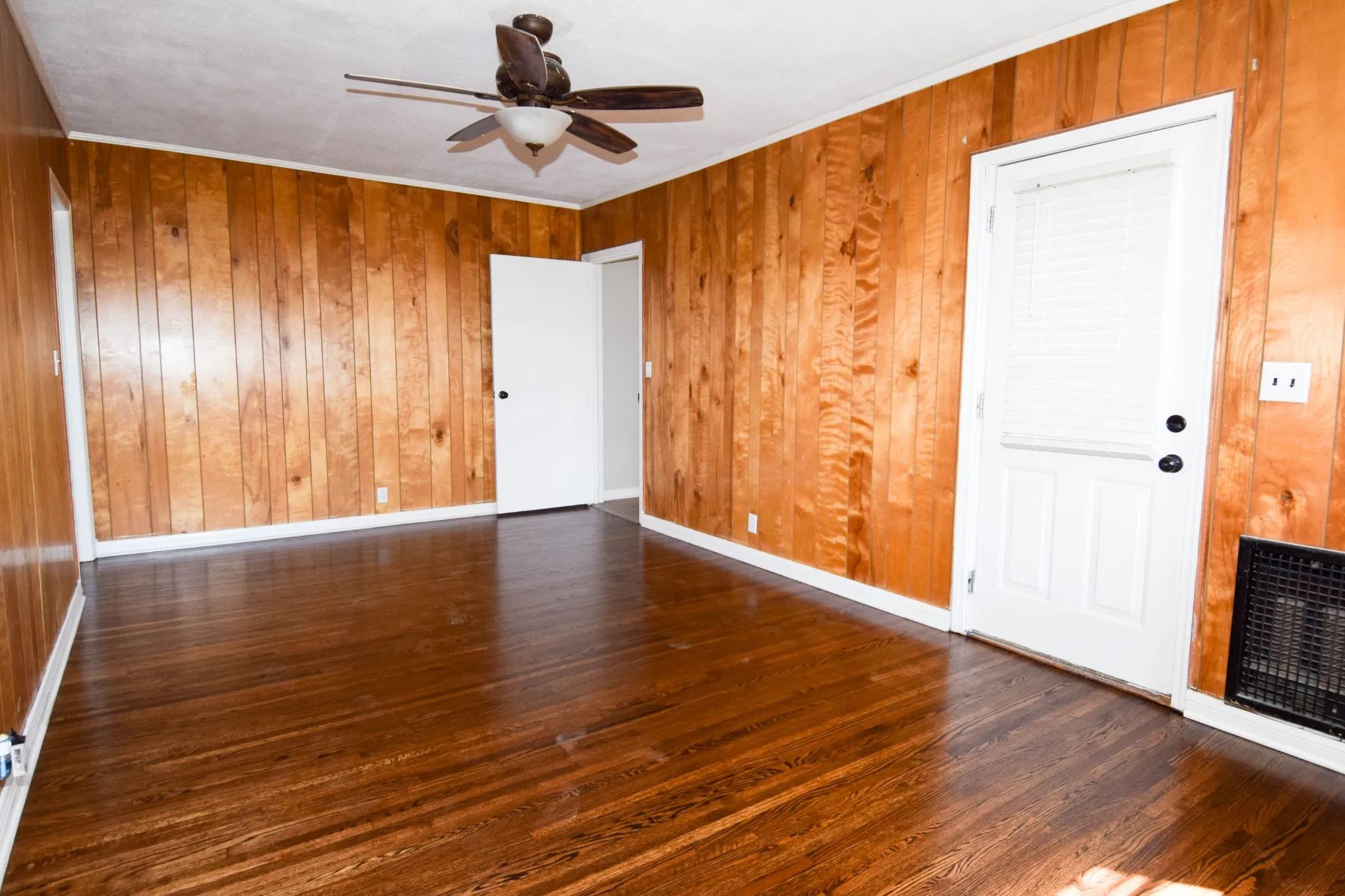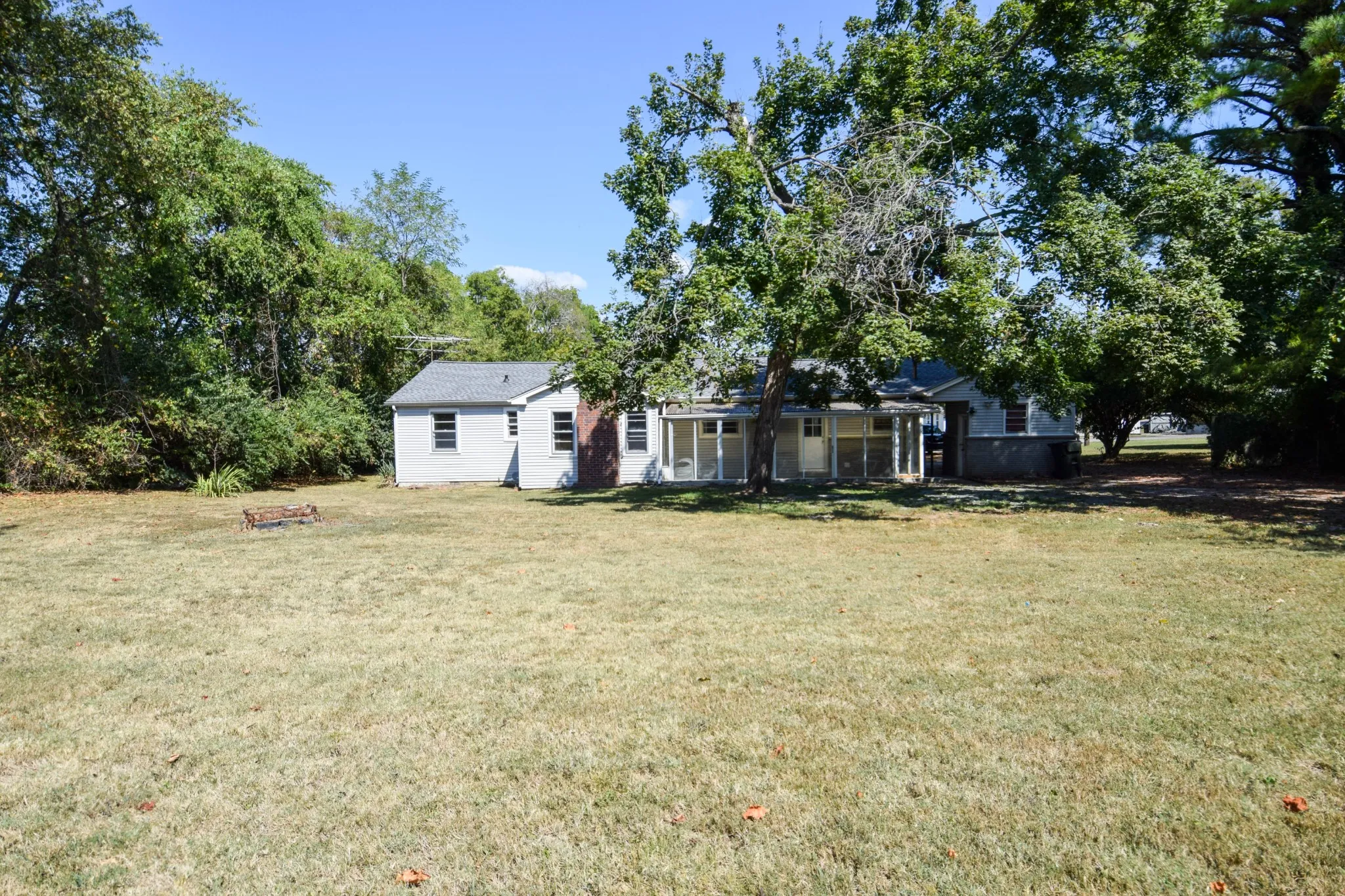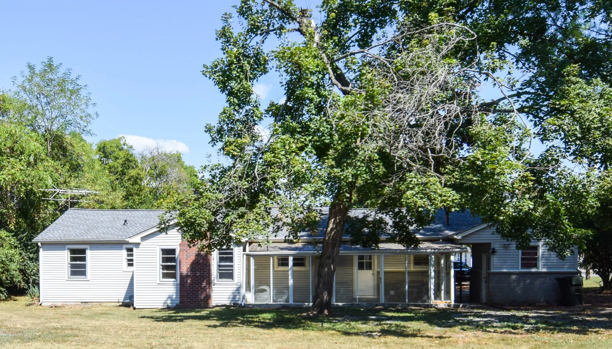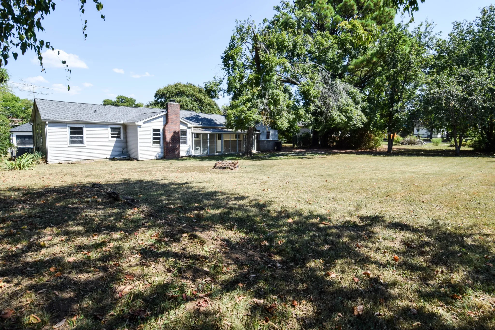 Lovely home on large city lot with mature trees, private rear. Developed neighborhood near town, shopping, doctors, restaurants. 26×7 sunroom/plant haven not counted in square footage. Beautiful newly finished hardwood floors. Tile baths. Combination formal/living and dining room with some wainscotting and crown molding. Separate den with wood burning brick fireplace. Split bedroom system for owner suite privacy. Seller has recently completed lots of work and renovation of home. New roof on sunporch October 2025 and freshly painted beams: per seller. Great buy!