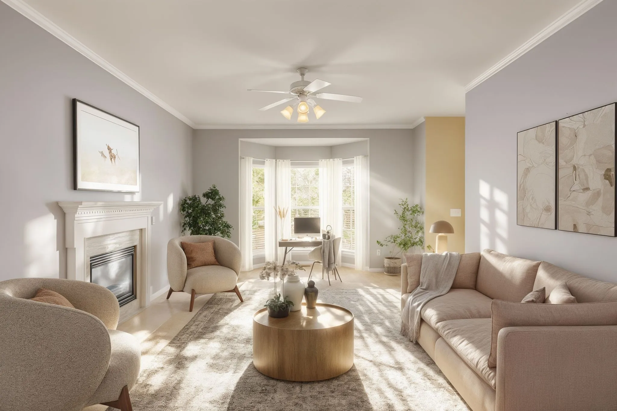 -Spacious floor plan with three comfortable bedrooms and two and a half baths.