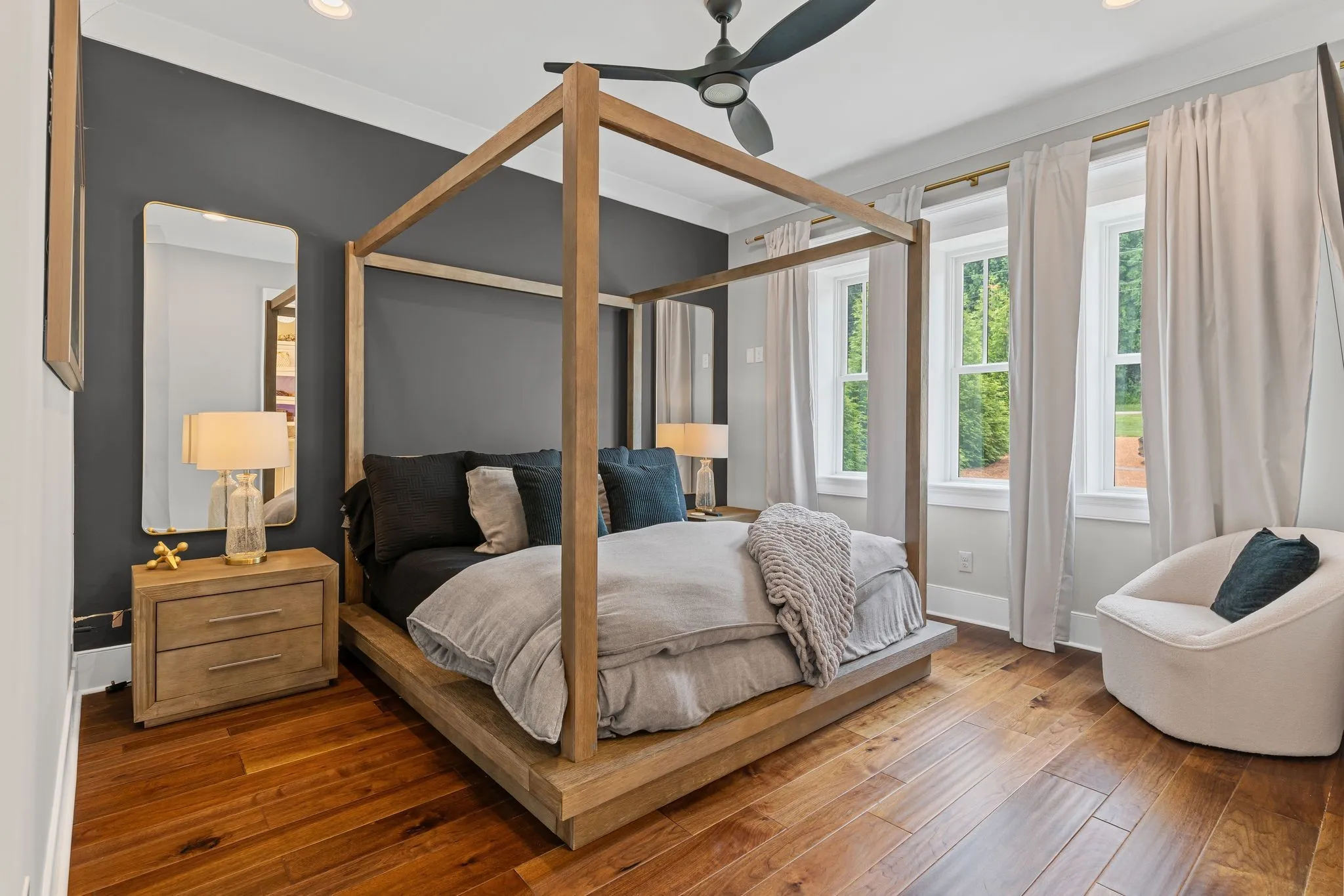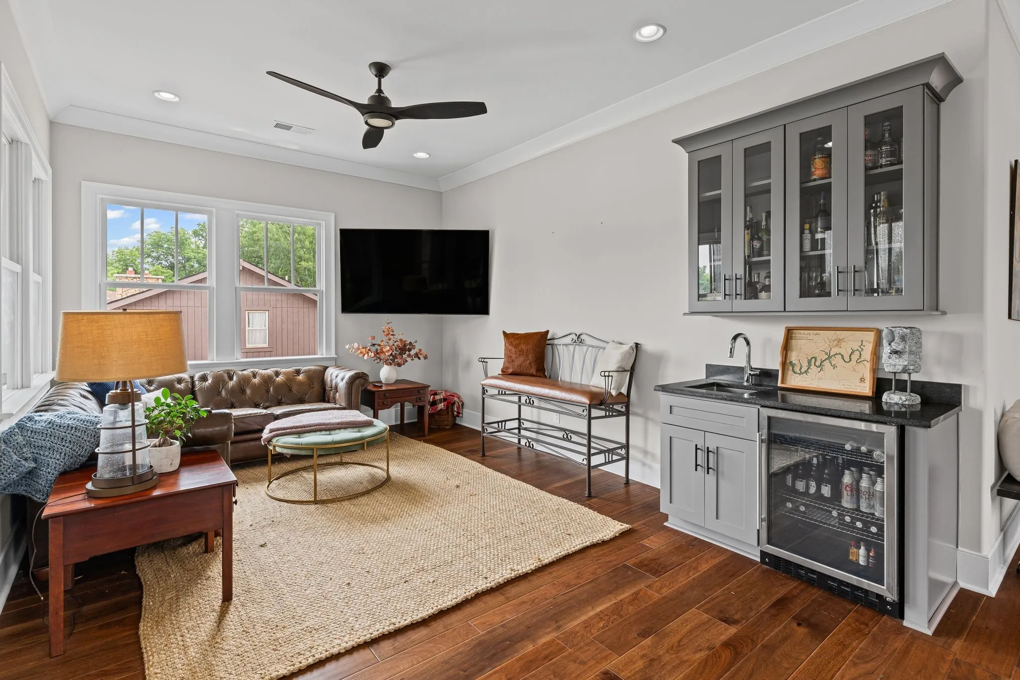 Inside the main home, every inch has been thoughtfully reimagined from the studs out. Gleaming hardwood and tile flooring throughout, rich trim work, and an exquisite owner’s suite featuring a spa-like bathroom and a showstopping dressing room with a custom-designed closet.