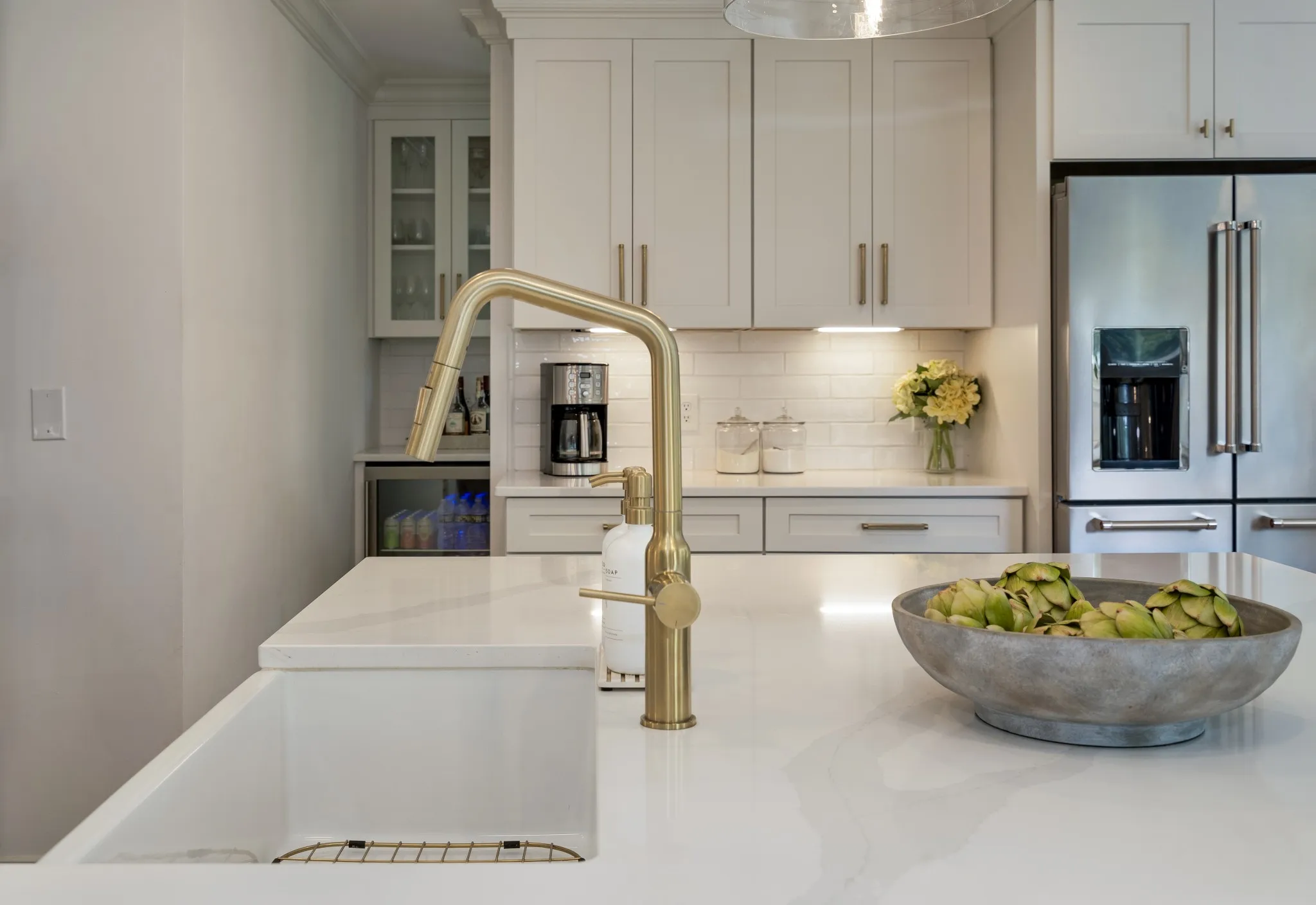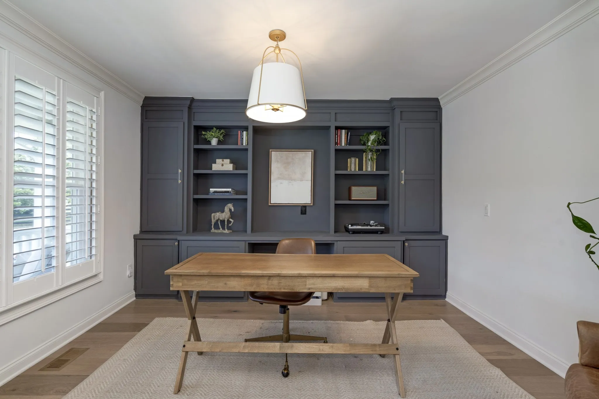 "LongDescription" => "Sophisticated designer bathroom boasting dual vanities, a custom tile shower, luxurious quartz countertops, exquisite trim, and timeless plantation shutters"