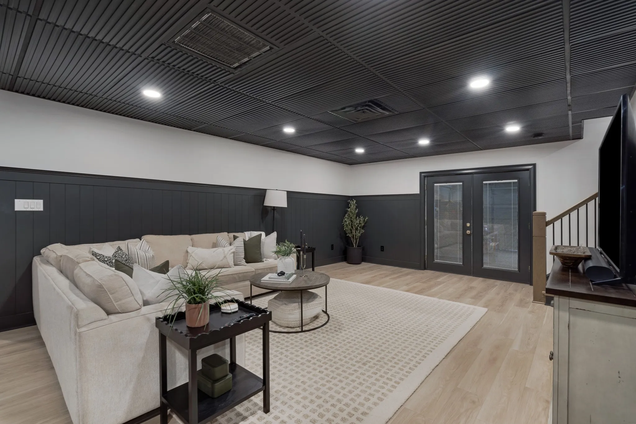 "LongDescription" => "This expansive finished basement serves as a complete retreat, perfect for a game room, play area, extra living space, and more, while also including a gym, full bathroom, and a safe room/storage area."