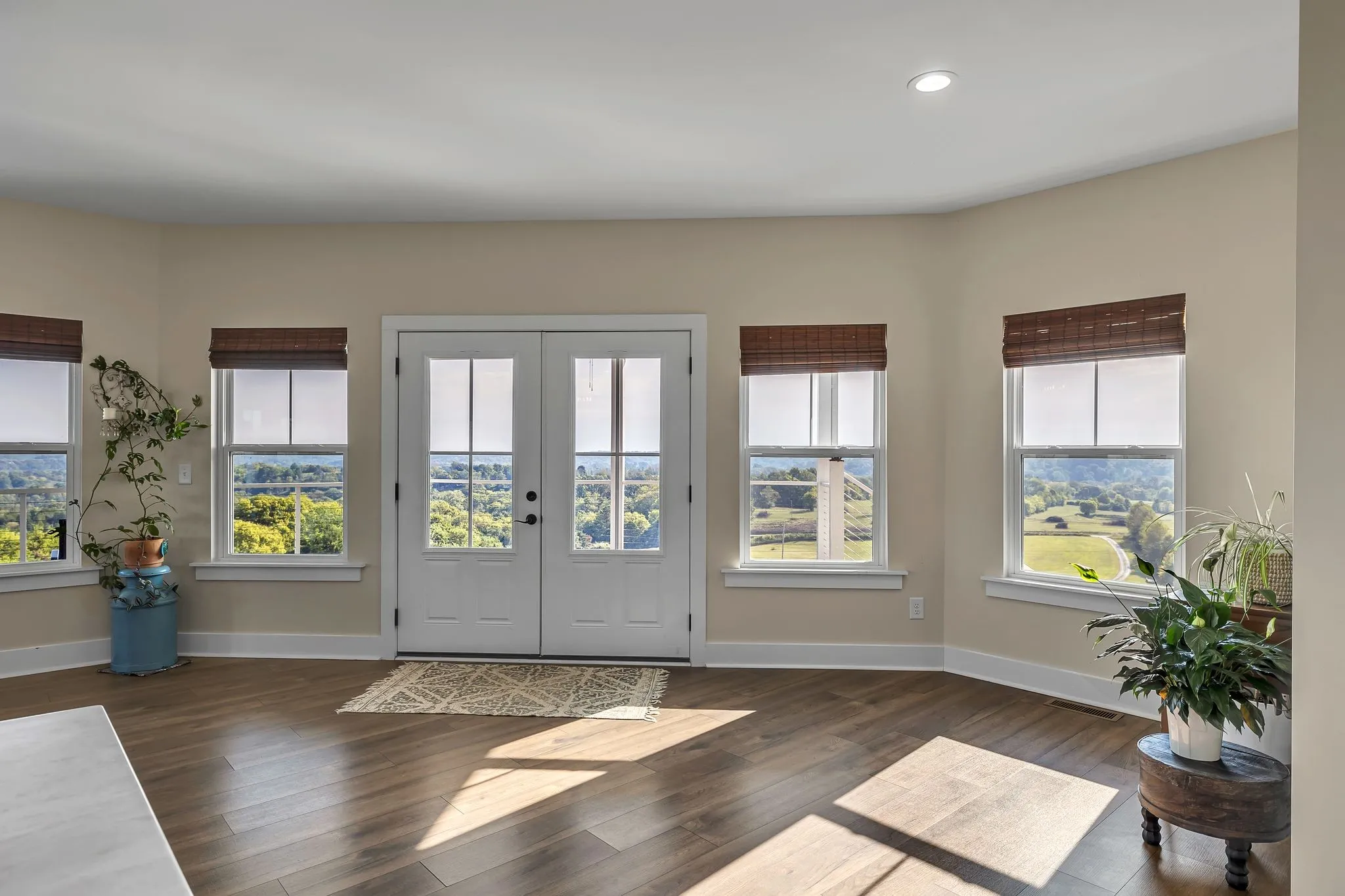 * Spacious open floor plan with large windows and natural light.