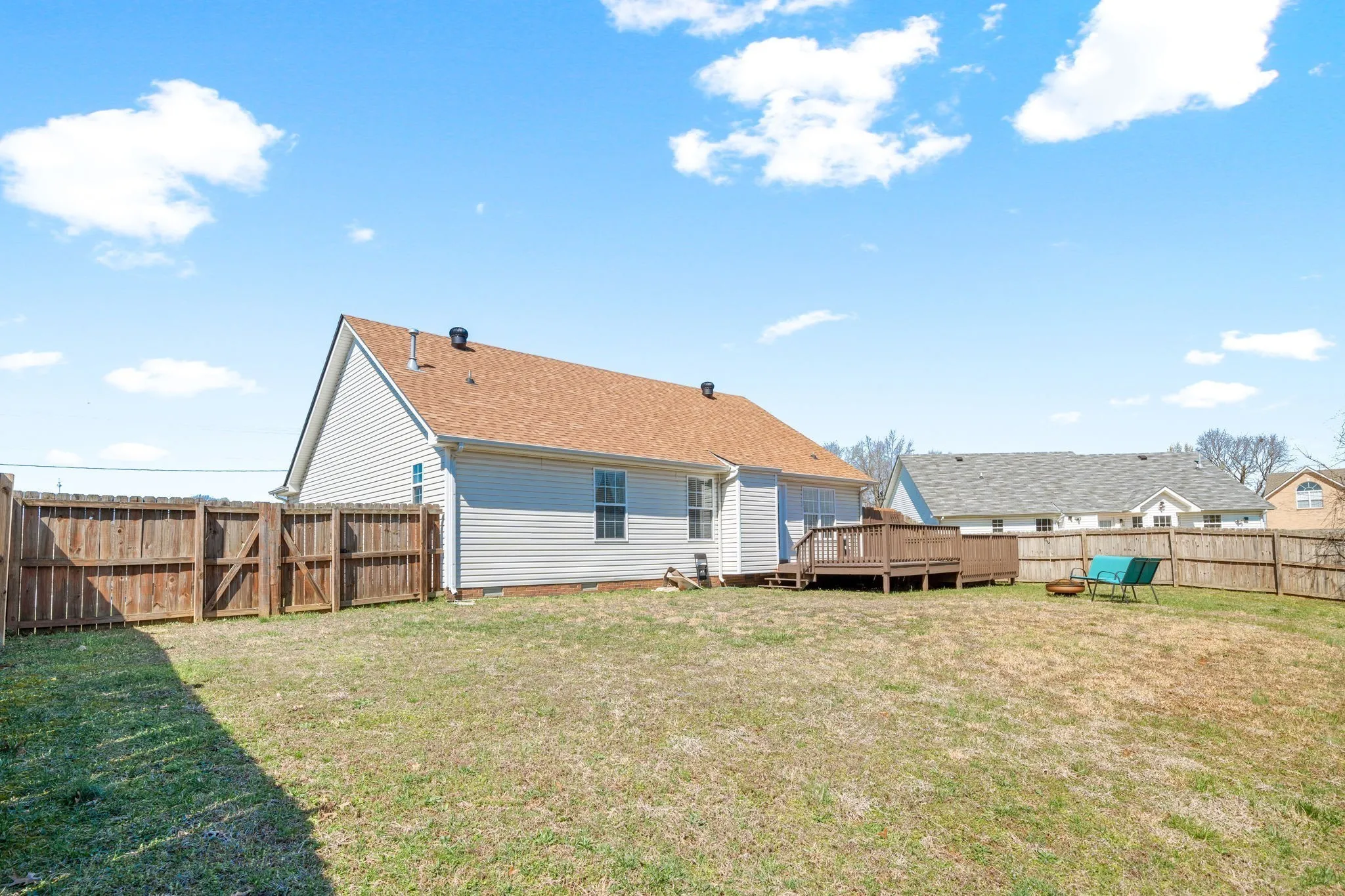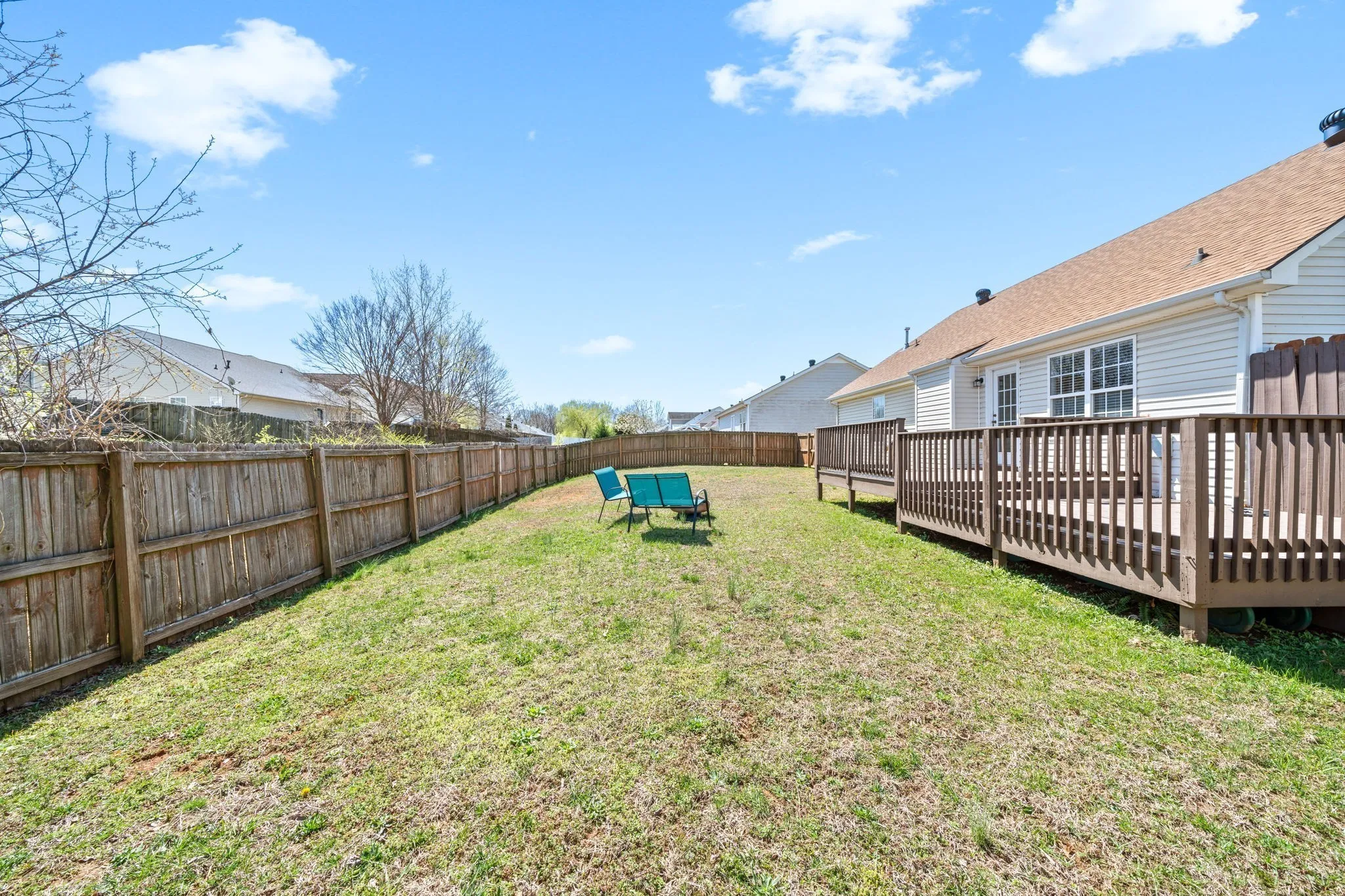 Very well cared for an updated 3 bedroom/2 bath ranch home in established Glenallen Landing subdivision! Spacious living room with vaulted ceiling open to the Eat in Kitchen that features beautiful painted cabinets. Primary bedroom with full bath also with charming updates separate from additional guest rooms. Guest rooms are spacious as wel! Backyard features a huge deck and large fenced in yard!