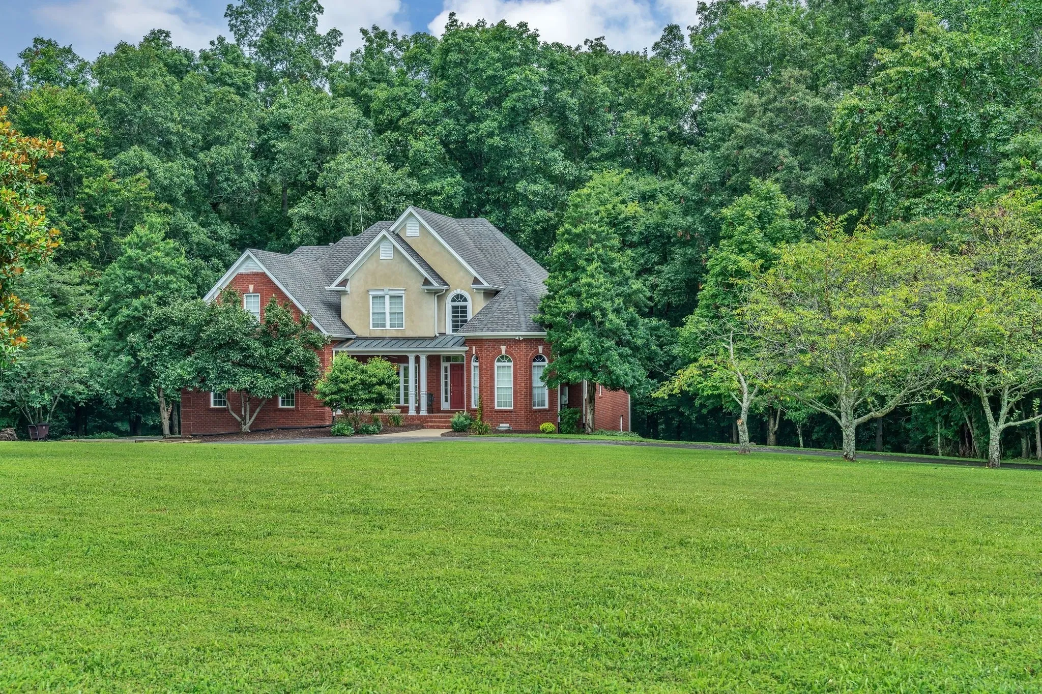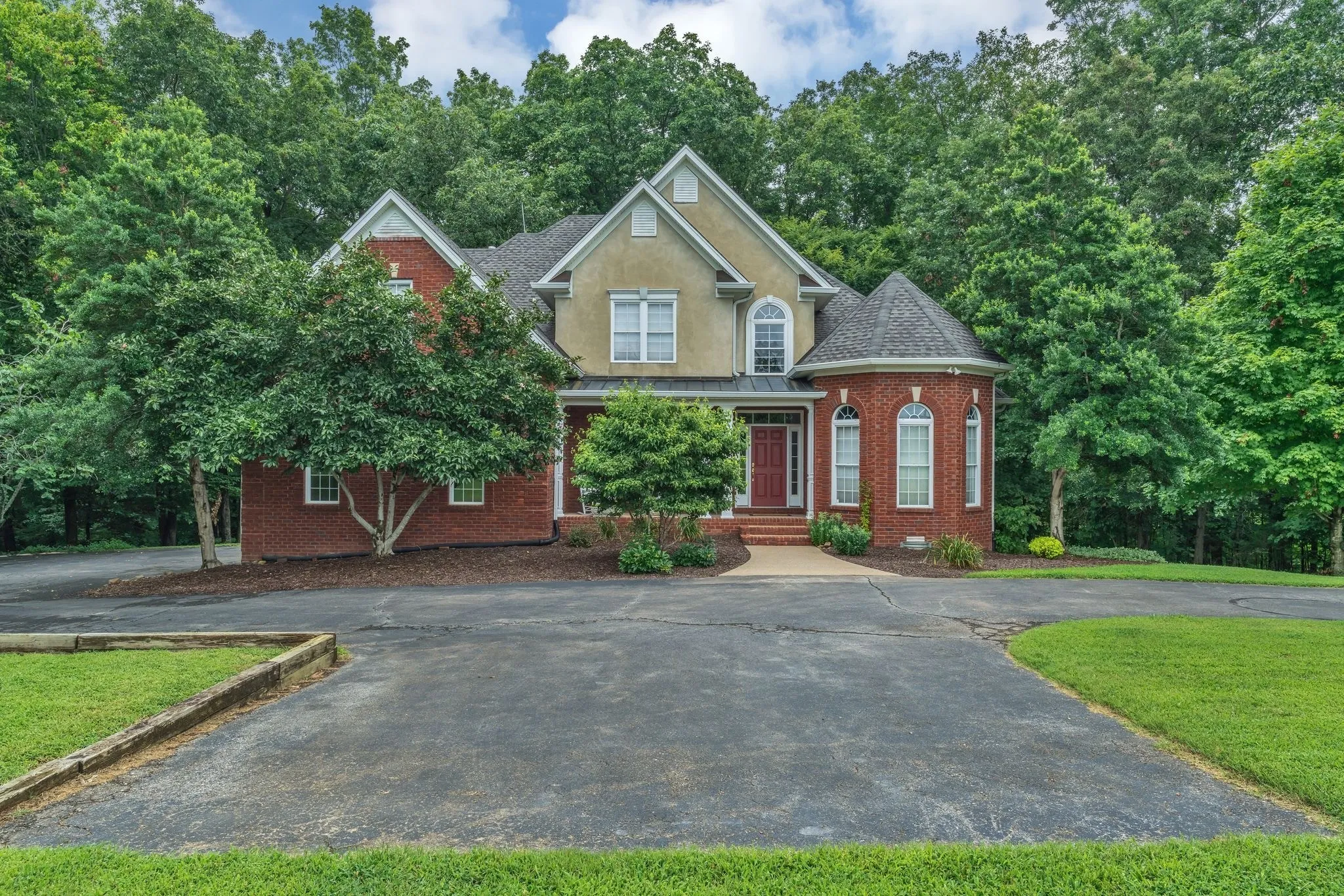 This custom-built home is situated on 5 acres of land featuring a mix of level terrain, woods, and a creek at the property’s edge. The residence includes 3 bedrooms, 2.5 baths, and multiple living spaces, including a den with a fireplace, a great room, and a bonus. room upstairs. The kitchen offers ample cabinetry and an eat-in area. Additional highlights include Brazilian hardwood floors, tile, built-in bookshelves, and fireplaces throughout. A mudroom, utility room, and entrance foyer add convenience. The home has a 2-car garage at the rear, along with a covered front porch, back deck, and patio below. The full, unfinished basement offers 2,300 square feet of potential living space, with plumbing already in place for a bathroom with a shower. The property is ideally located with easy access to Springfield, Joelton, Nashville, Clarksville, and I-24. Two fireplaces one has gas logs the other is wood. Sets between 2 golf courses that are very close. Lots of space for the money and lots of privacy. Garden space in two areas. unfinished basement with roughed in bath and expansion area for in-law suite with private entrance.