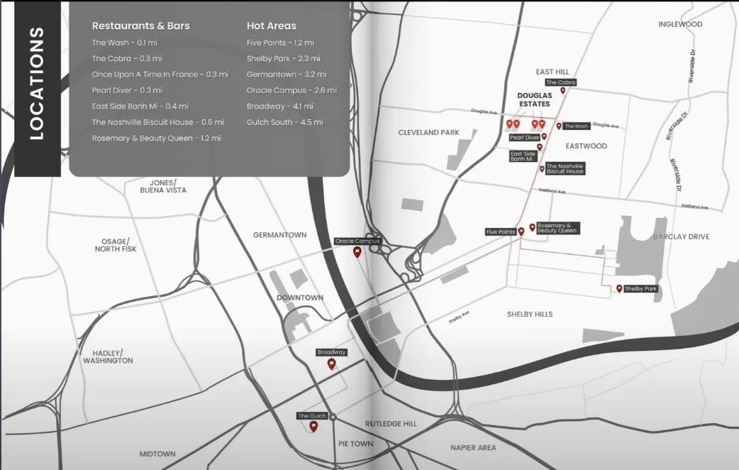 Investor Opportunity: invest in East Nashville, ideal for 1031 exchange, midterm, or LT rentals. This rare offering includes 996 and 1000 Douglas, each 3,659 sq ft with 4 beds, 4 baths, designer finishes, skyline-facing rooftop decks, and guest suites with private entrances. Individual MLS numbers are as follows:, 1000 Douglas Ave: MLS – 2887167, 996 Douglas Ave: MLS – 2905059. 1010 Douglas sold for 1.59M. Located in the historic Greenwood neighborhood: walkable, charming, and minutes from Downtown, these homes are located directly across from the future brand-new park, restaurants, and retail, which are part of the $100M+ Lincoln Tech redevelopment. Est. Midterm rental revenue: $135K+ per home annually; LT revenue: 105k. In 2024, a furnished lease offer of $12.5K/month was received for a 2-month stay. With their flexible use potential and strong rental demand, these properties are well-positioned for excellent near-term income and long-term value. Equity upside: Direct comp at 1010 Douglas closed at $1.588M. With development accelerating nearby, we anticipate significant equity growth over the next 3-5 years. Each home features 10–12 ft ceilings, a double-sided fireplace that opens to a private courtyard, a wine bar and wet bar for entertaining, and a rooftop Lookout Tower with panoramic views of downtown Nashville. Just a 5-minute walk to Publix, Orange Theory, and top local restaurants, this is one of East Nashville’s most livable and strategically positioned locations. Greenwood dates back to the late 1800s and continues to attract growth-minded residents and investors. Preferred lender offers a 1pt rate buy down and free appraisal. Inquire for financials or schedule a private showing to explore this rare, luxe portfolio opportunity.