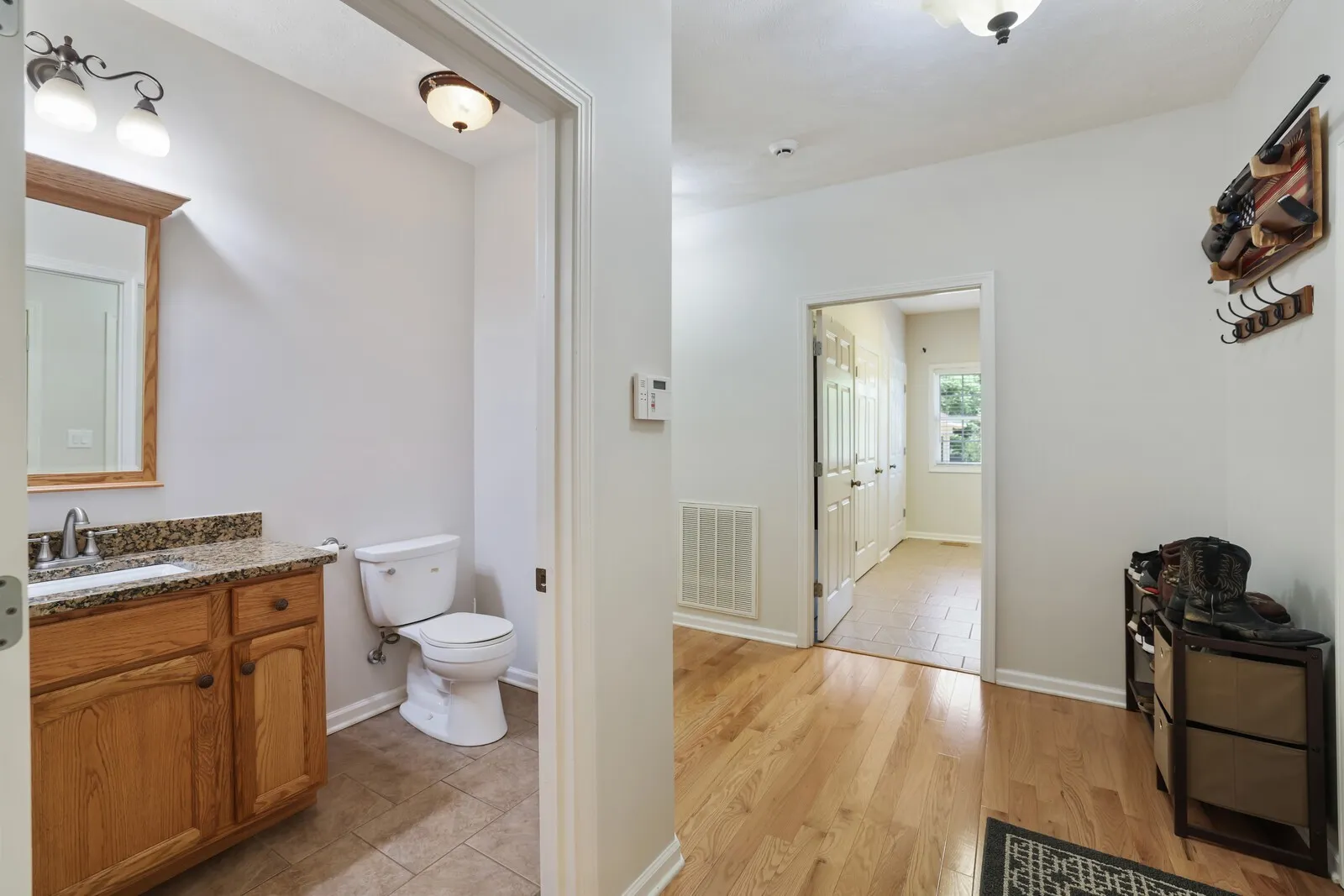 The main residence is thoughtfully designed with granite countertops throughout, oak sand-and-finish hardwood flooring, and en-suite baths in every bedroom. The kitchen is equipped with soft-close cabinets, while the formal dining room and cozy breakfast room add to the home’s charm. A full basement provides ample storage or potential for additional living space, and an expandable upstairs offers even more possibilities. The newer HVAC system ensures year-round comfort.