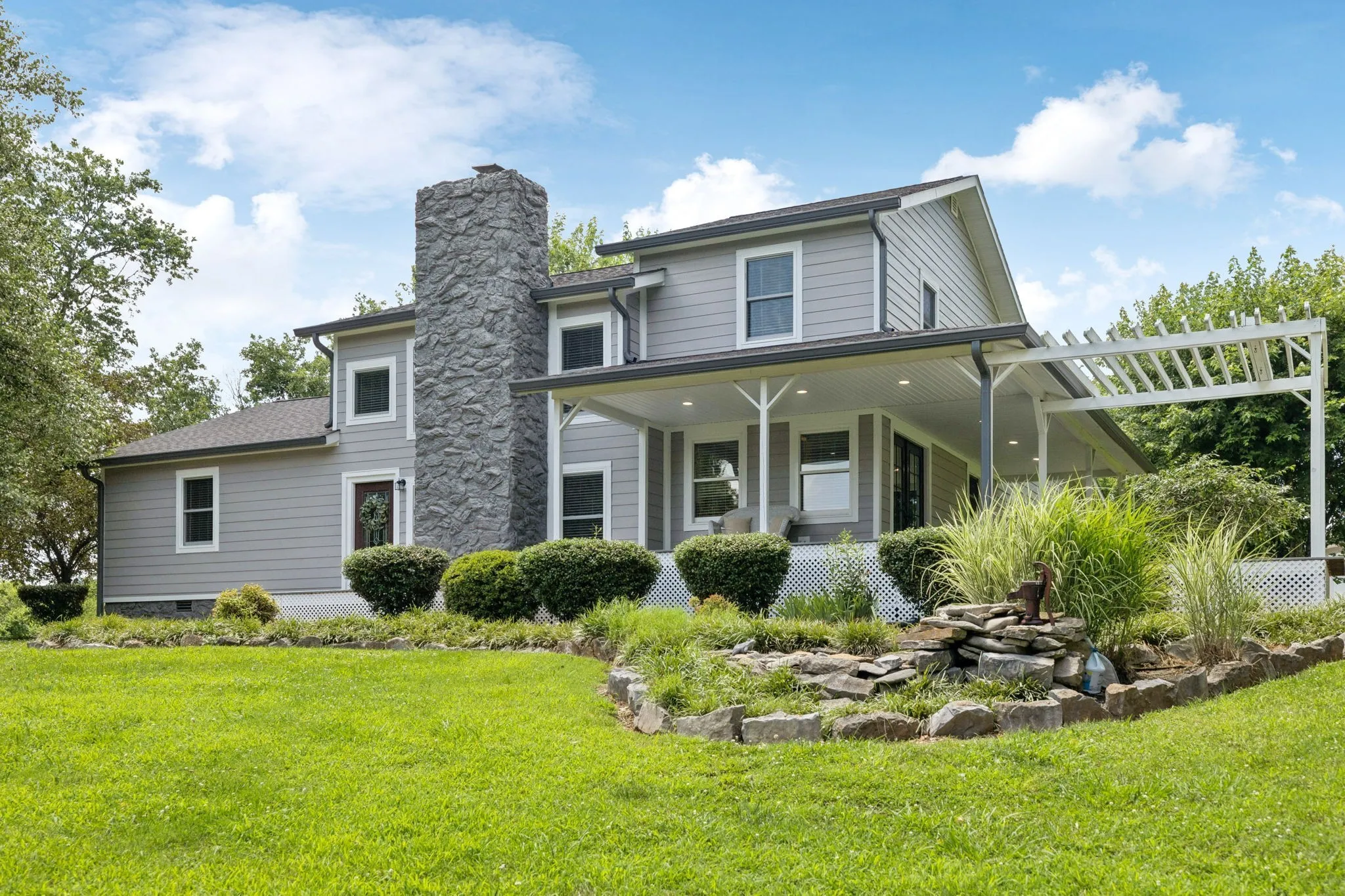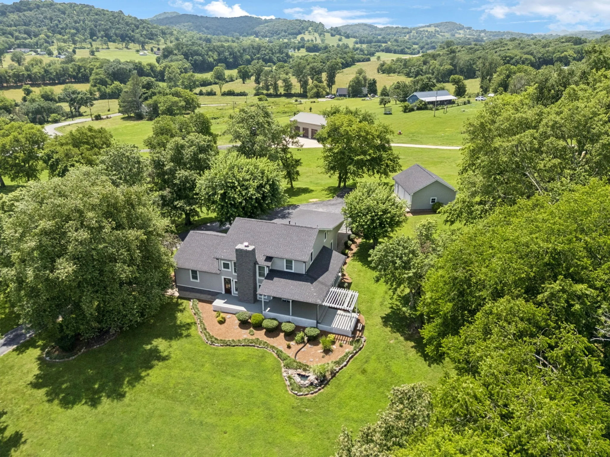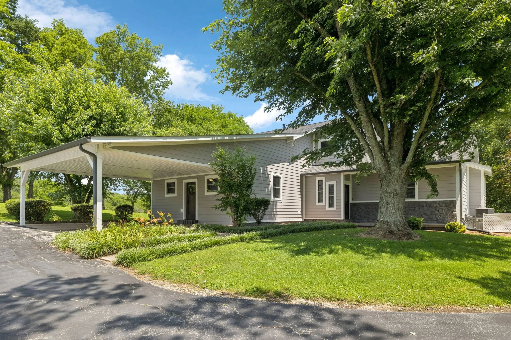 Beautiful home nestled on 1.59+- acres with a paved driveway canopied by mature trees and surrounded by lush landscaping. This 3BR/3BA home features a spacious bonus room, office, and living room with vaulted ceilings and a wood-burning fireplace. The kitchen offers quartz countertops, and the upstairs primary suite includes a remodeled bath, tiled shower, walk-in closet, and an additional room perfect for a nursery, office, or workout space. Enjoy entertaining on the large deck. Recent updates include new Hardie board siding, fresh exterior paint, a 5-year-old roof, and a new 2-car garage. 2 Carport also included. Fireplace is stubbed for gas logs and can be easily connected. Conveniently located within 1 mile of GES, GHS, and GJHS, and approximately 50 minutes to Nashville International Airport. BORDERING 3.56+- ACRE LOT AVAILABLE FOR PURCHASE (see MLS #2922434 for details). Property is a portion of map/parcel 085 055.05