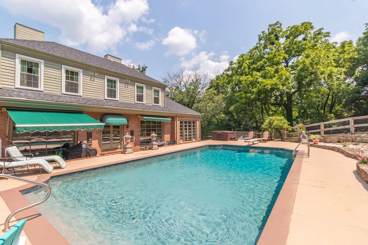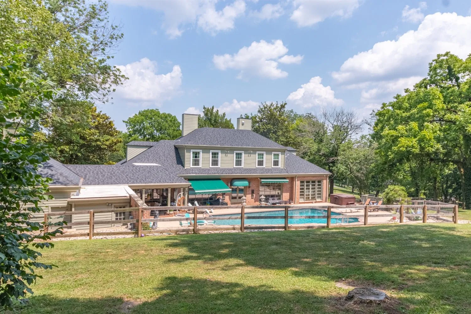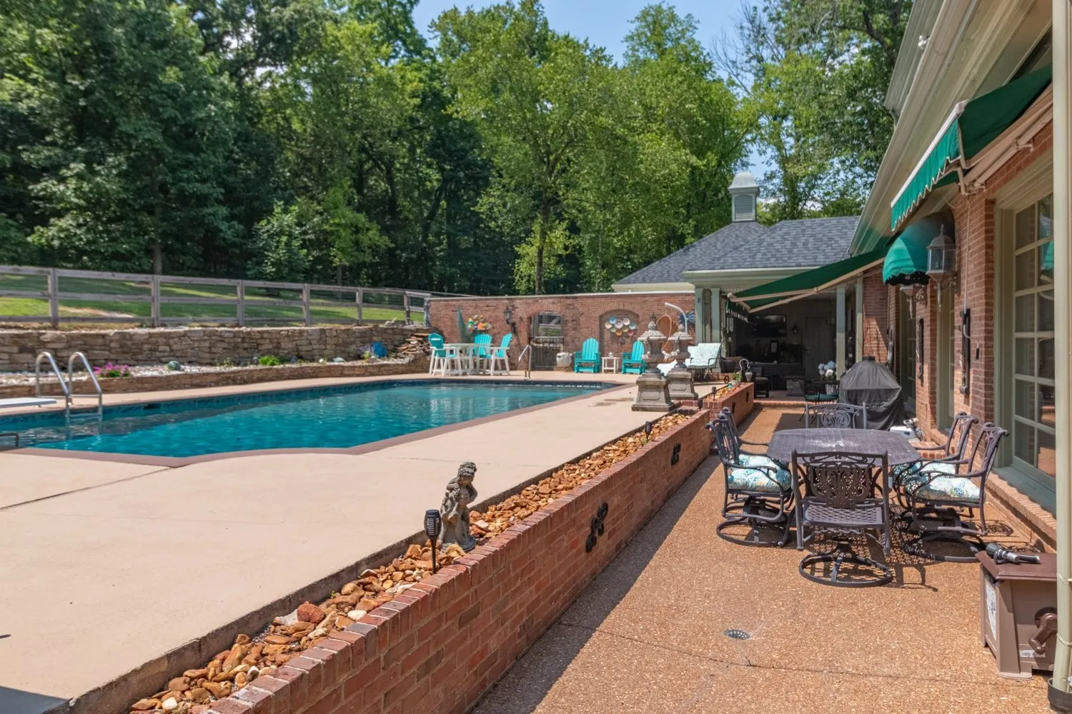 This stunning property boasts a spacious 4,772 sq. ft. of living space, offering a perfect blend of luxury and comfort. The inviting back porch provides serene views of the inground Gunite pool, featuring a pebble tech flooring. Set on 4.71 acres, the property includes a partially fenced yard, ideal for dog owners. The half circle aggregate driveway enhances the curb appeal of the home while providing functional parking space and allows easy access and egress. Inside, you’ll find four generously sized bdrms and 3 full bathrooms, along with a guest bath and convenient additional half bath for swimmers directly off the patio. The remodeled kitchen is a chef’s dream, equipped with a double oven and a new Bosch flat range, perfect for entertaining or family meals. Cozy up in the great room or living room, both featuring gas fireplaces that add warmth and charm to the home’s atmosphere. The large dining rm is perfect for gatherings. The main-level primary bdrm suite offers privacy and comfort. An adjoining office space provides a quiet area for work or study. Outdoor entertaining is elevated with a stone fountain beside the pool and a firepit, creating a perfect setting for relaxation and socialization. With easy access to I-65, this home combines luxury living with convenient commuting options.