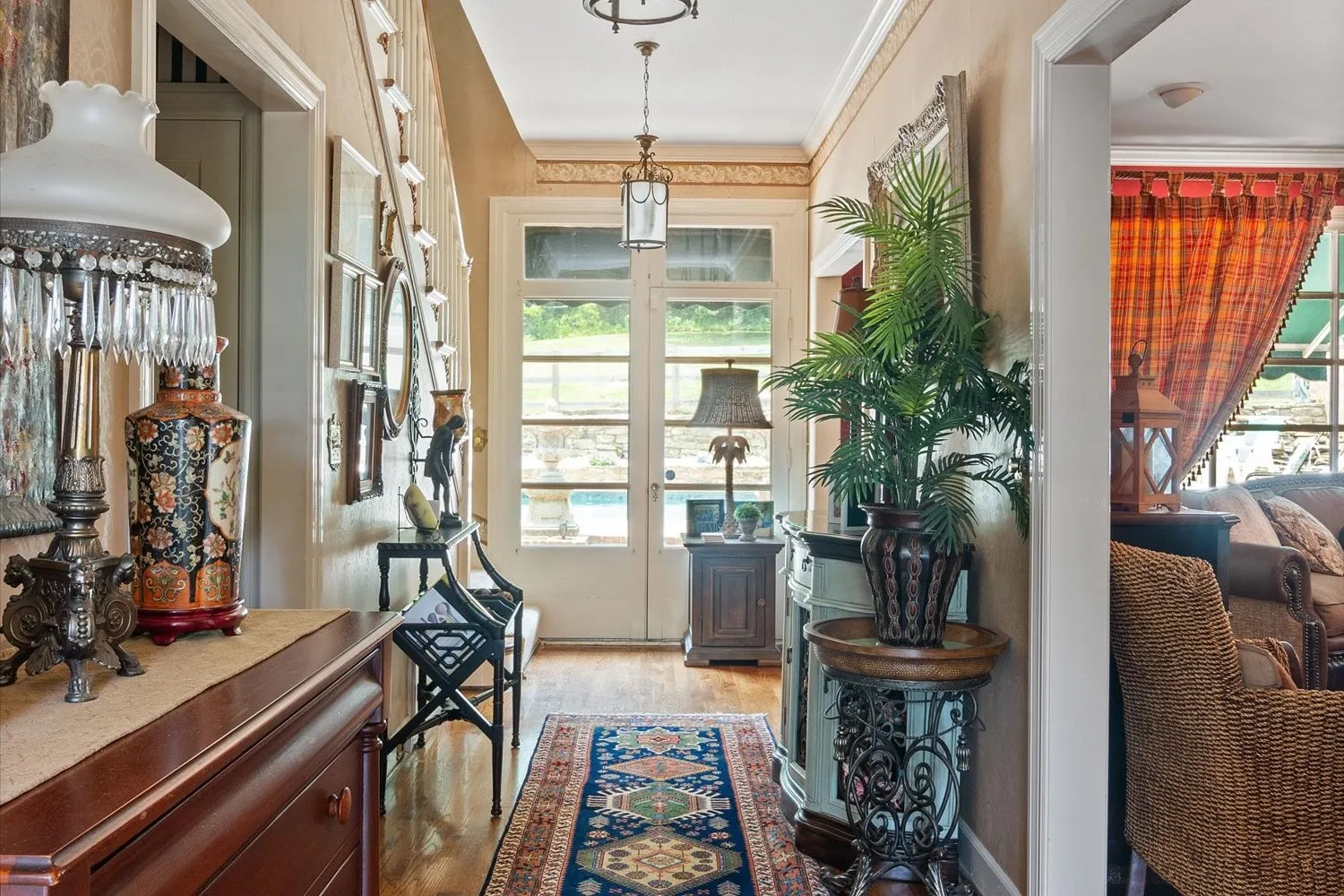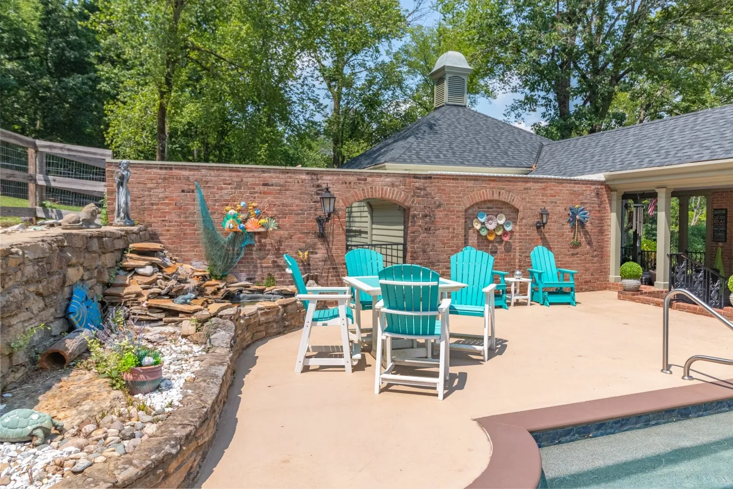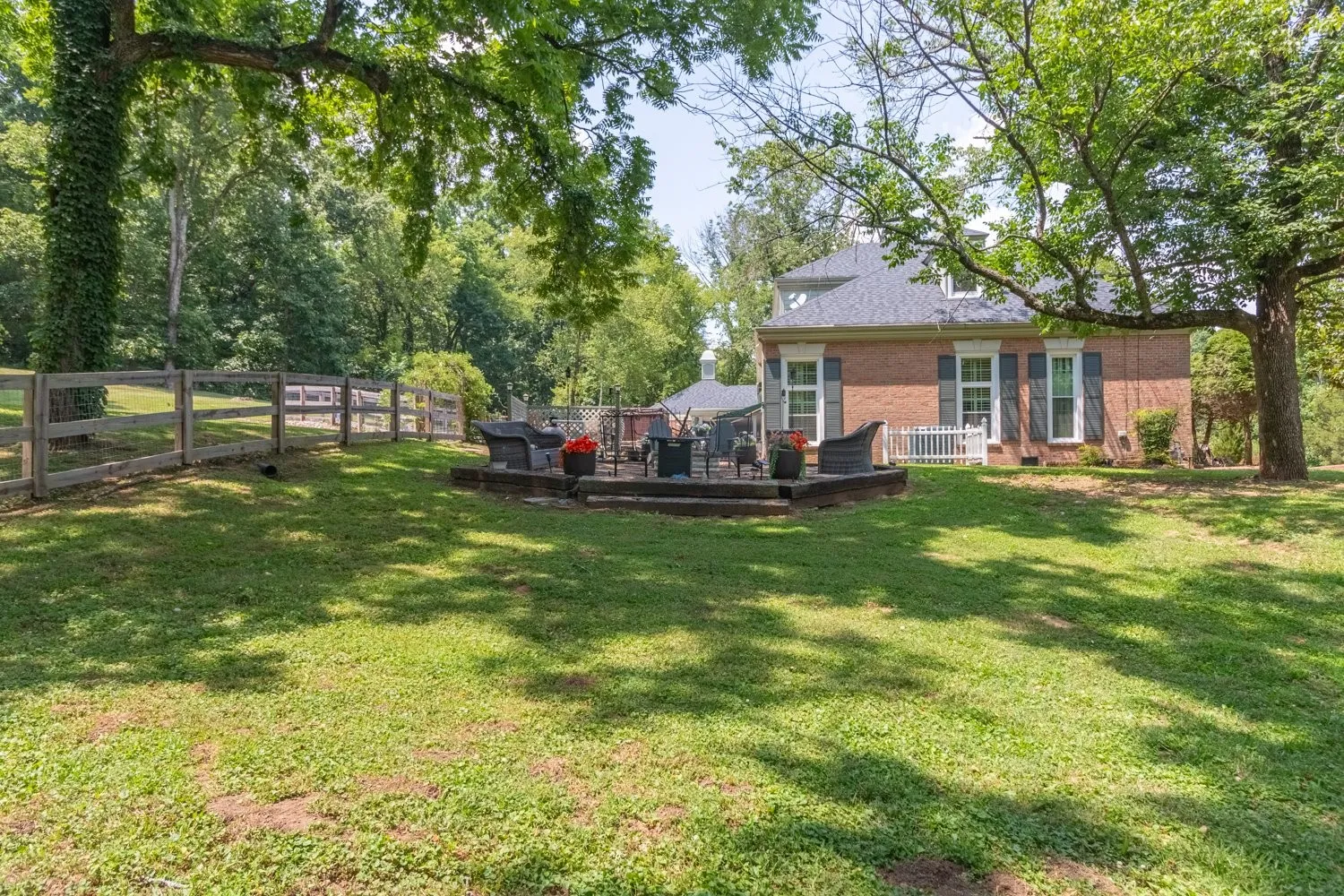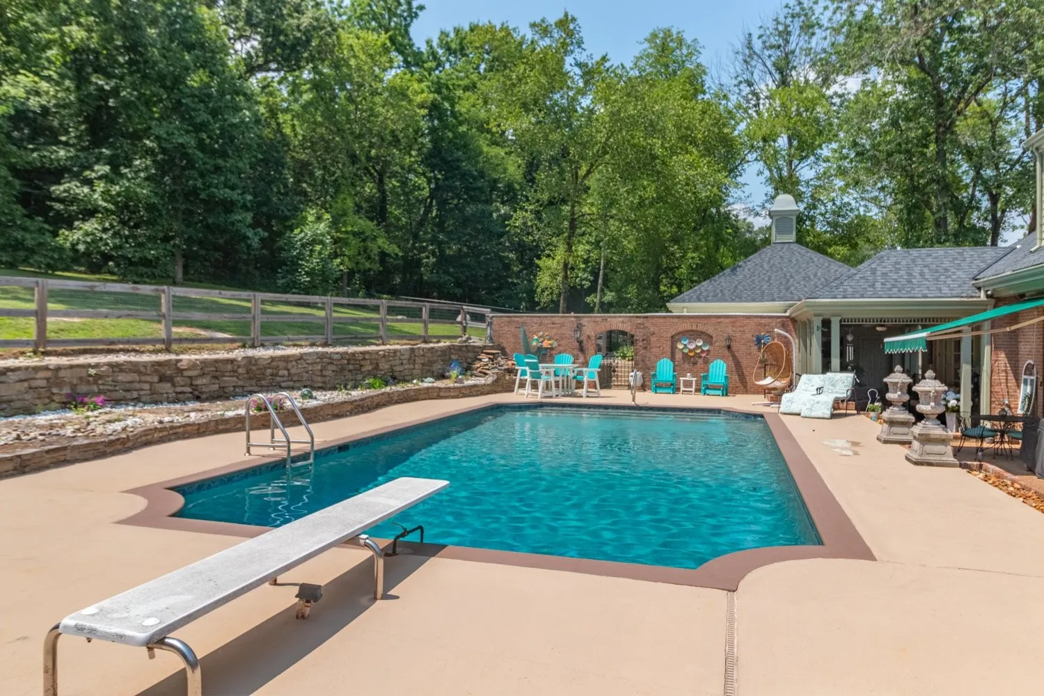 This stunning property boasts a spacious 4,772 sq. ft. of living space, offering a perfect blend of luxury and comfort. The inviting back porch provides serene views of the inground Gunite pool, featuring a pebble tech flooring. Set on 4.71 acres, the property includes a partially fenced yard, ideal for dog owners. The half circle aggregate driveway enhances the curb appeal of the home while providing functional parking space and allows easy access and egress. Inside, you’ll find four generously sized bdrms and 3 full bathrooms, along with a guest bath and convenient additional half bath for swimmers directly off the patio. The remodeled kitchen is a chef’s dream, equipped with a double oven and a new Bosch flat range, perfect for entertaining or family meals. Cozy up in the great room or living room, both featuring gas fireplaces that add warmth and charm to the home’s atmosphere. The large dining rm is perfect for gatherings. The main-level primary bdrm suite offers privacy and comfort. An adjoining office space provides a quiet area for work or study. Outdoor entertaining is elevated with a stone fountain beside the pool and a firepit, creating a perfect setting for relaxation and socialization. With easy access to I-65, this home combines luxury living with convenient commuting options.